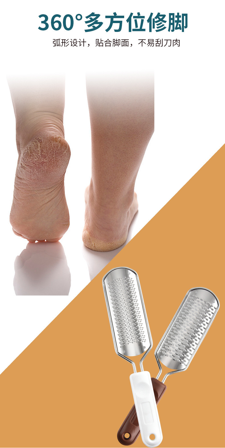 Трансграничный скребок для ног из нержавеющей стали для удаления омертвевшей кожи, скребок для ног для удаления мозолей, шлифовальный камень для ног, доска для чистки ног, инструмент для педикюра для шлифовки кожи