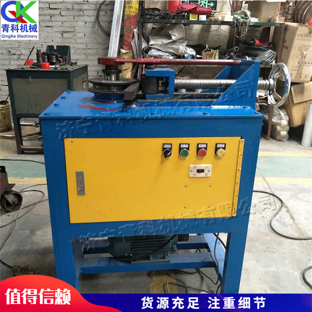 采用齿轮减速箱传动,弯管过程轮模转动,配合压条一次定形弯管,控制部分采用嵌入式微电脑智能控制系统响应速度高,弯曲角度准确,适合大小半径弯曲。