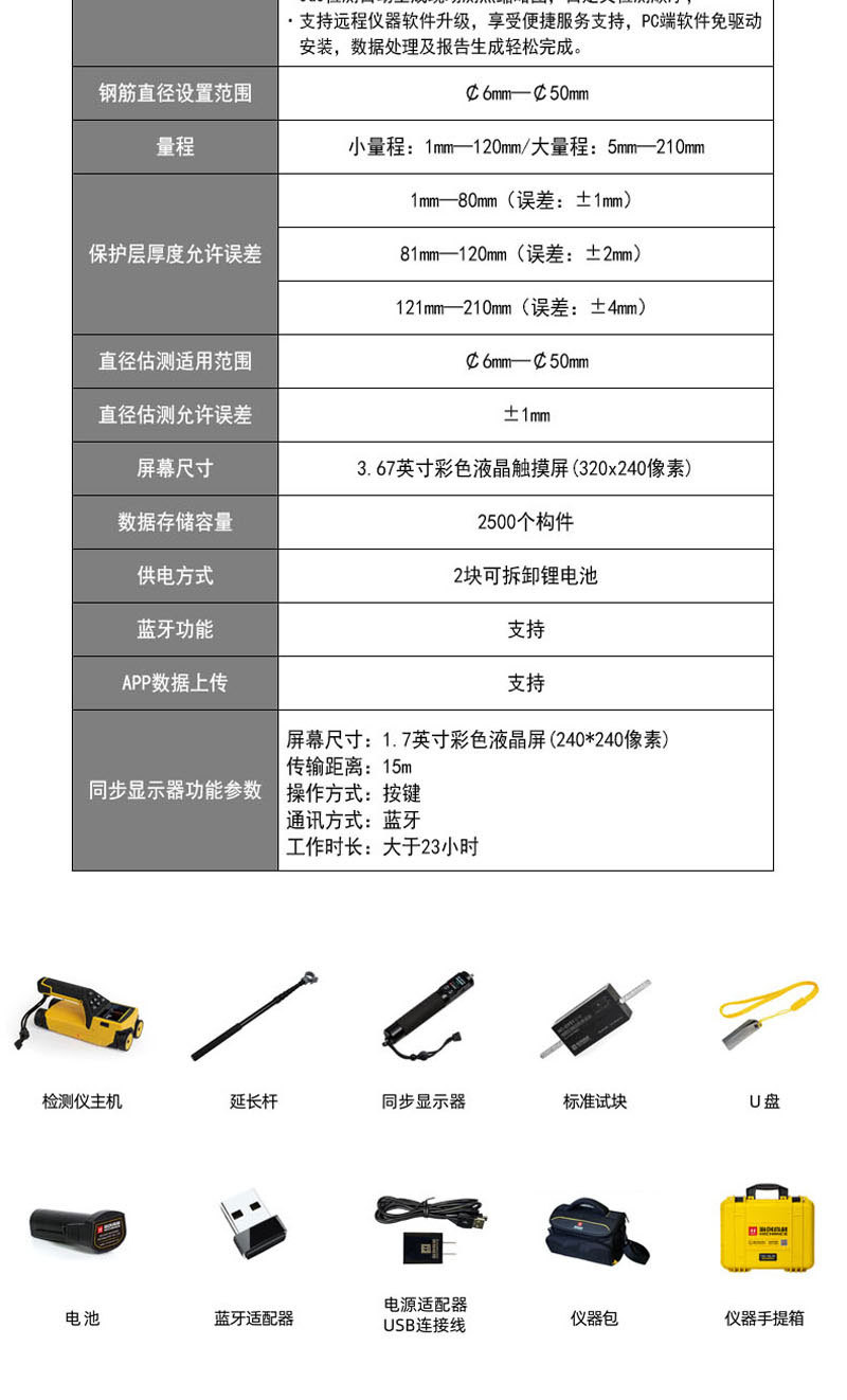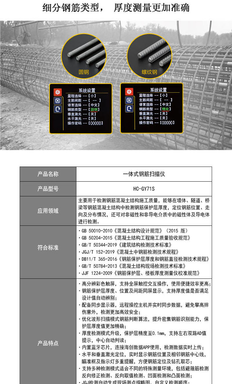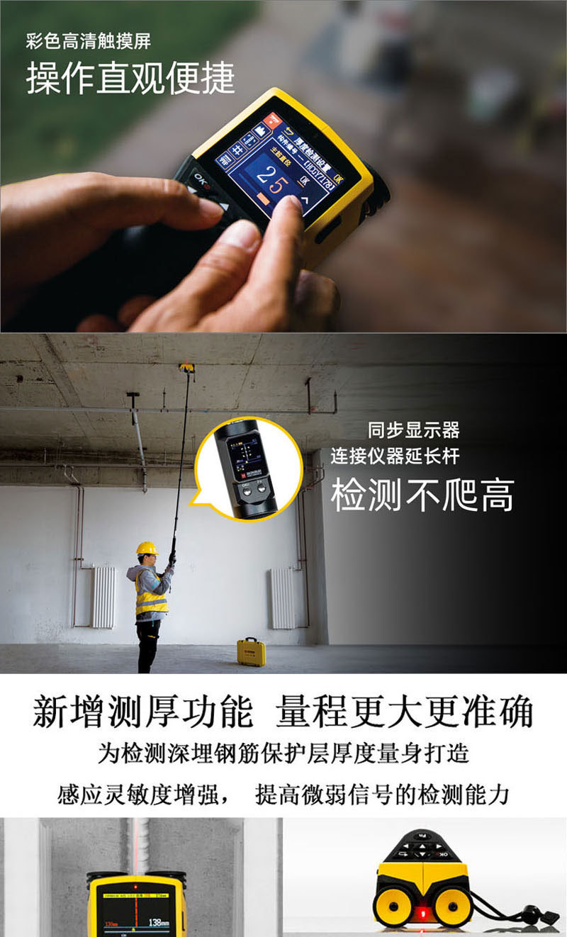 HC-GY71S Интегрированный сканер арматуры Детектор толщины защитного слоя Тест на расстояние между стальными прутьями