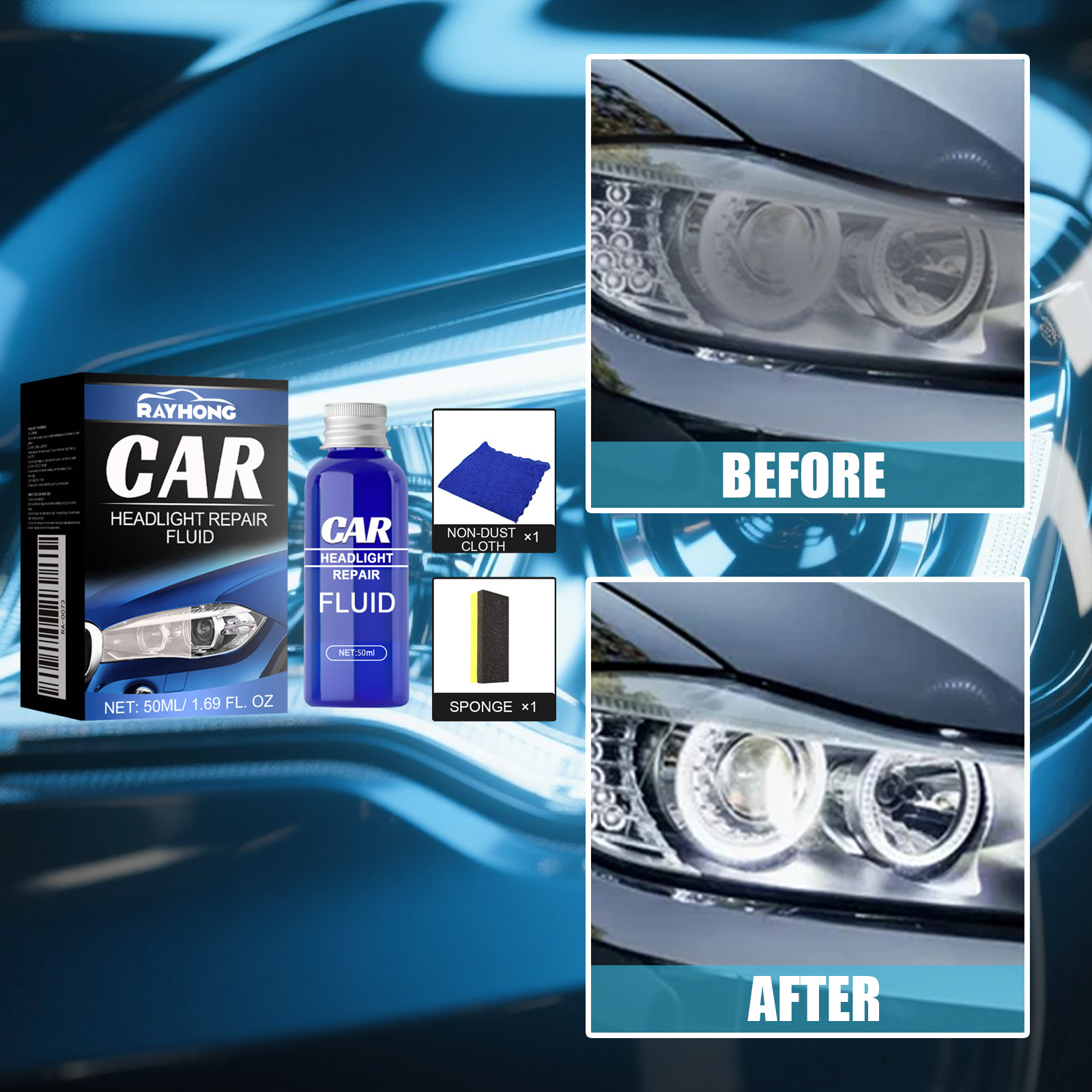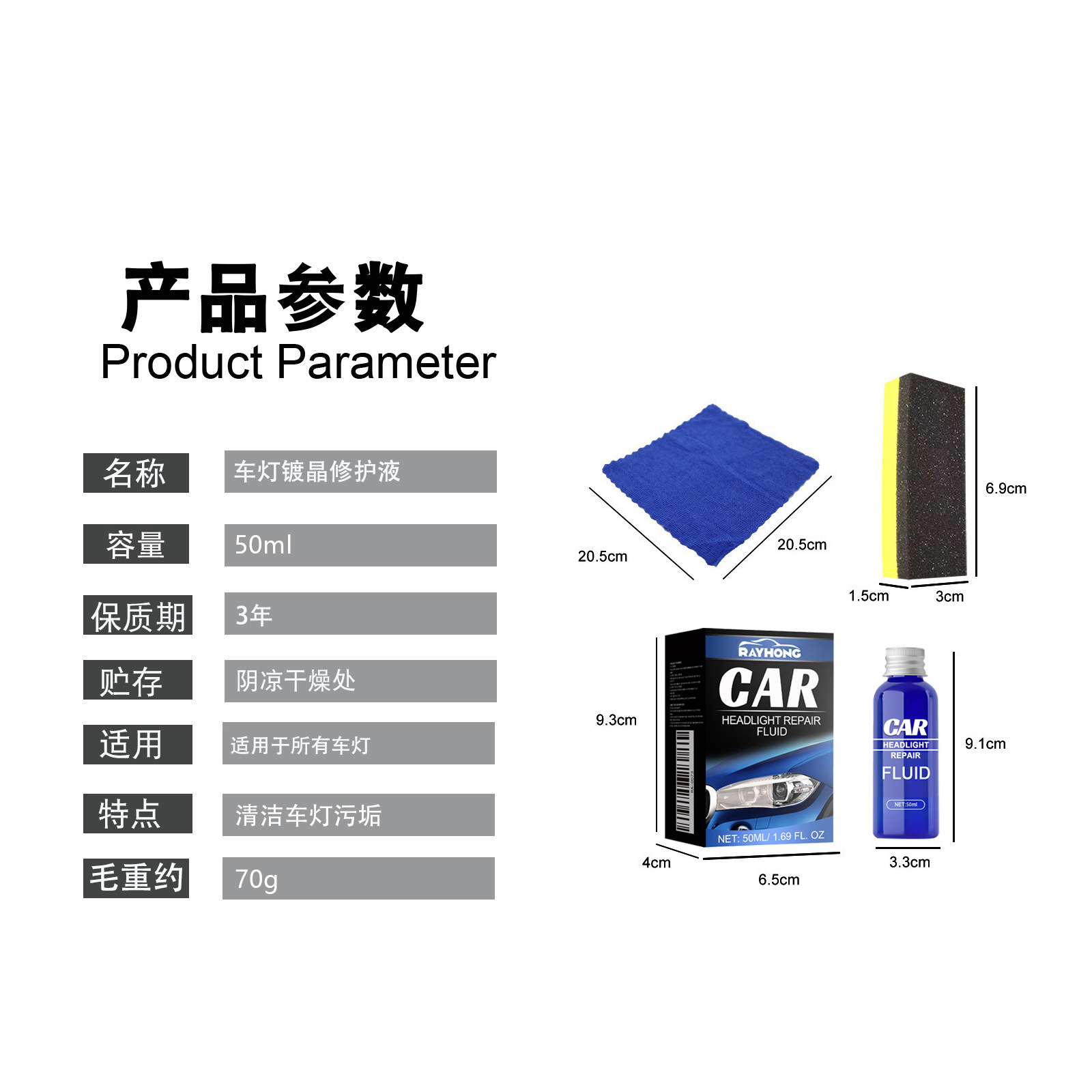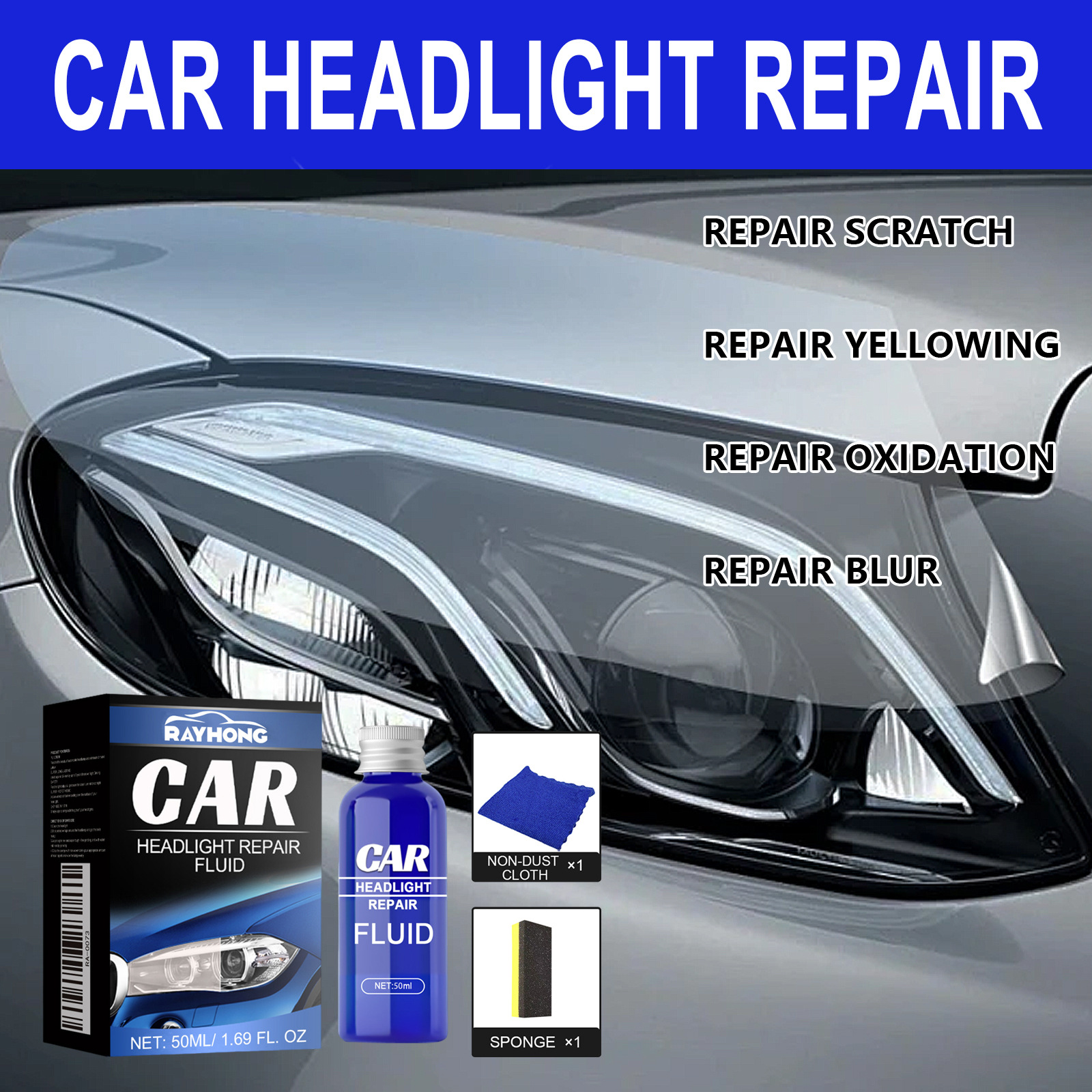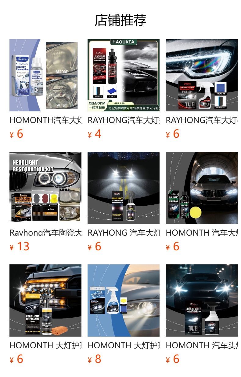 Набор средств для ухода за фарами Rayhong, средство для ремонта фар с кристаллическим покрытием, раствор для ухода за автомобильными фарами