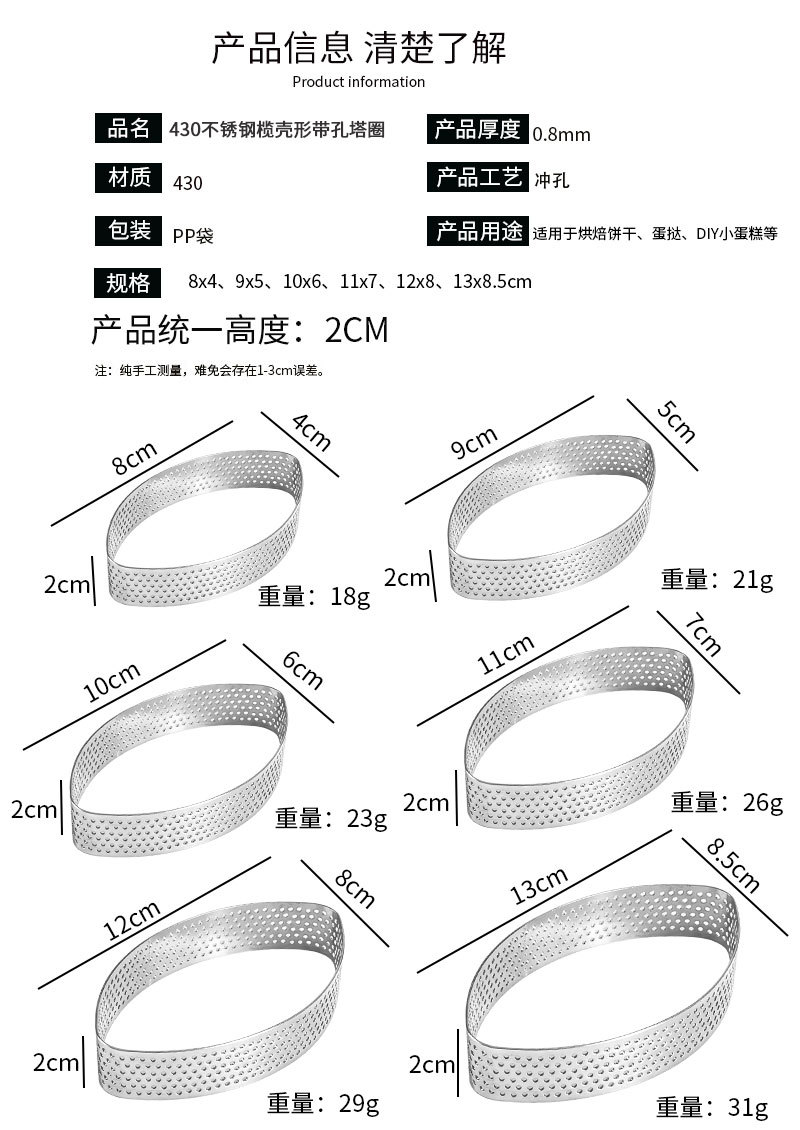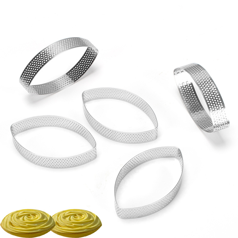 Формочки для выпечки из нержавеющей стали Amazon 430, перфорированные, оливковой формы, для фруктовых тарталеток, сырного мусса и тарталеток