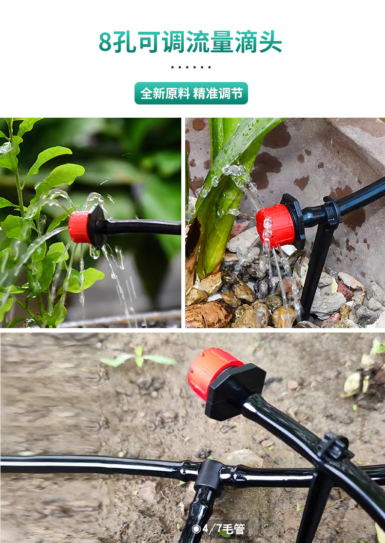 Капельница с восемью отверстиями для фруктовых деревьев, капельное орошение, защита от засорения, регулируемая капельница, новая модель, капельница «Красная Шапочка» с восемью отверстиями и регулируемым расходом