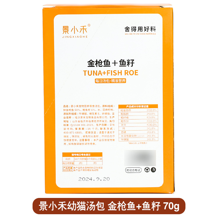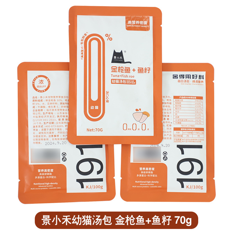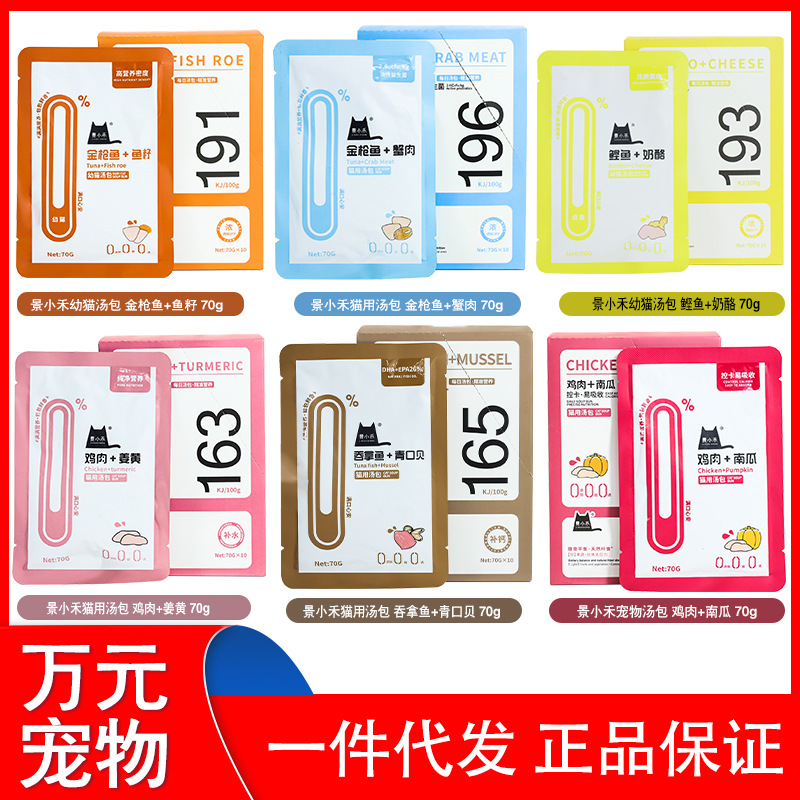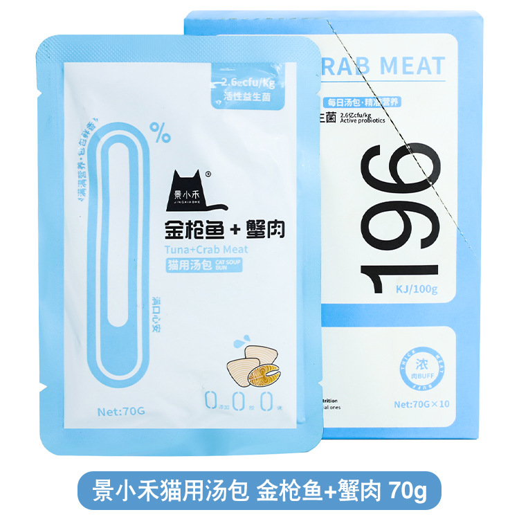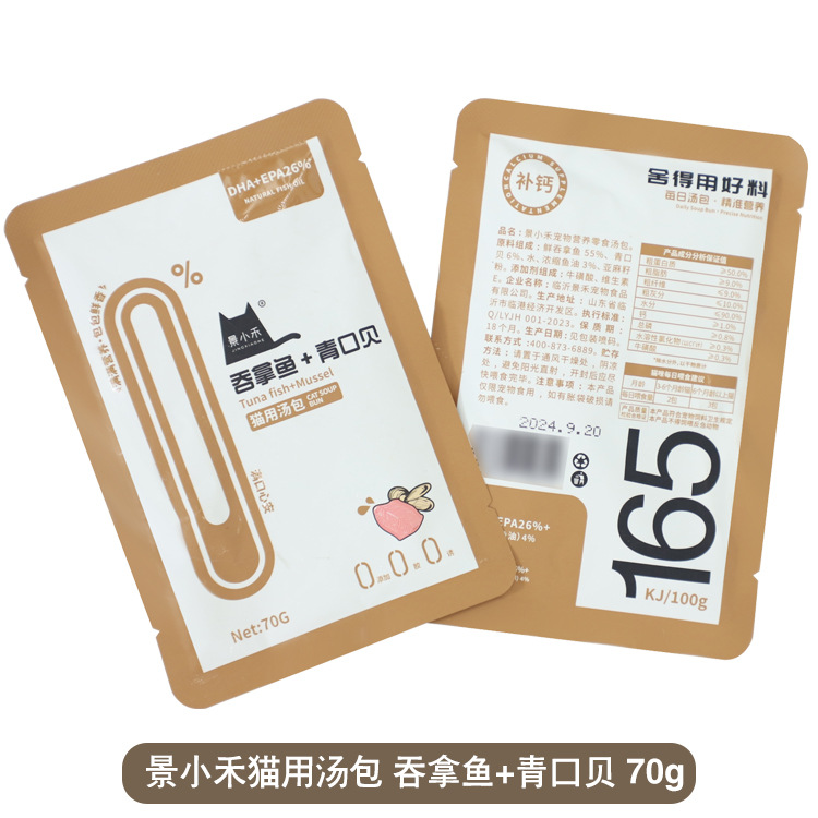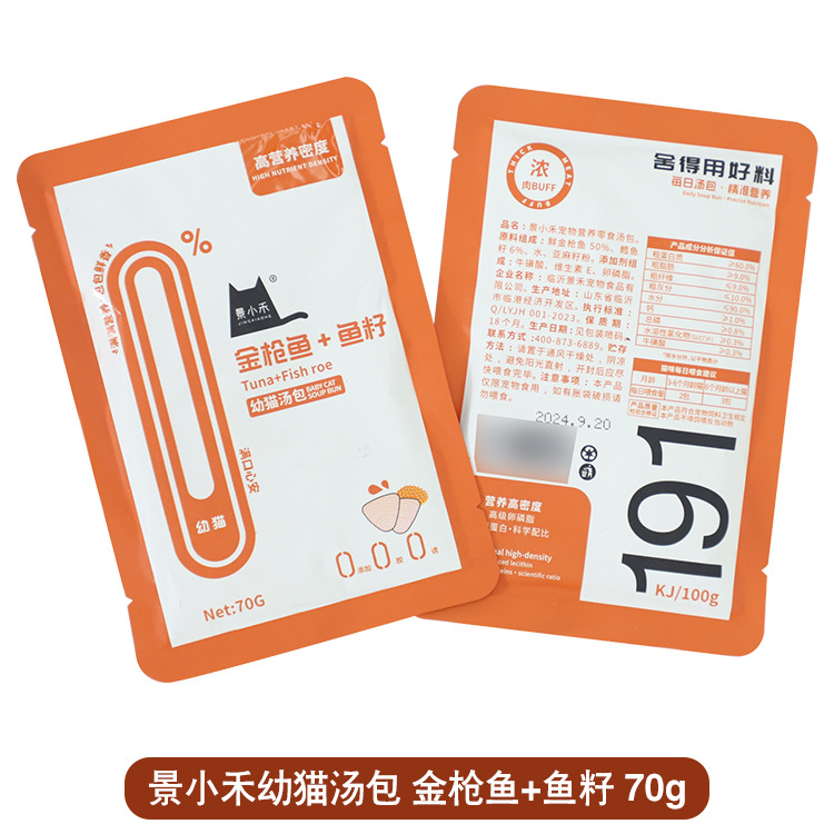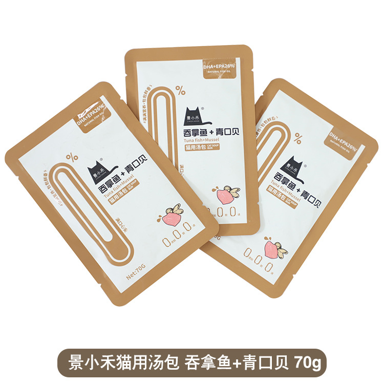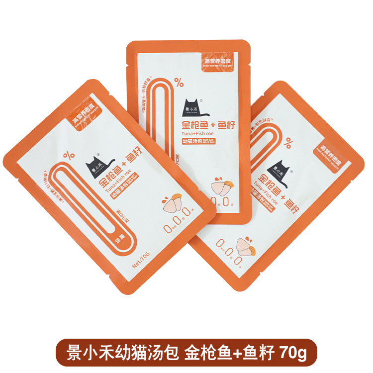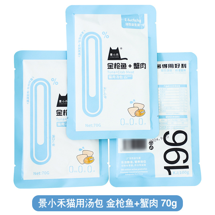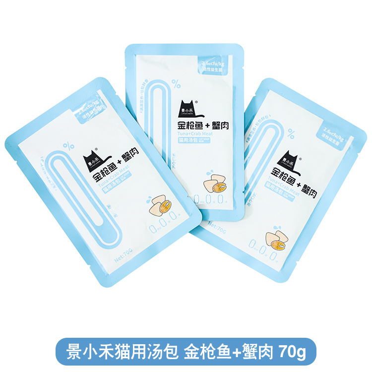 Срок годности 26 марта, кошка Цзин Сяохуо использует пакетик для супа 70 г, курица, имбирь, золотая пистолетная рыба, крабовое мясо, тунец, икра, суповый пакетик