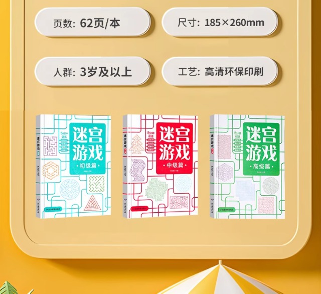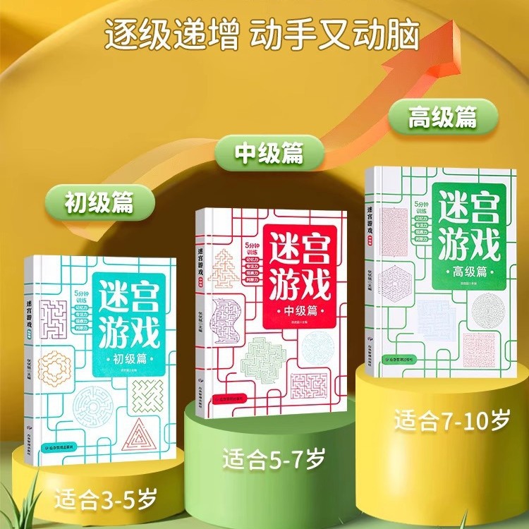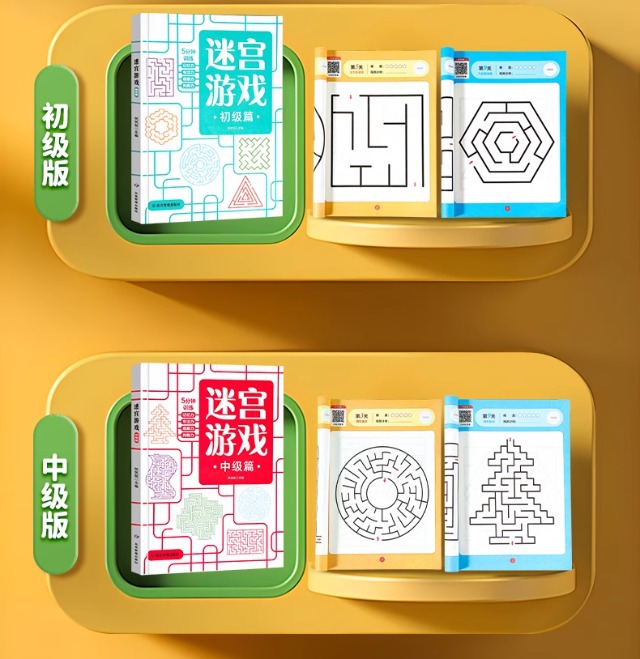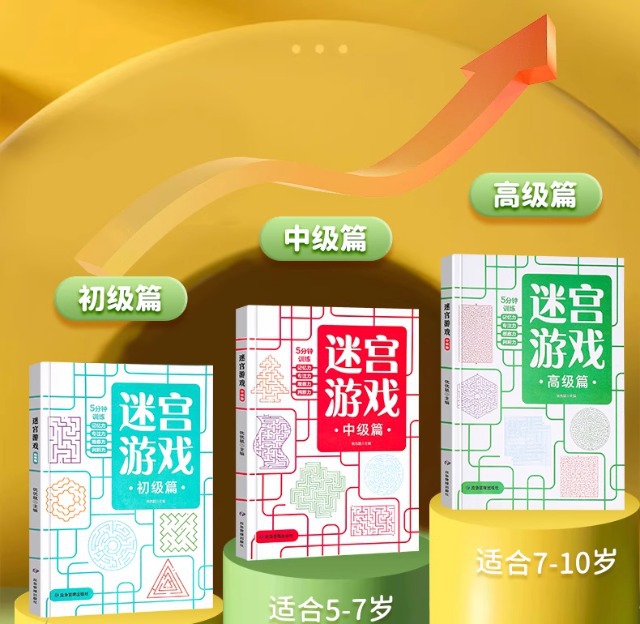 Юниорская версия лабиринта [3-5 лет]; Промежуточная версия лабиринта [5-7 лет]; Расширенная версия лабиринта [7-10 лет]; Элементарное + Среднее издание [3-7 лет]; Средний + Расширенное издание [5-10 лет]; Полный набор из трех лабиринтов [3-10 лет]