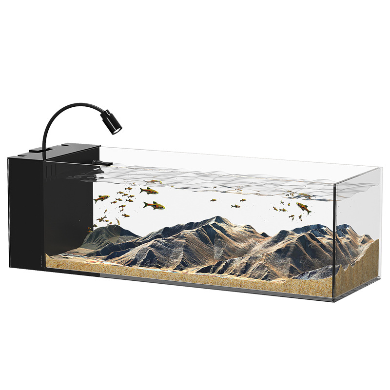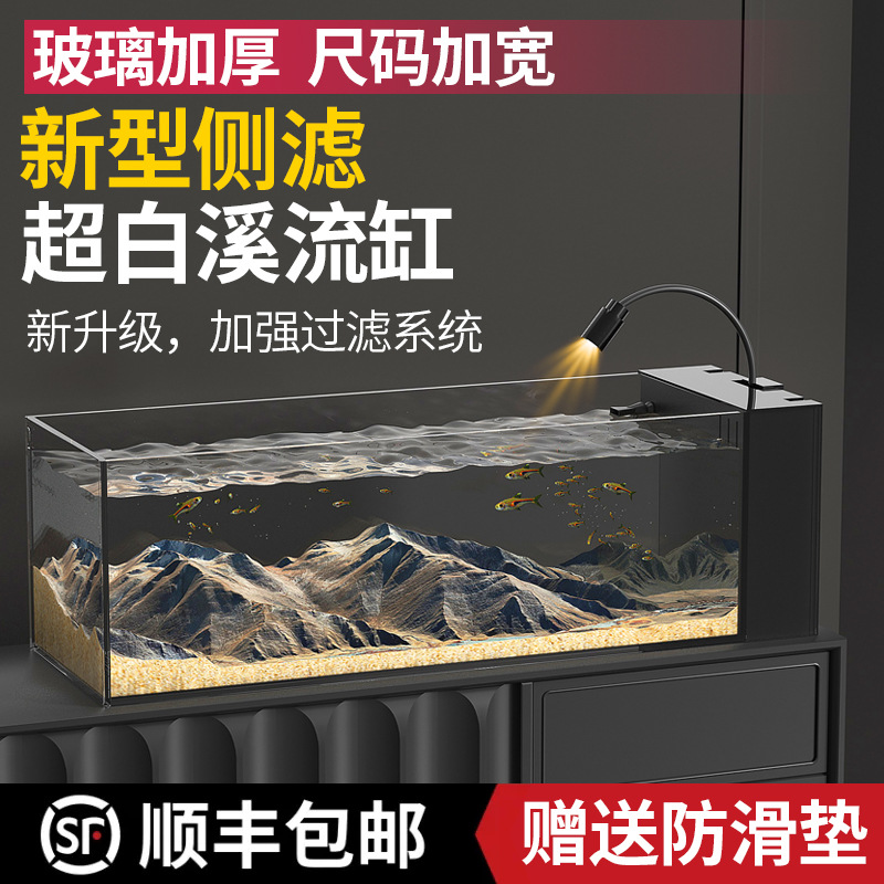 Аквариум Stream Tank 2025, новый аквариум с интегрированным донным фильтром, для гостиной, золотой кристалл, белый боковой фильтр, небольшой стеклянный ландшафтный комплект.