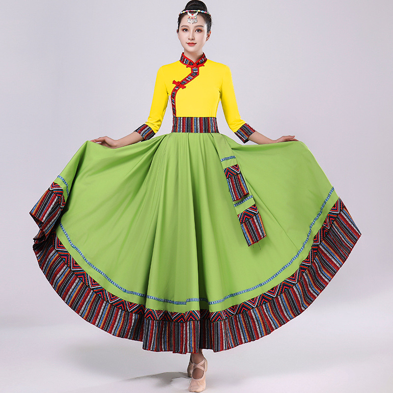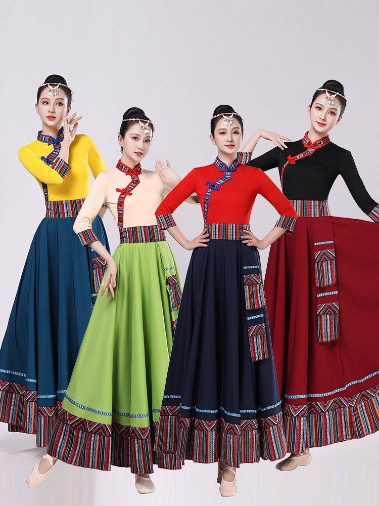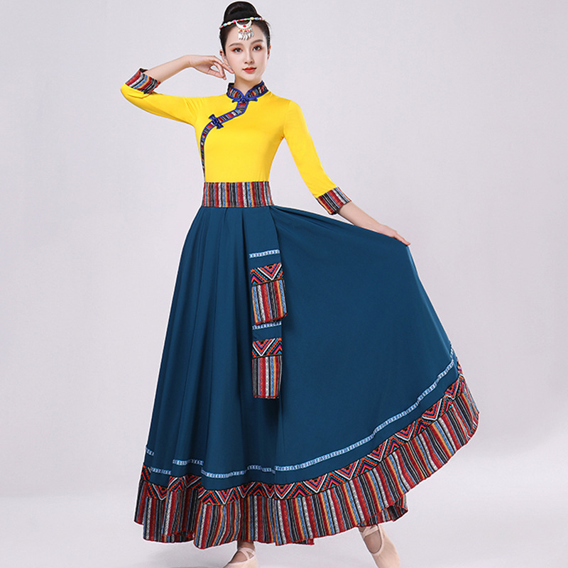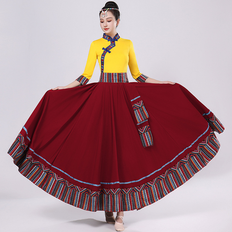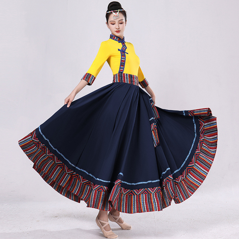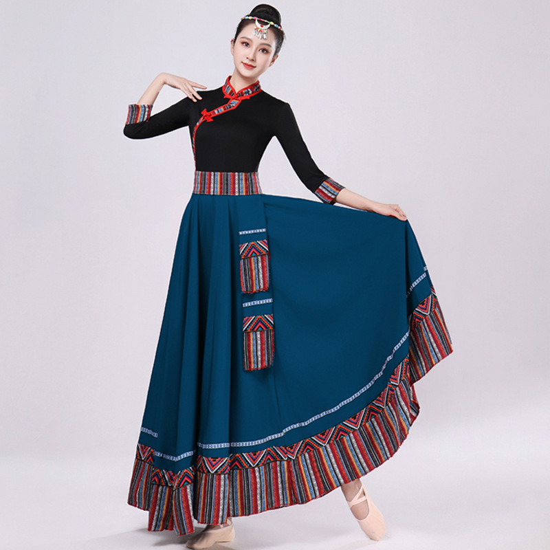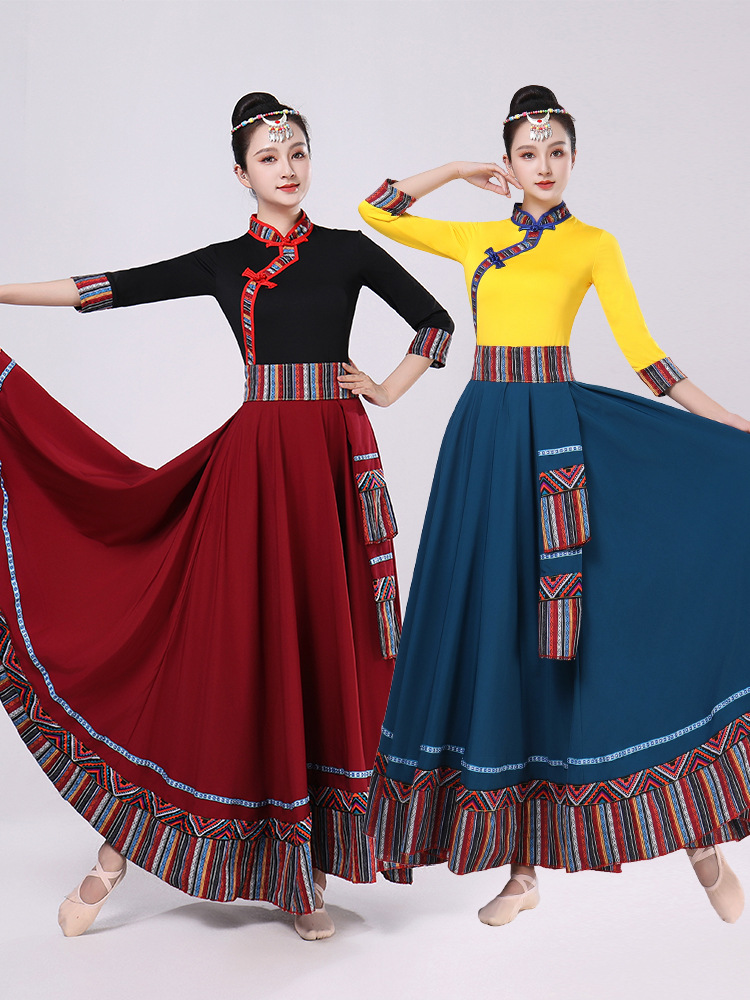 Тибетская танцевальная одежда, женский новый костюм в этническом стиле, тибетская большая распашная длинная юбка средней длины для тренировок, квадратная сцена
