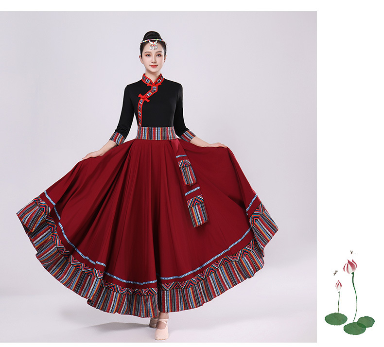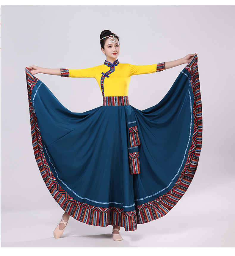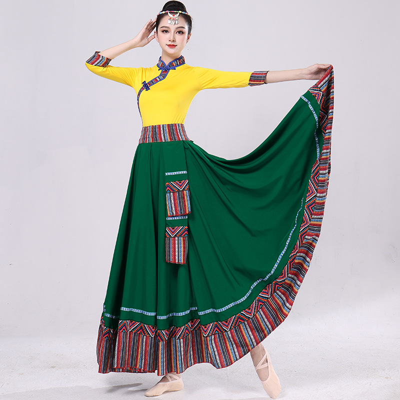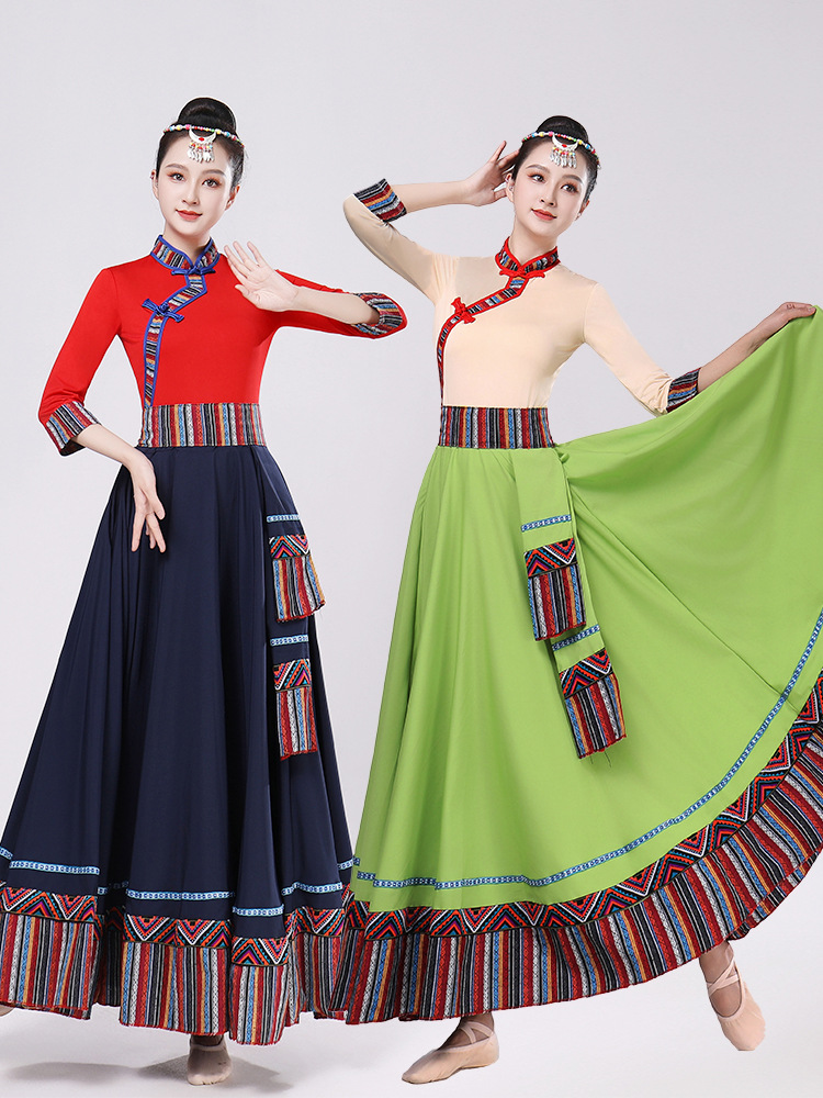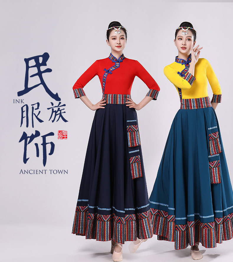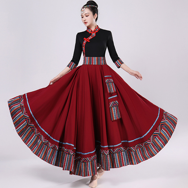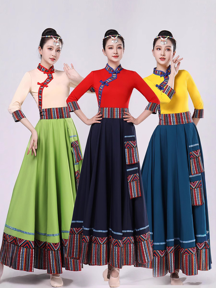 Тибетская танцевальная одежда, женский новый костюм в этническом стиле, тибетская большая распашная длинная юбка средней длины для тренировок, квадратная сцена
