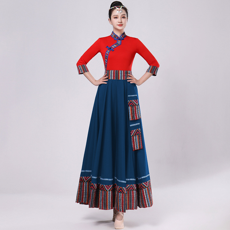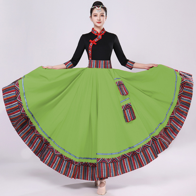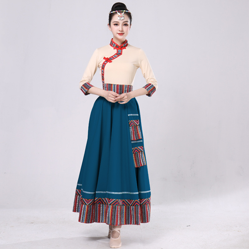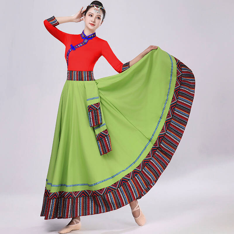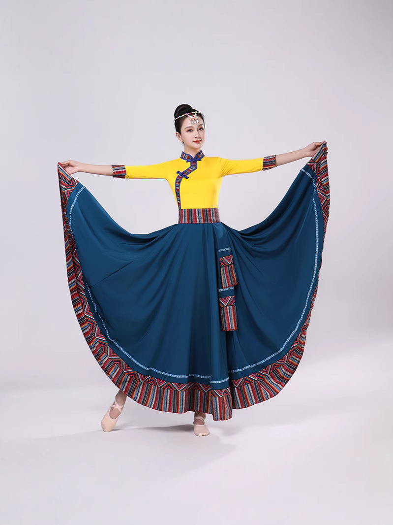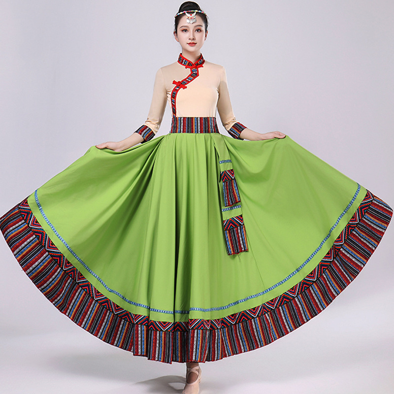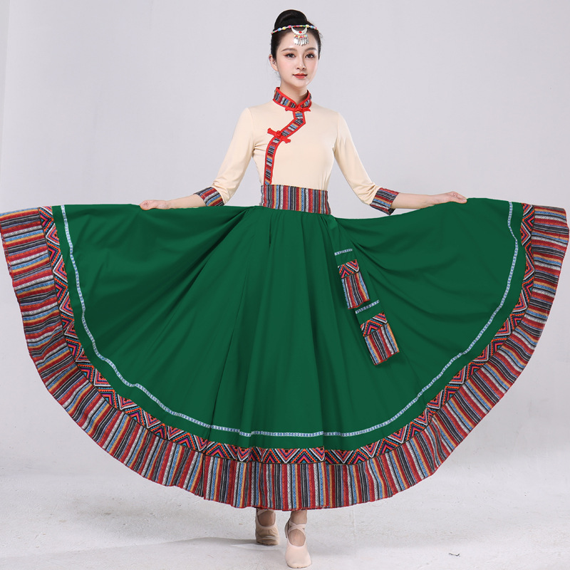Тибетская танцевальная одежда, женский новый костюм в этническом стиле, тибетская большая распашная длинная юбка средней длины для тренировок, квадратная сцена