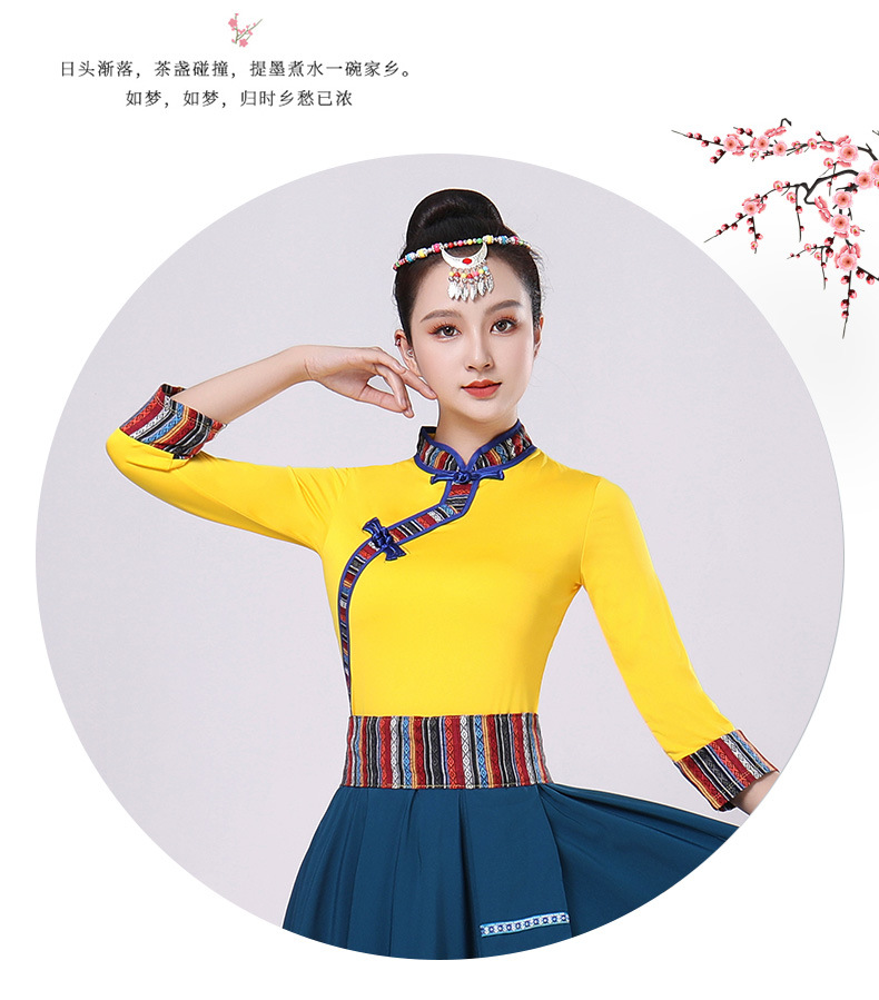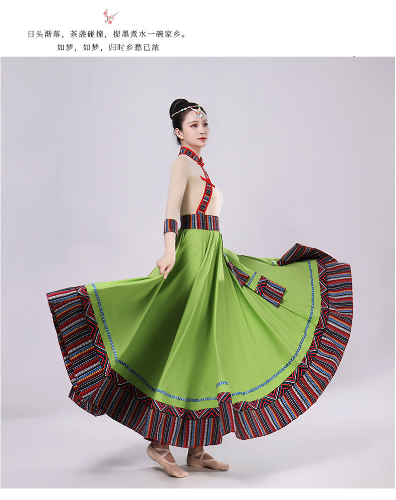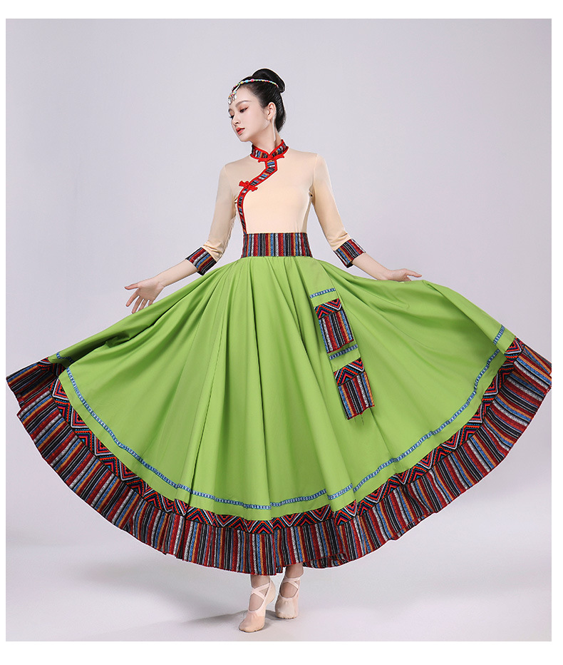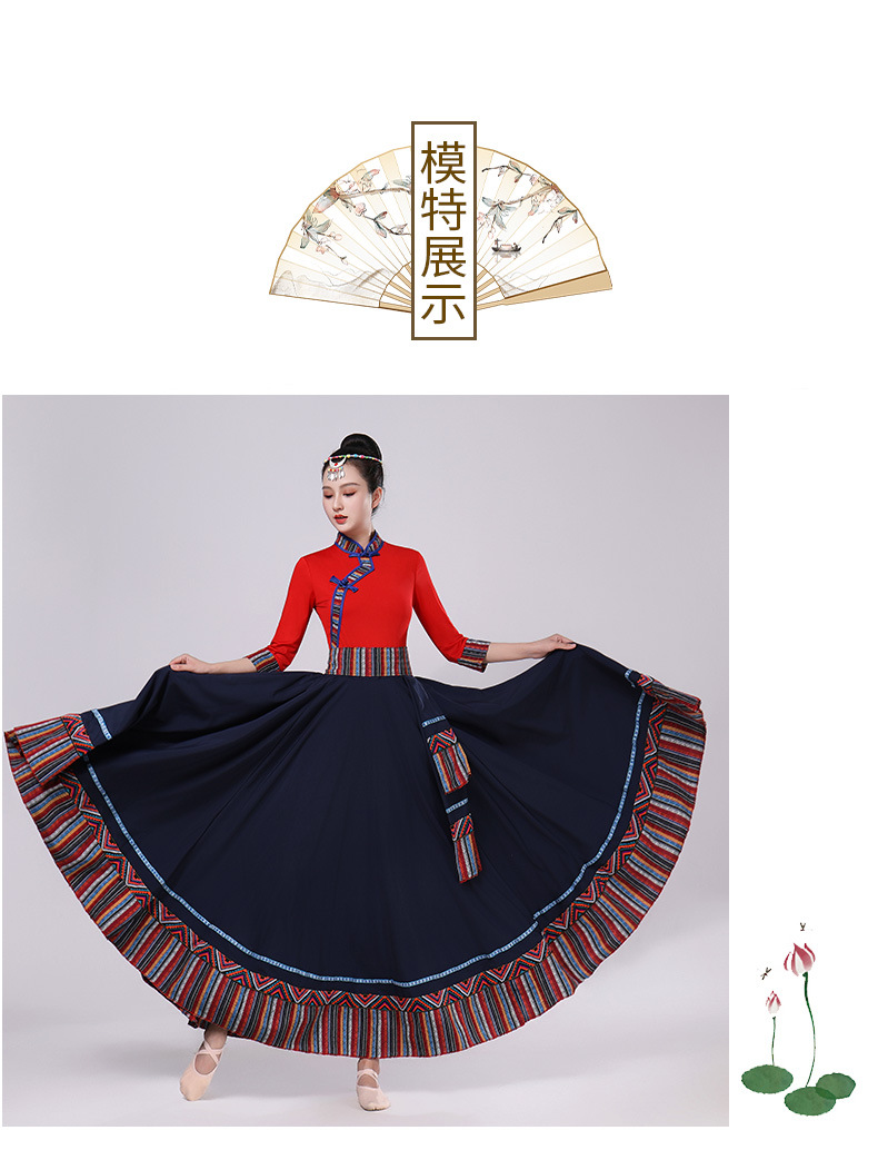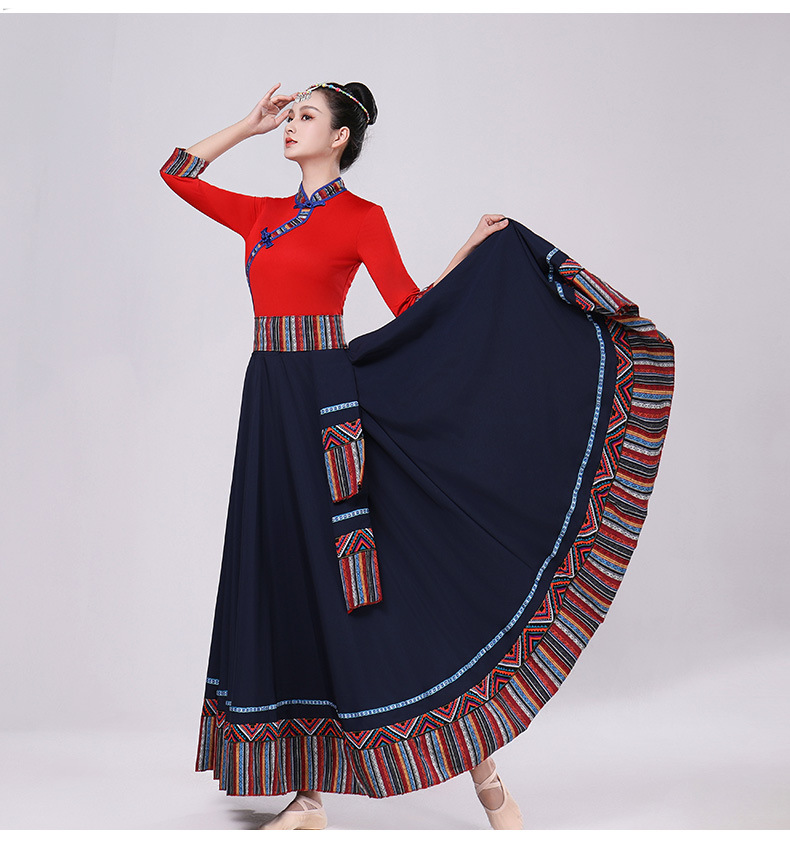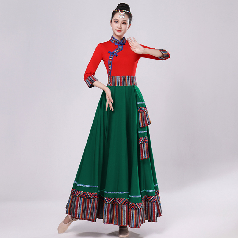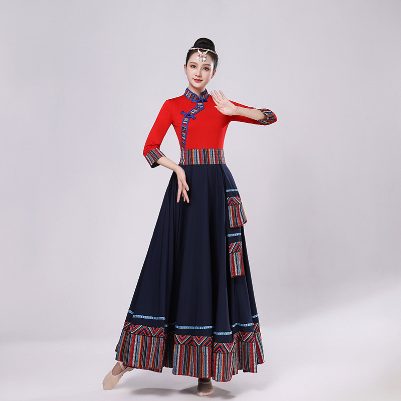 Тибетская танцевальная одежда, женский новый костюм в этническом стиле, тибетская большая распашная длинная юбка средней длины для тренировок, квадратная сцена