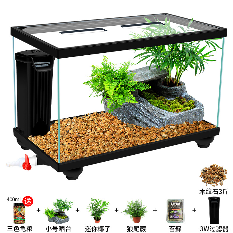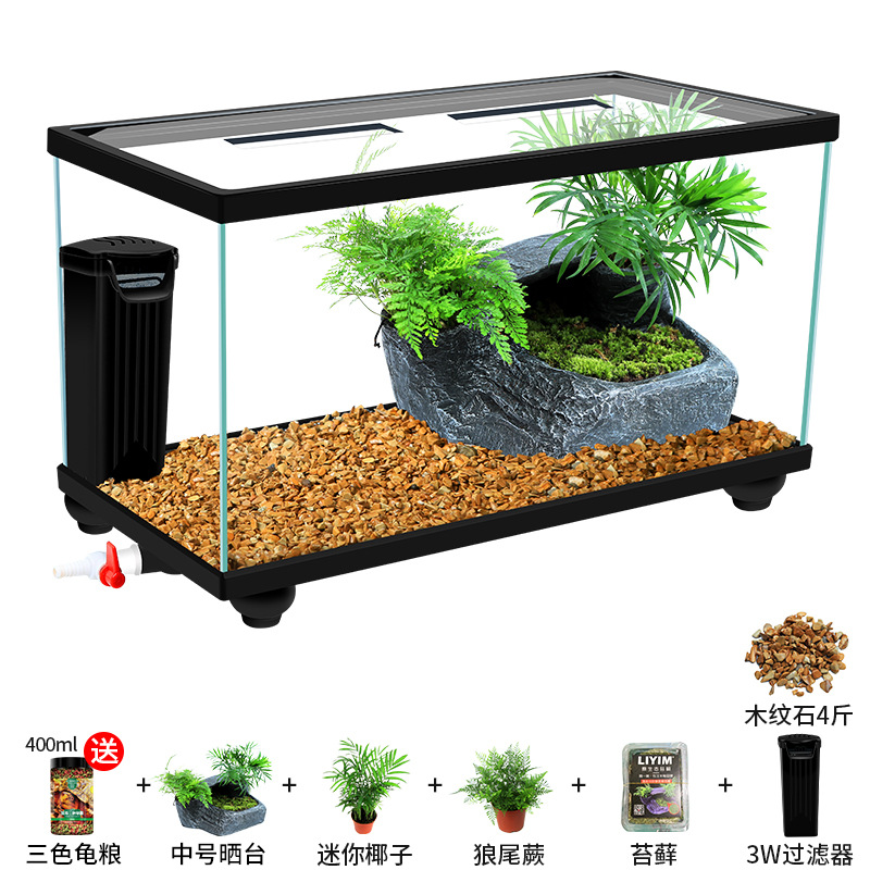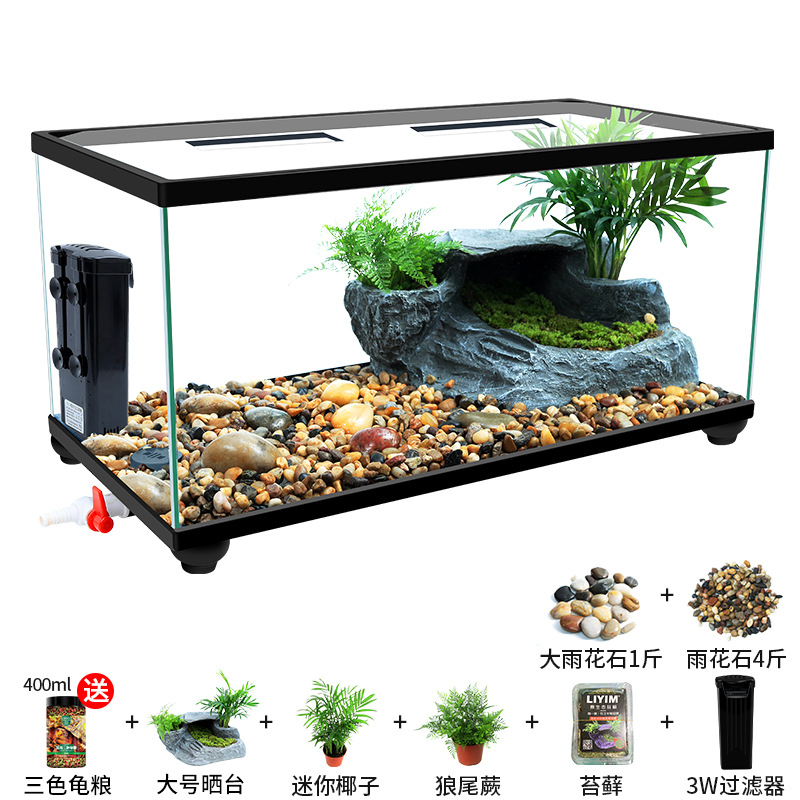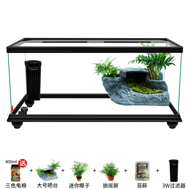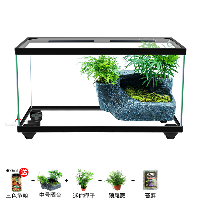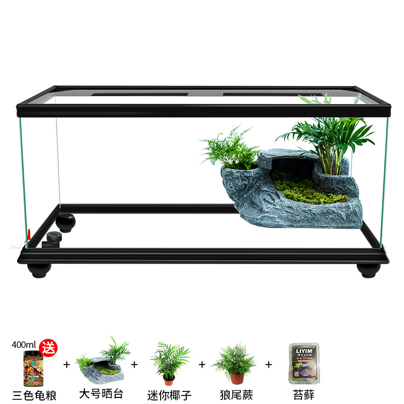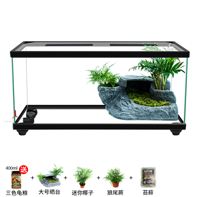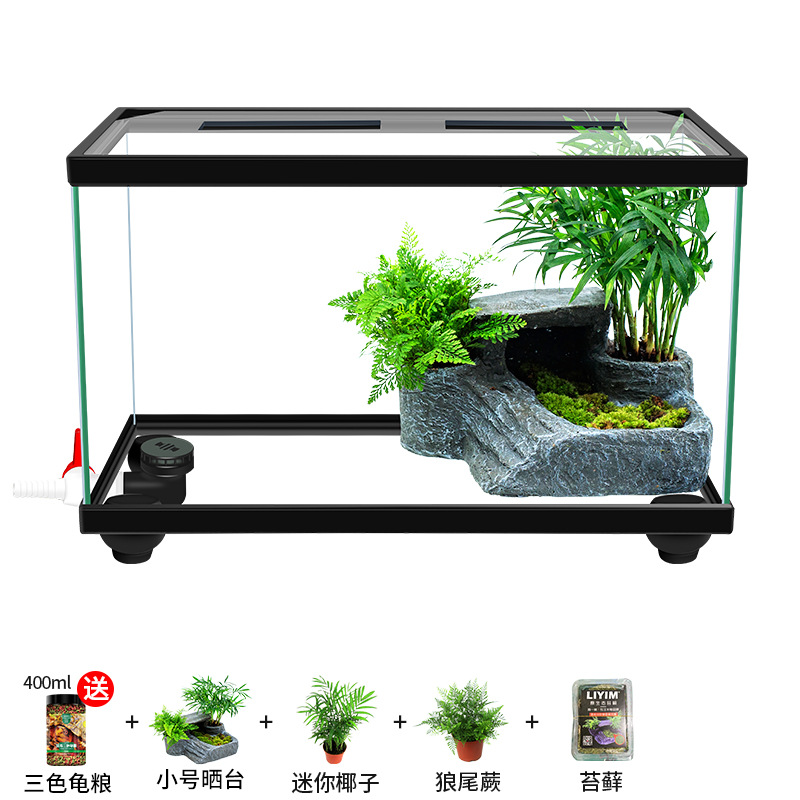 Аквариум для черепах с крышкой, большой дренаж внизу с террасой, специальный экологический стеклянный аквариум для разведения черепах, бытовой аквариум для разведения черепах.
