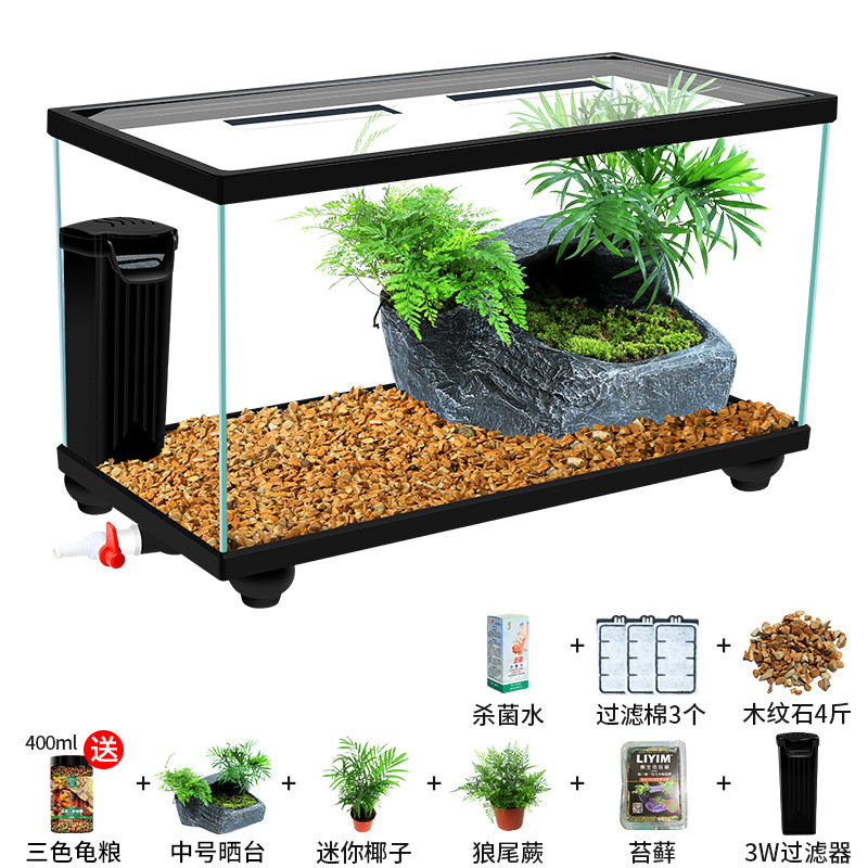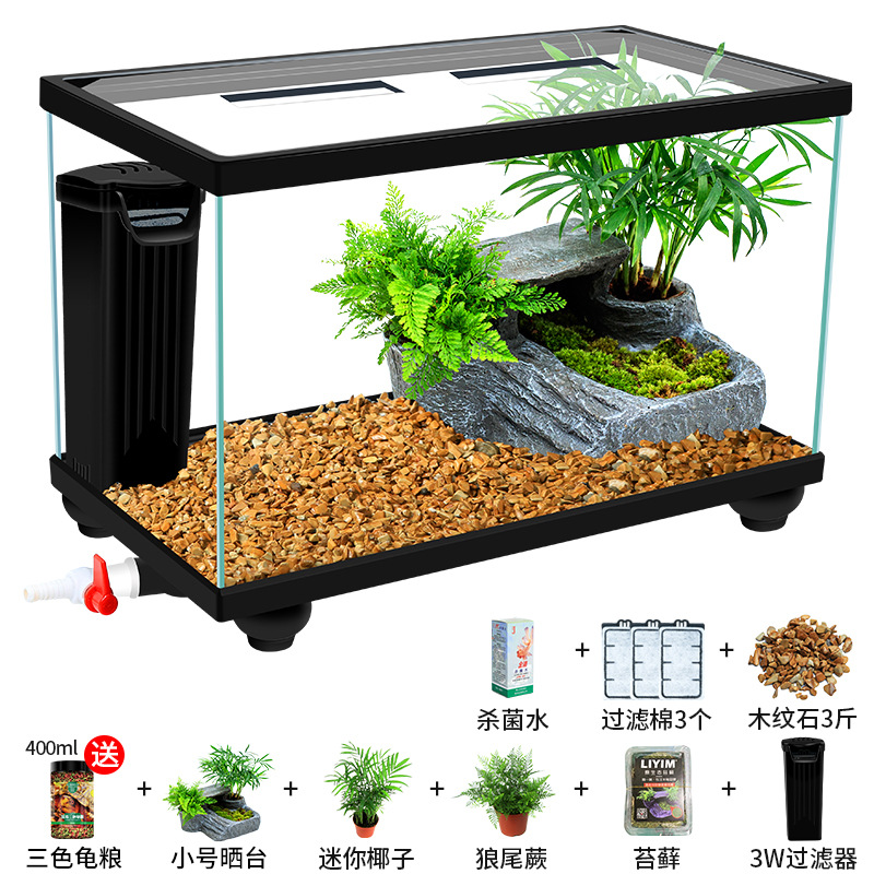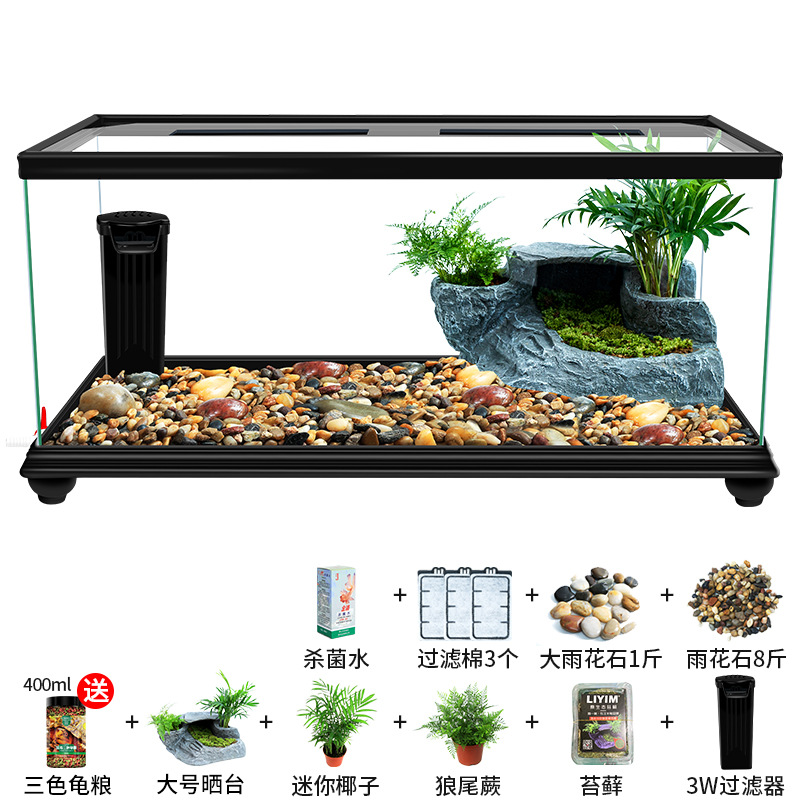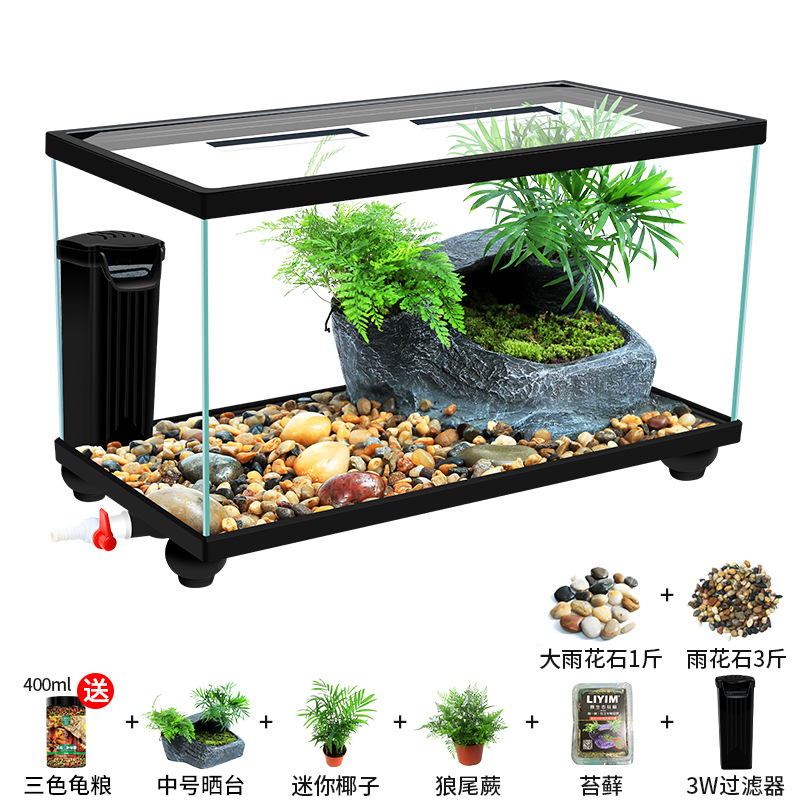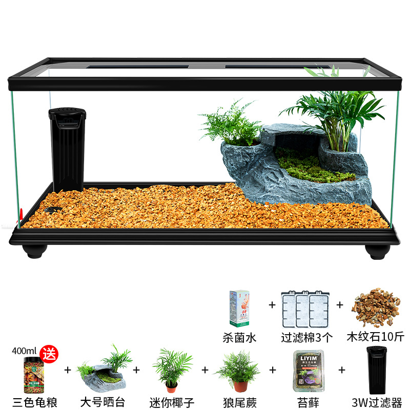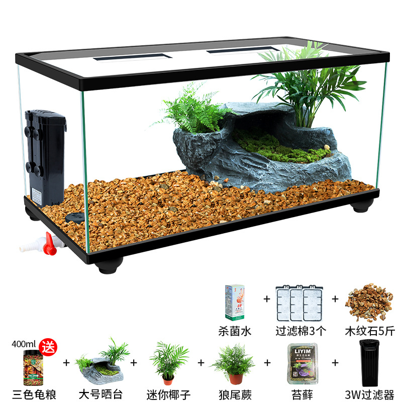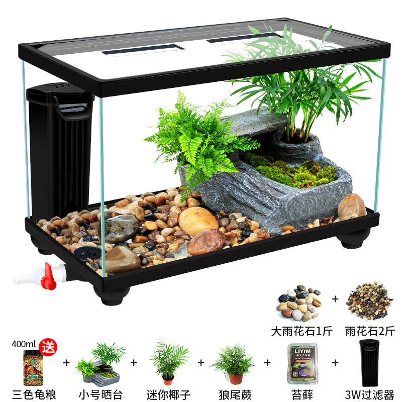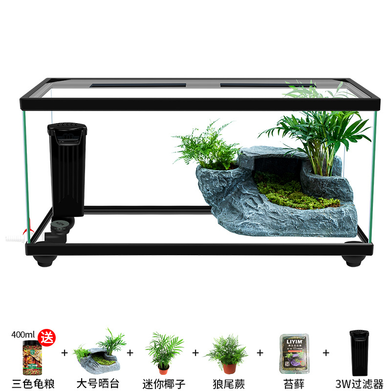 Аквариум для черепах с крышкой, большой дренаж внизу с террасой, специальный экологический стеклянный аквариум для разведения черепах, бытовой аквариум для разведения черепах.