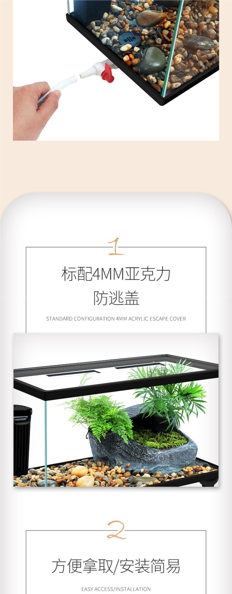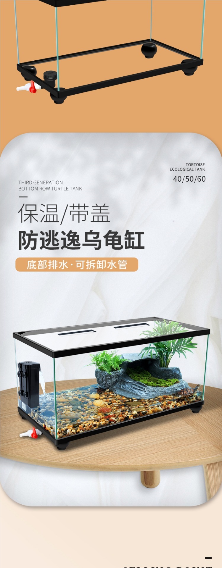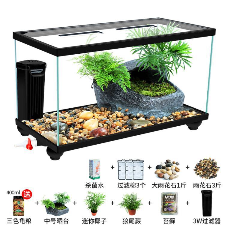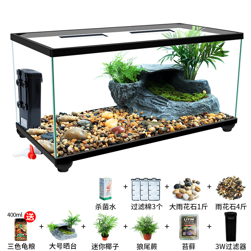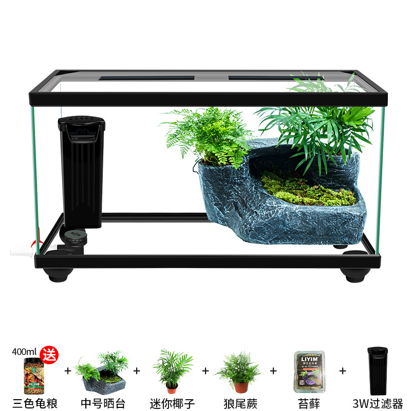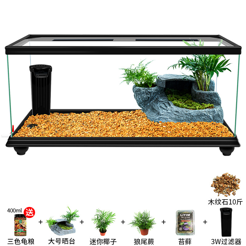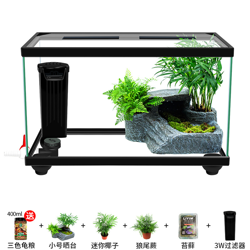 Аквариум для черепах с крышкой, большой дренаж внизу с террасой, специальный экологический стеклянный аквариум для разведения черепах, бытовой аквариум для разведения черепах.
