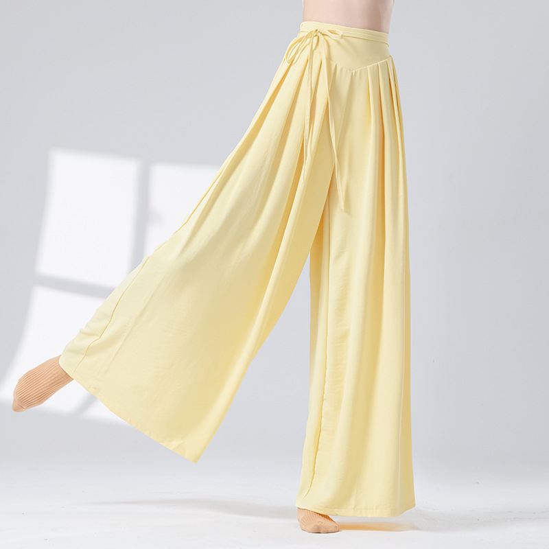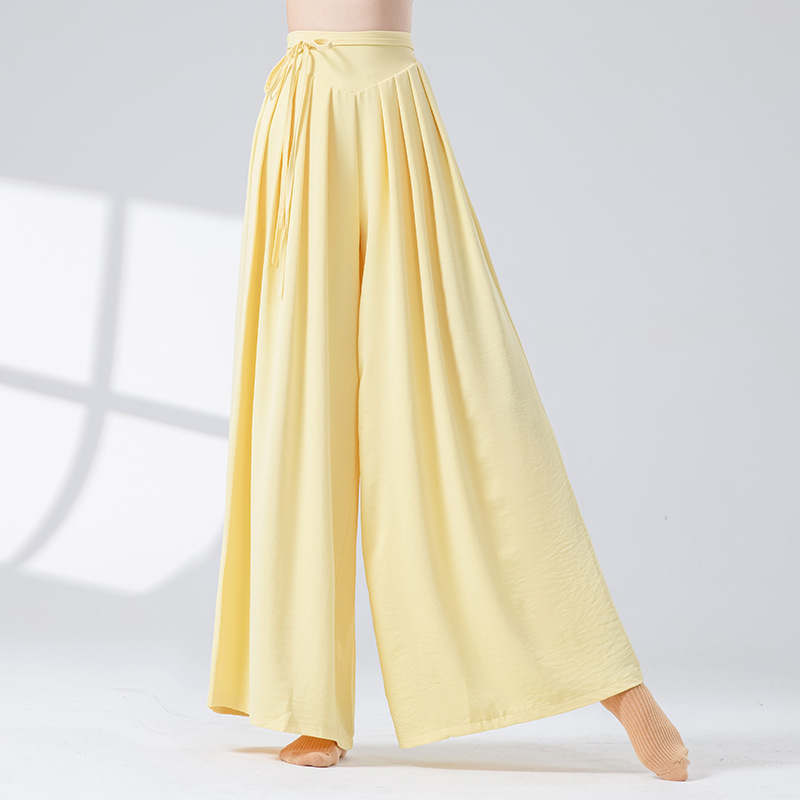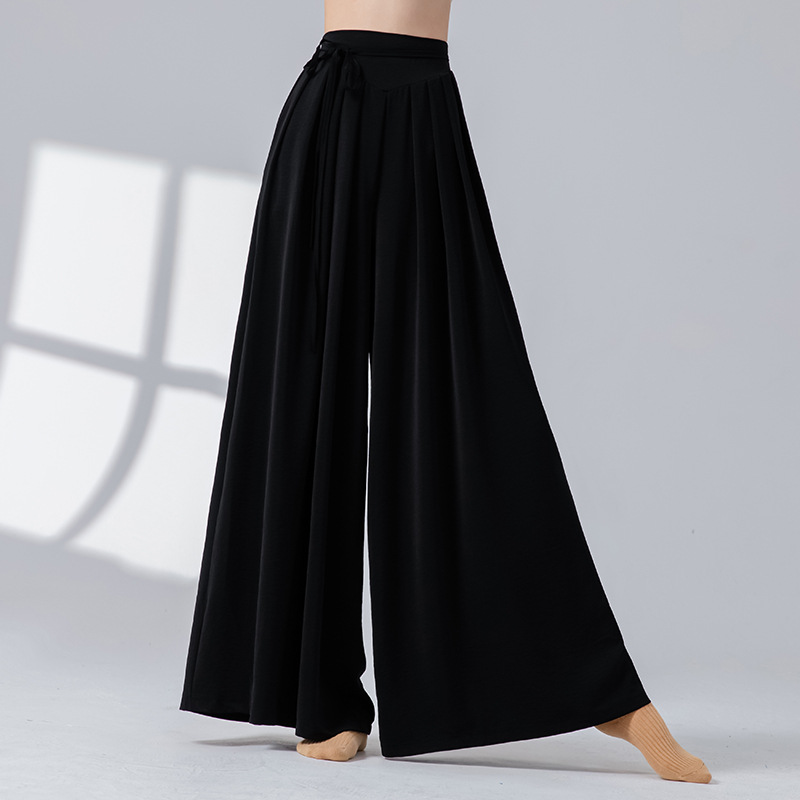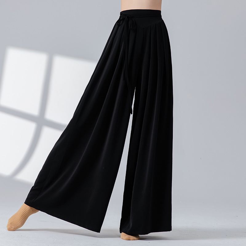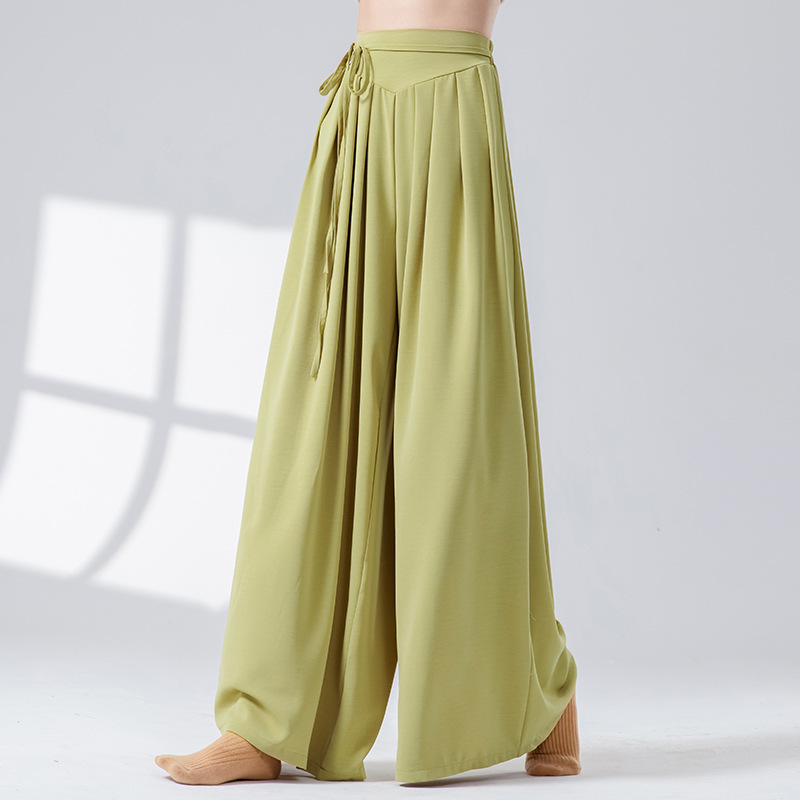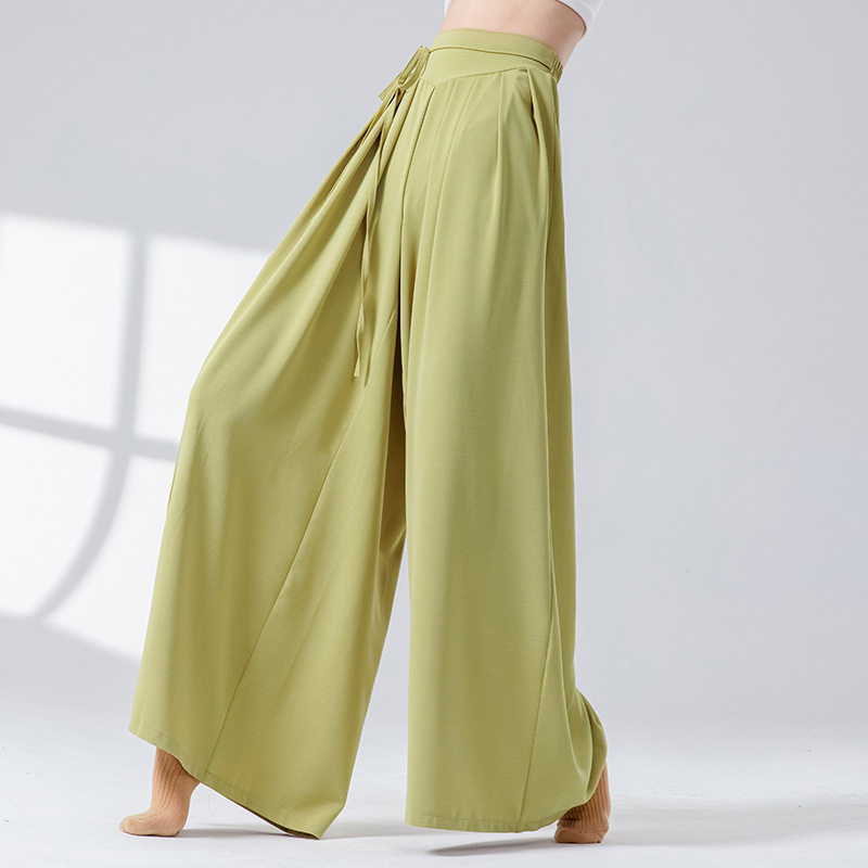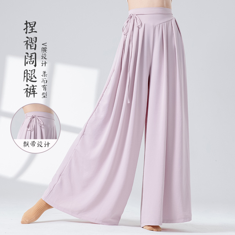 Новые повседневные брюки с высокой талией в стиле дзен и драпировкой, свободные широкие брюки для современных танцев, китайских танцев, йоги и танцев