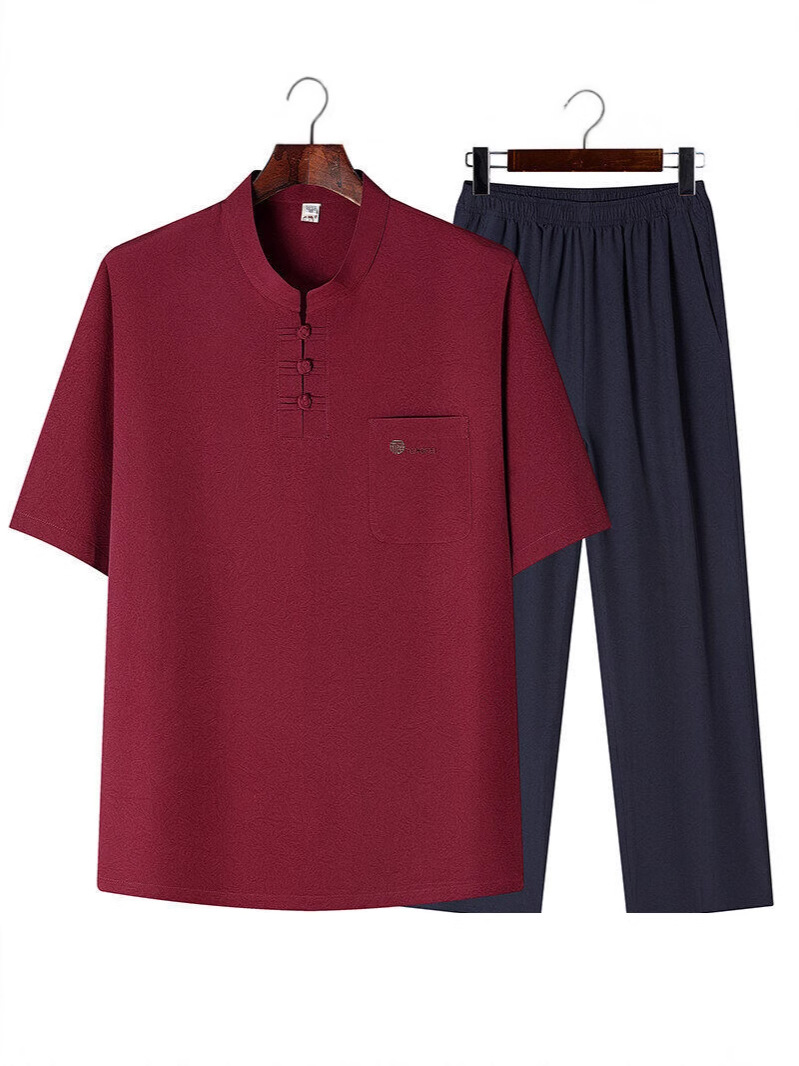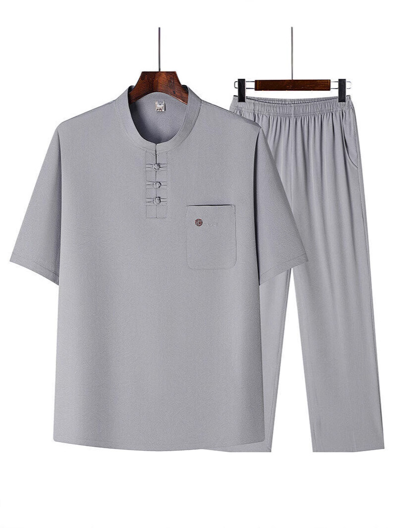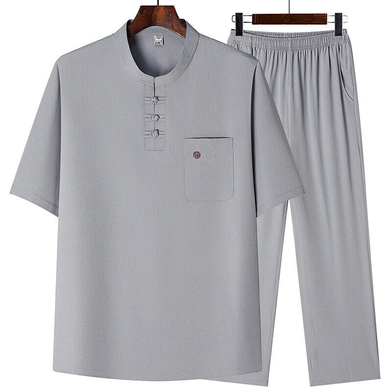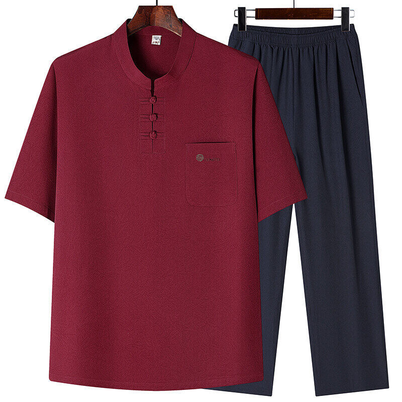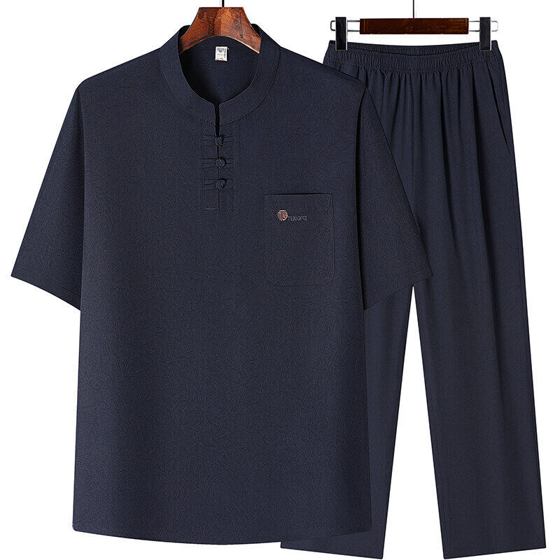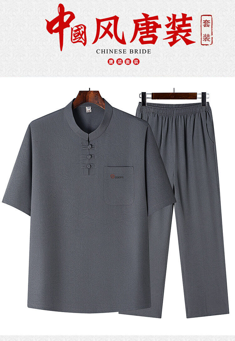 Повседневная одежда для папы, повседневный деловой комплект из двух предметов для мужчин среднего возраста, одежда для среднего и пожилого возраста, летняя мужская одежда с короткими рукавами.