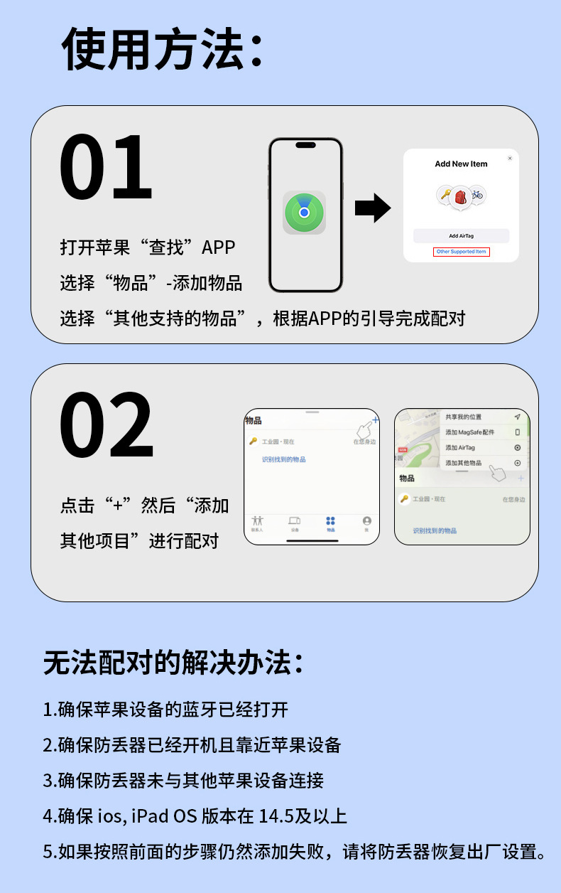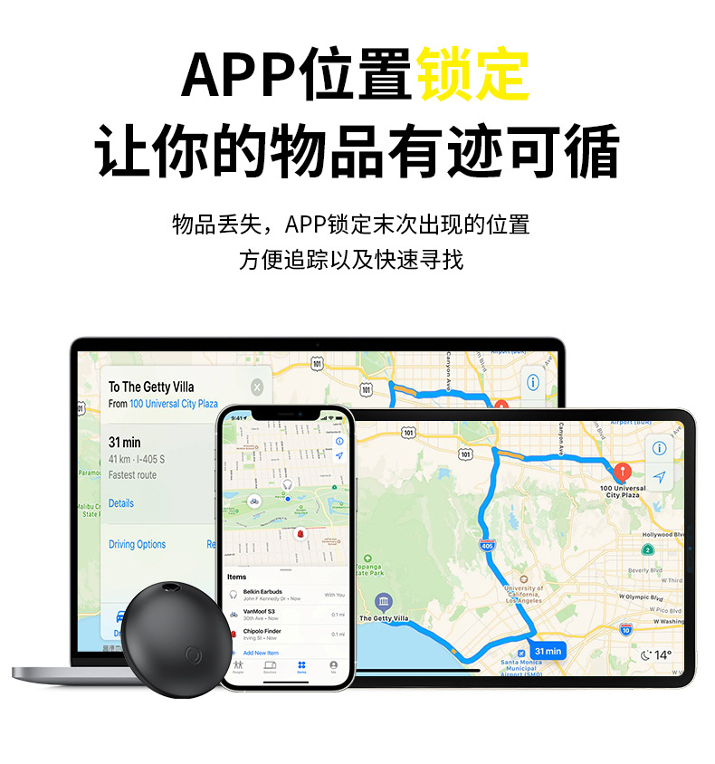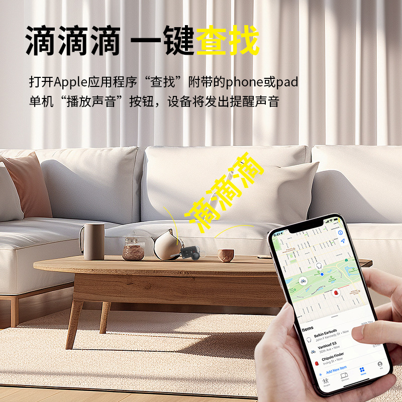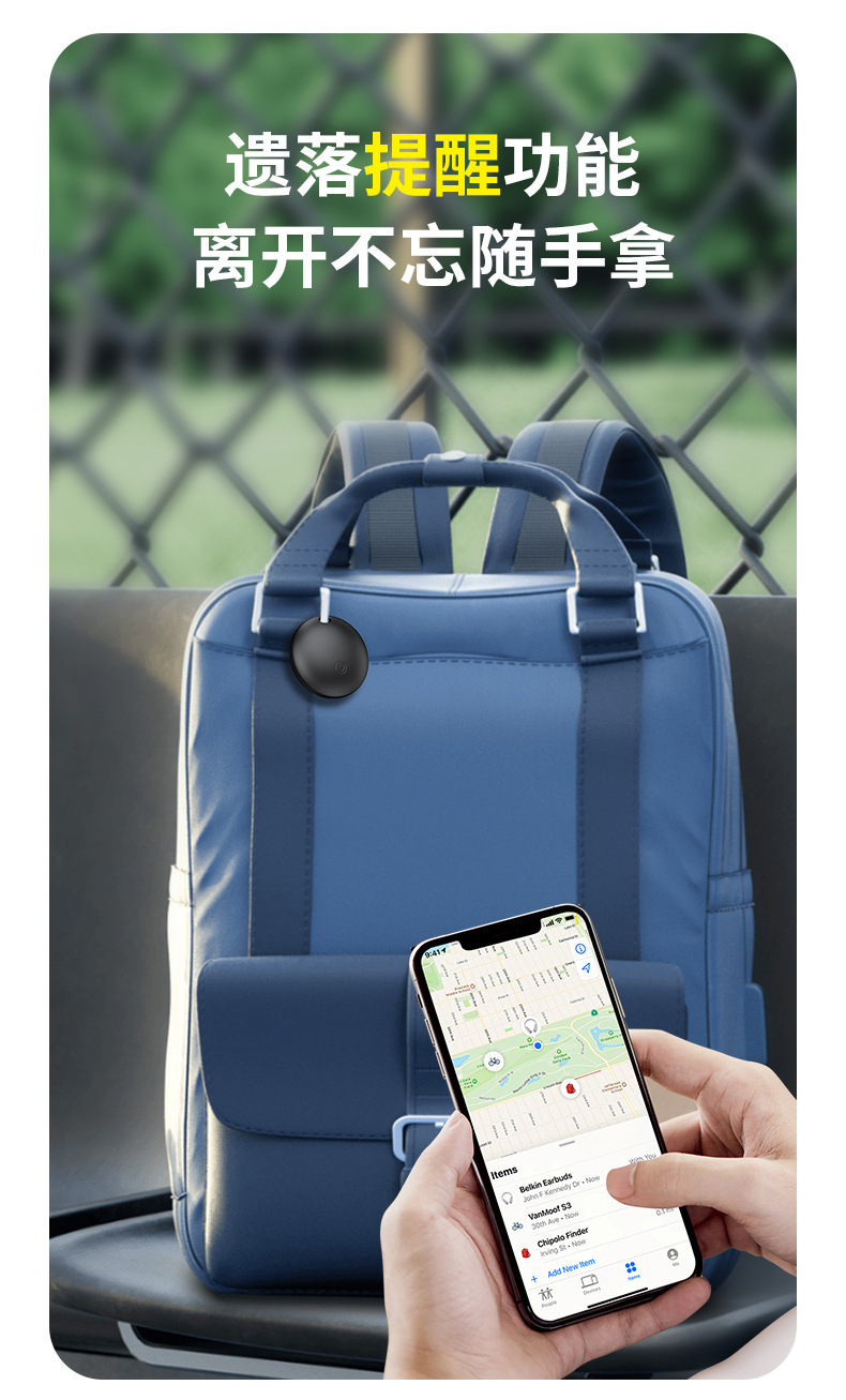 产品已通过苹果MFI认证,支持苹果Find My网络的蓝牙定位器,可以直接和苹果手机自带的“查找”App绑定,无需下载独立的app,直接使用方便快捷。