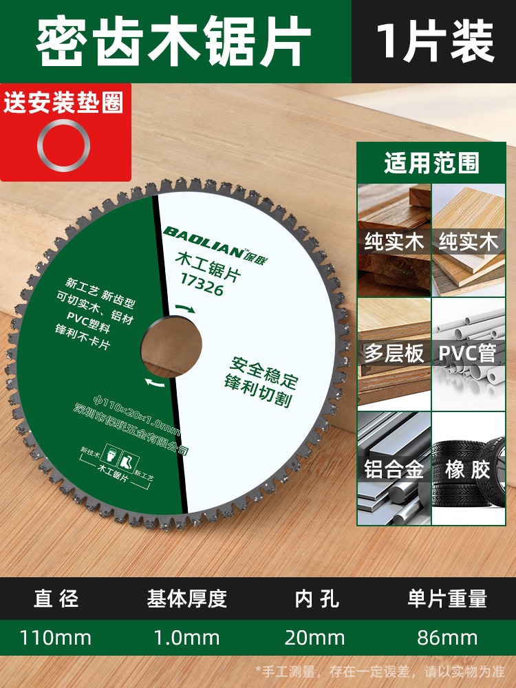 Пильное полотно для тонкой древесины [1 шт.] с монтажной шайбой