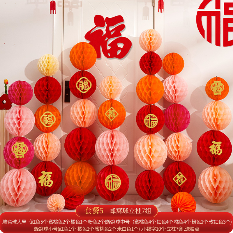 Новый год 2025 года Змея Сотовый шар Колонна Покупка дома Перемещение Открытие Красный торговый центр Украшение Открытие Композиция Первый день рождения