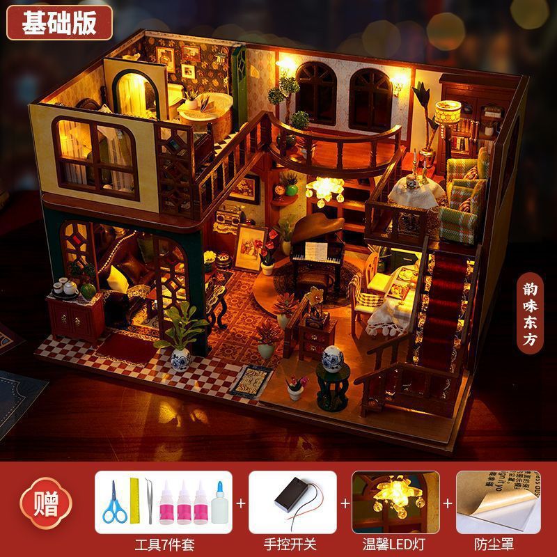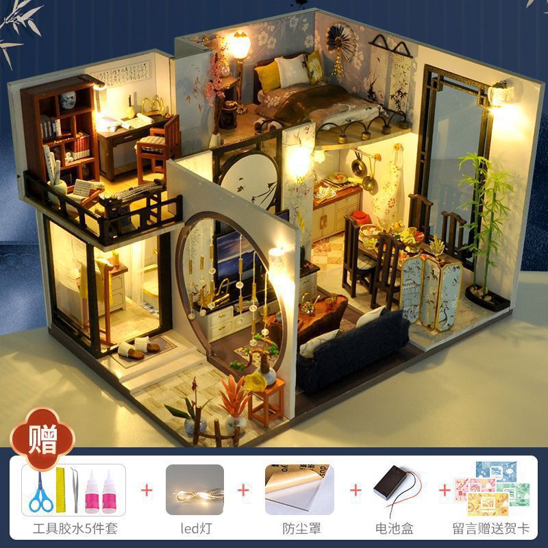 2025 Интернет-знаменитость, хижина ручной работы, древнее здание в китайском стиле, собранная модель дома, детская игрушка, подарок на день рождения для девочек