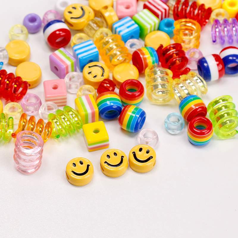 Акриловые пружинные бусины, аксессуары для самостоятельного изготовления, материал для шнурков, свободные бусины, цепочка для мобильного телефона, смайлик из бисера