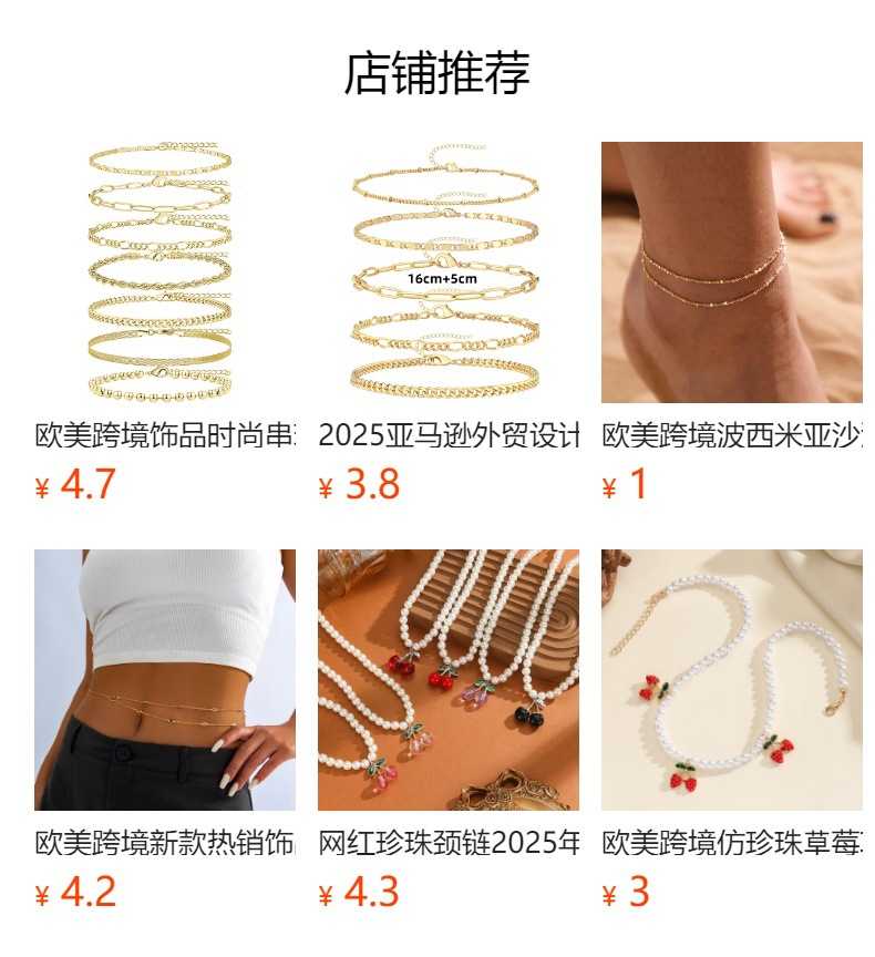 Популярные европейские и американские аксессуары для ног, новый трансграничный набор из 6 женских браслетов, персонализированные плоские многослойные браслеты-цепочки в виде змеи для пляжного костюма