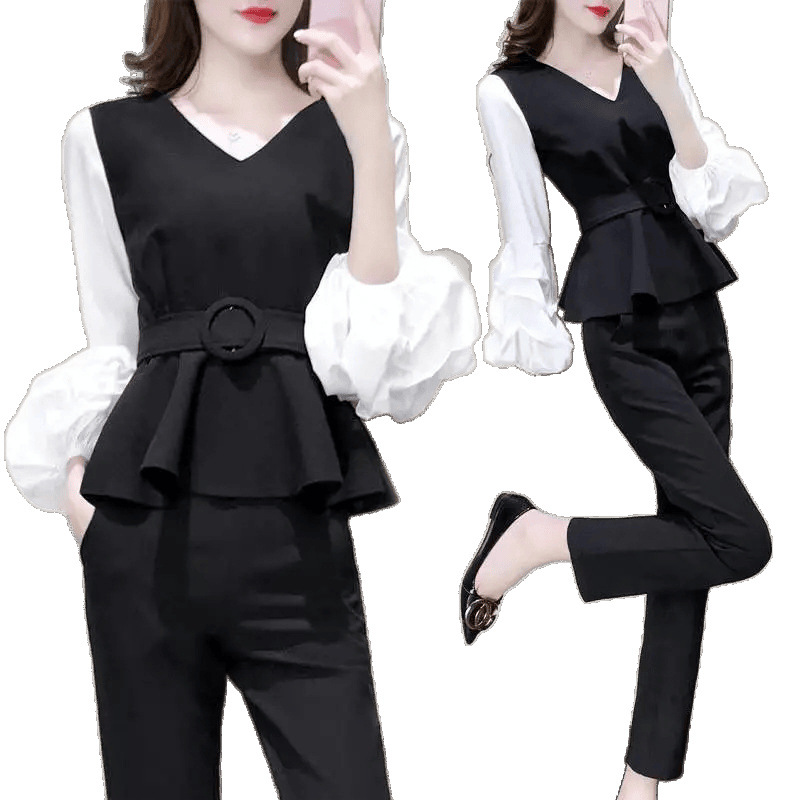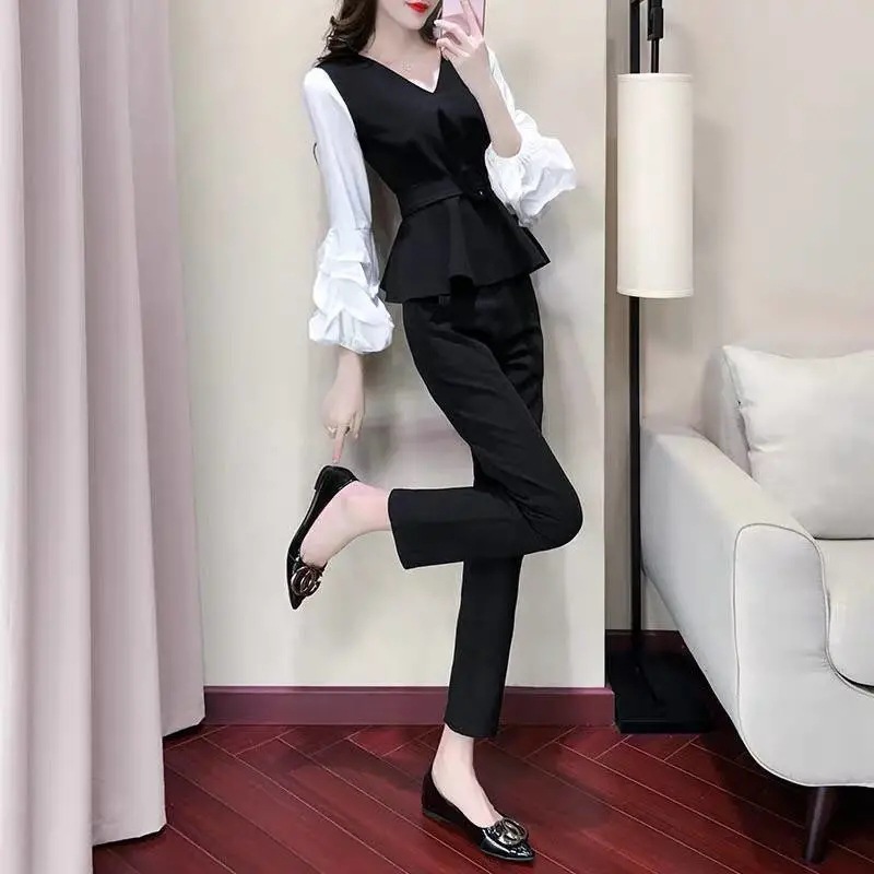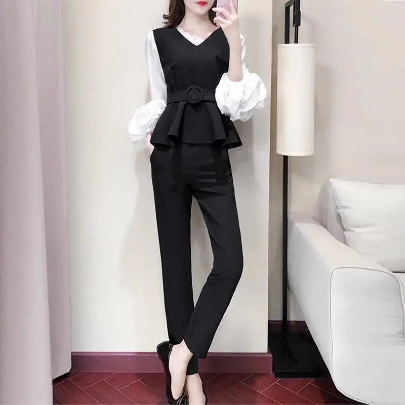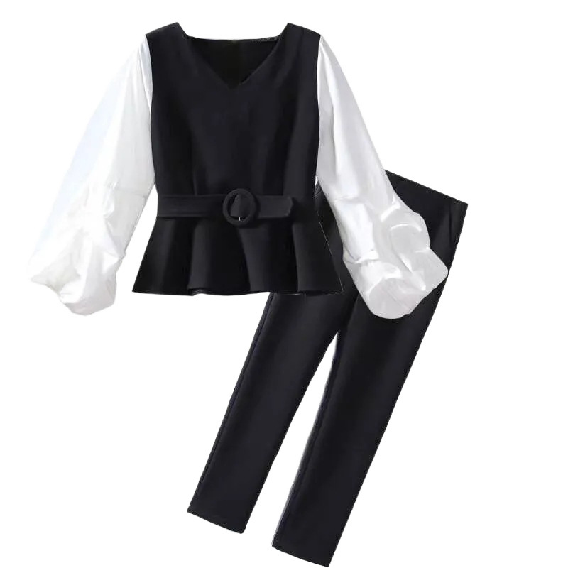 Европейская и американская трансграничная женская одежда больших размеров, костюм для женщин с толстым мм животом, женская мода, новый профессиональный весенне-осенний комплект из двух предметов с пышными рукавами