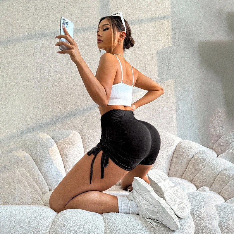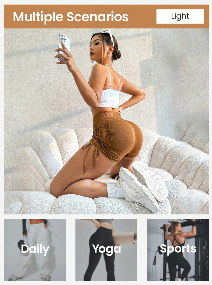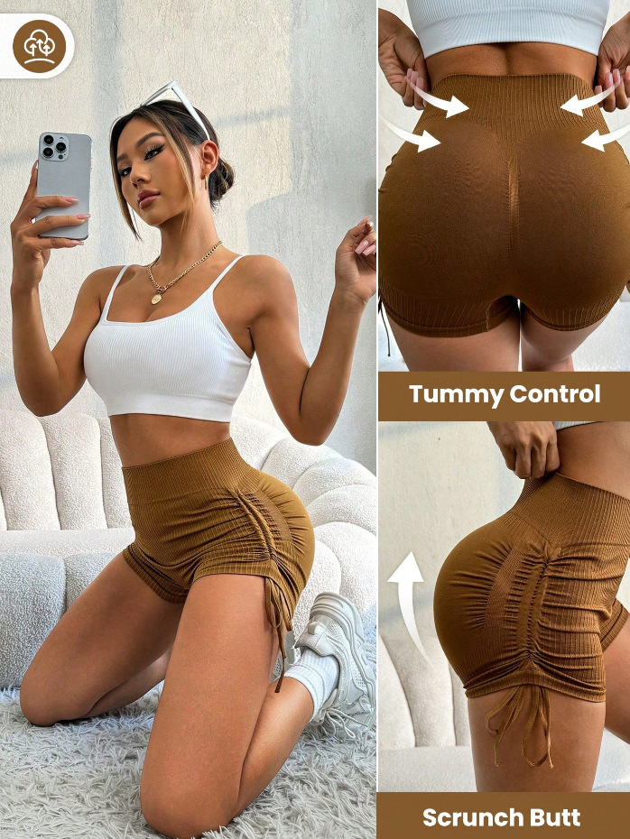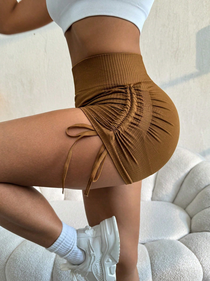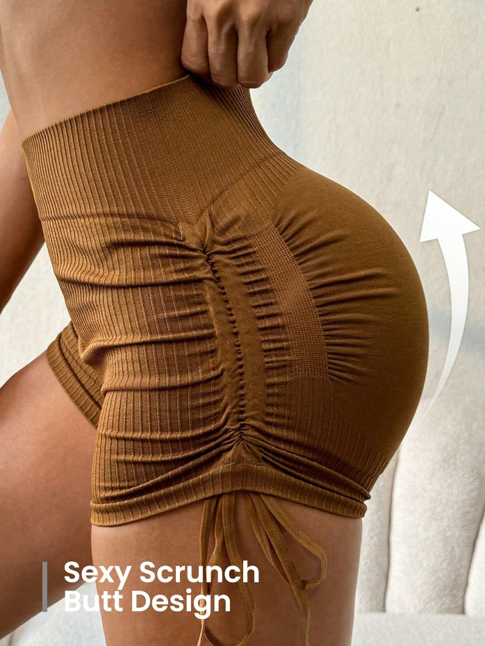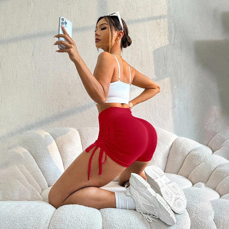 Женские спортивные шорты, шорты для фитнеса, обтягивающие шорты с высокой талией персикового цвета для езды на велосипеде, бега, быстросохнущие штаны для йоги на шнурке, летние