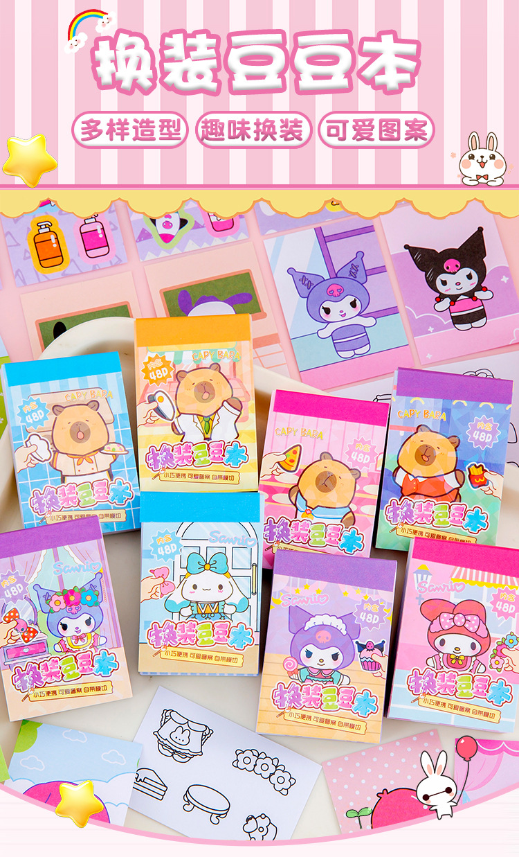 Книга Kapibala Dress Up Doudou (CH163); Книга Sanrio Dress Up Doudou (CH163); Книга-фасоль Sanrio с лазерным нарядом (CYD-D); Книга-фасоль для лазерного наряда Капибалы (CYD-D); Книга La Bu Laser Dress Up Doudou (CYD-D)