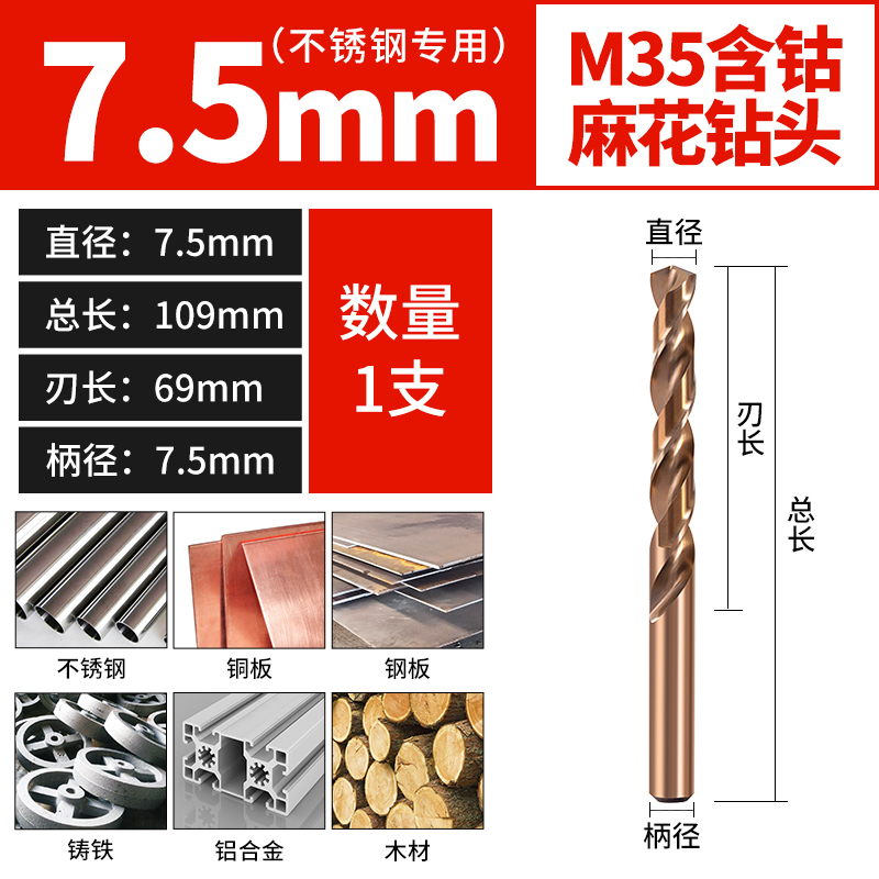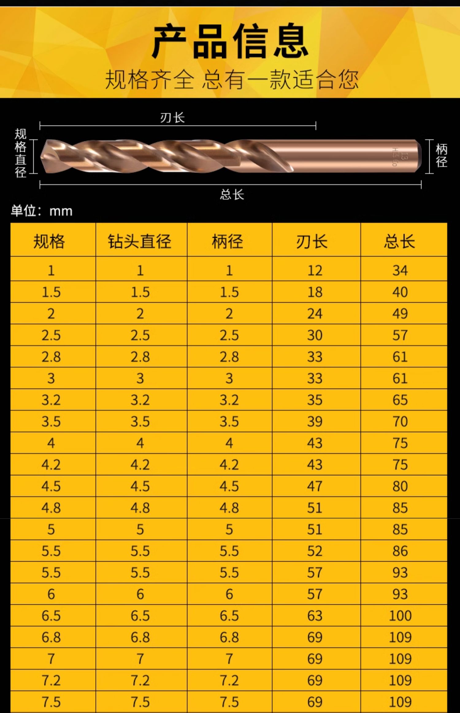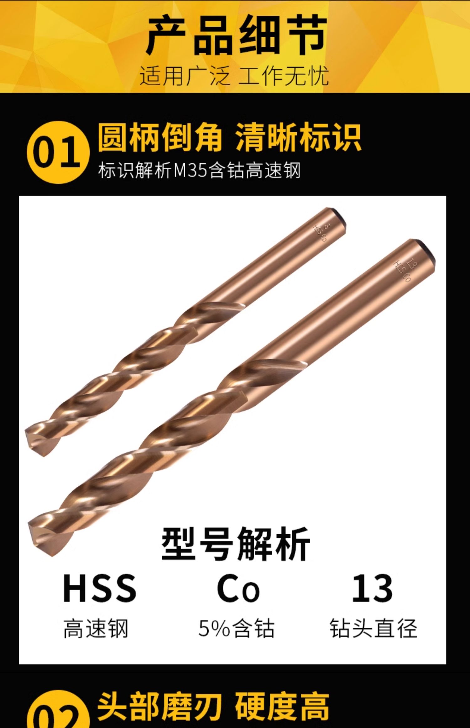 Спиральное сверло Ruiqi с содержанием кобальта, высокопрочное сверло для стали и нержавеющей стали, специальное спиральное сверло с прямой ручкой, ротор для пробивки небольших отверстий