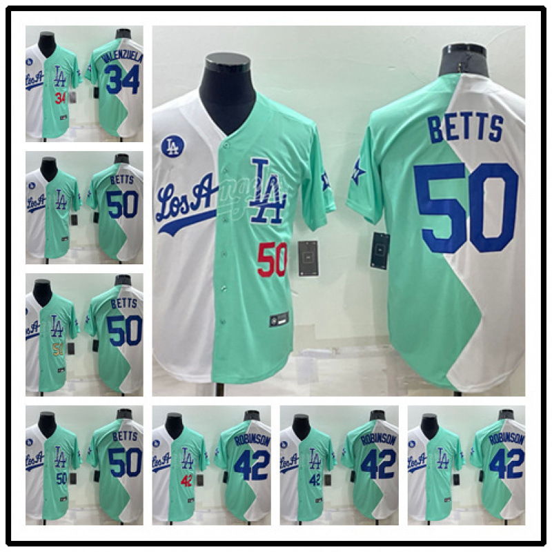 Новый 2022 против полумужской бейсбольный костюм Доджерс 22 #34 #50 #10 # Elite Edition Вышивка для фанатов