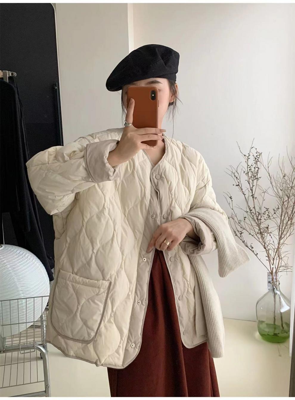 Официальное изображение 2023 года, большой размер, теплая и толстая куртка из белого утиного пуха в этническом стиле с круглым вырезом, 95