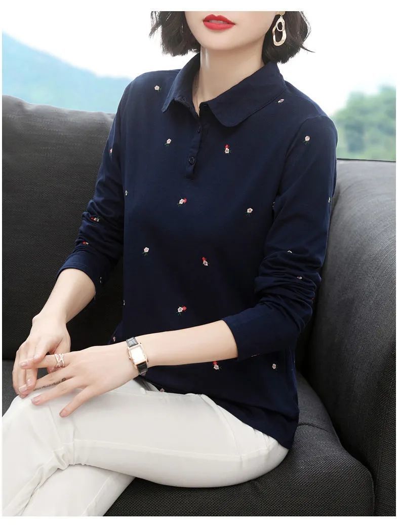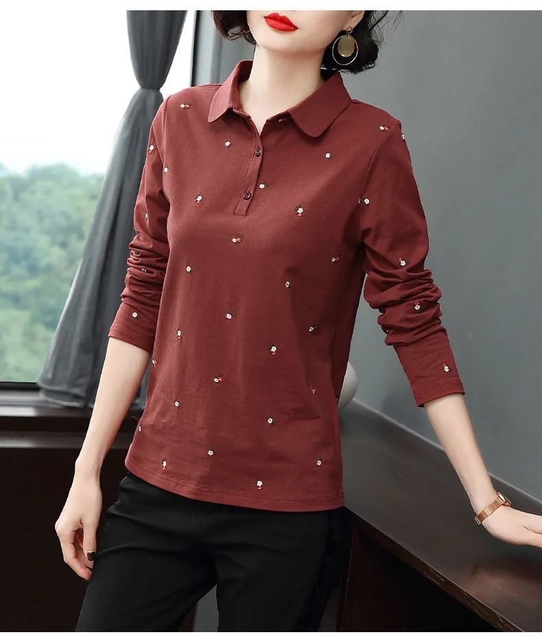 Женская рубашка с длинными рукавами, свободная одежда для мам больших размеров, футболка нового стиля весны 2032 года, топ для похудения, нижняя рубашка