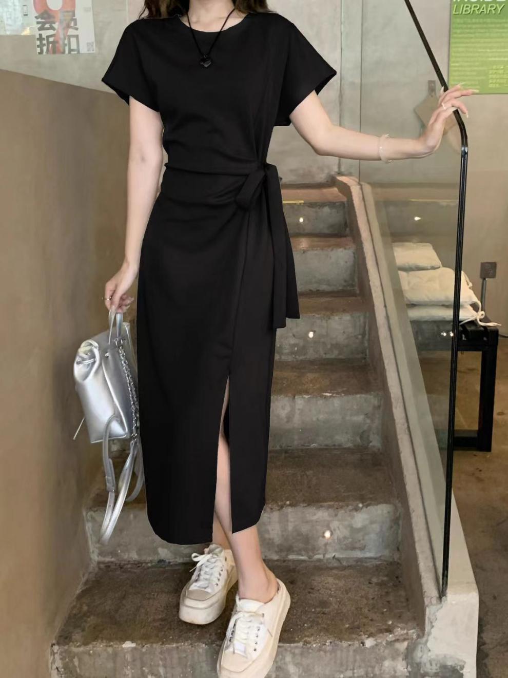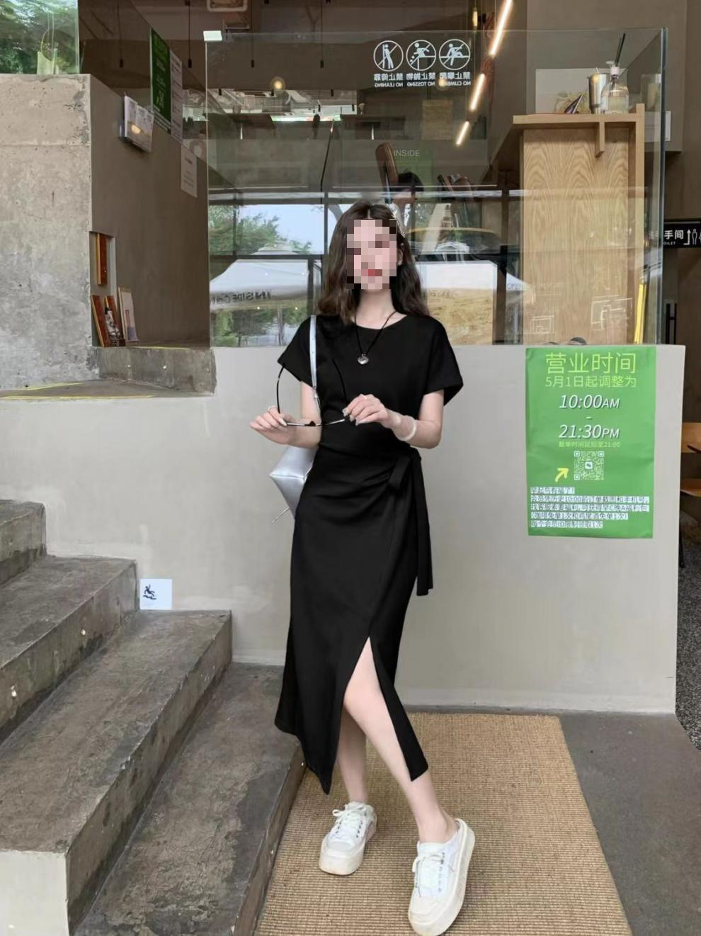 Черное платье в стиле Хепберн для женщин, лето 2025, новое французское платье для перерыва на чай, миниатюрное длинное платье