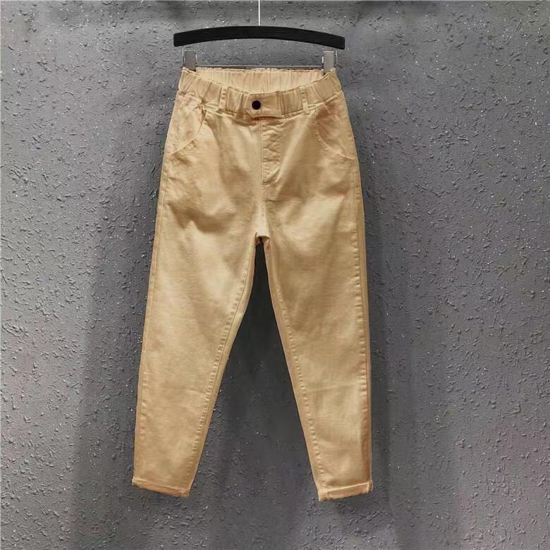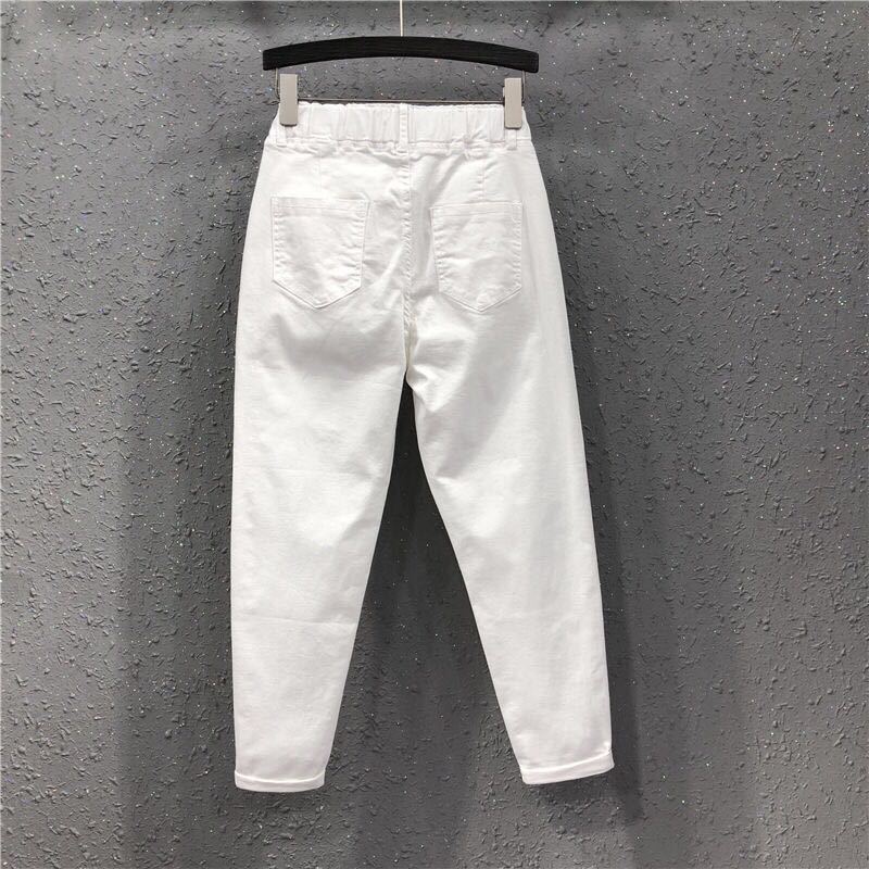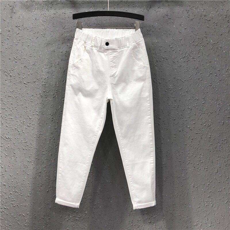 Белые укороченные джинсы для женщин, повседневные брюки на весну и осень, корейский стиль, свободный крой, утягивающие, эластичная талия, узкие брюки, шаровары.