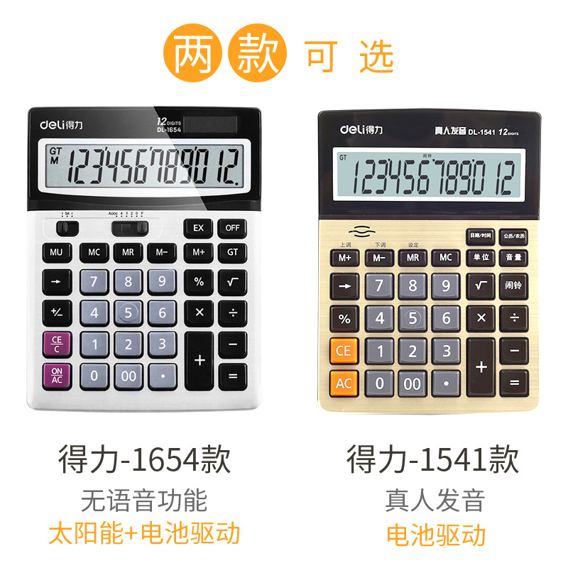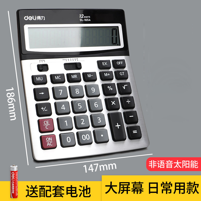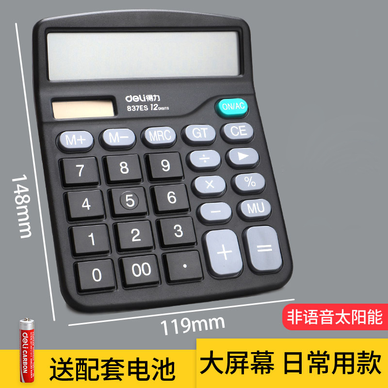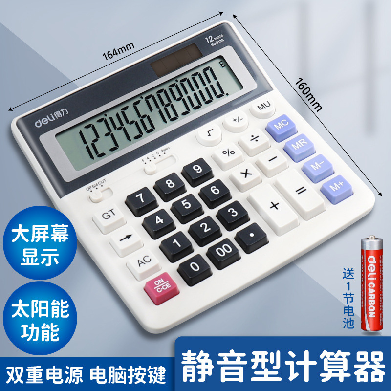 Настольный калькулятор Deli для студентов, 12-значный большой экран для бухгалтерского учета, специальный компьютер с двойным питанием, канцелярские товары, офисная оптовая продажа.