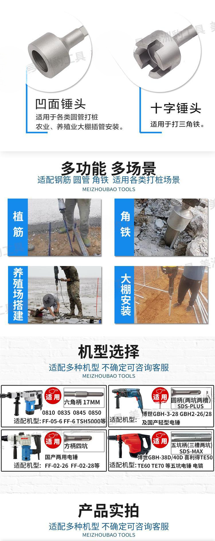 Многофункциональная головка молотка для свай, электрический молоток, электрическое долото, молоток для свай с анкерной втулкой для арматуры с пазами