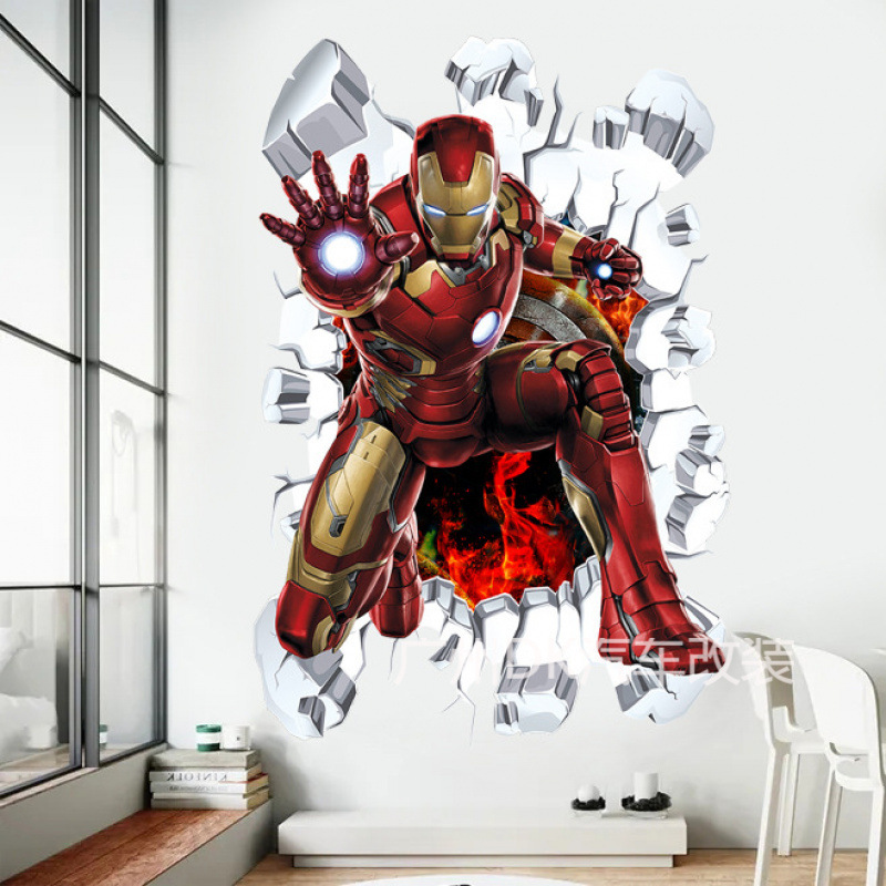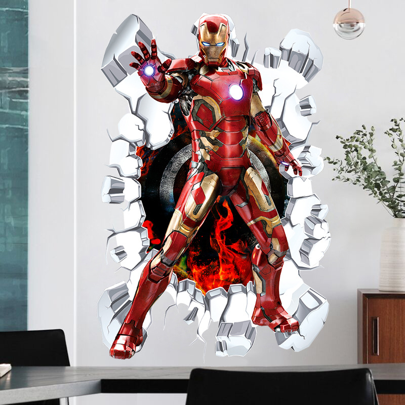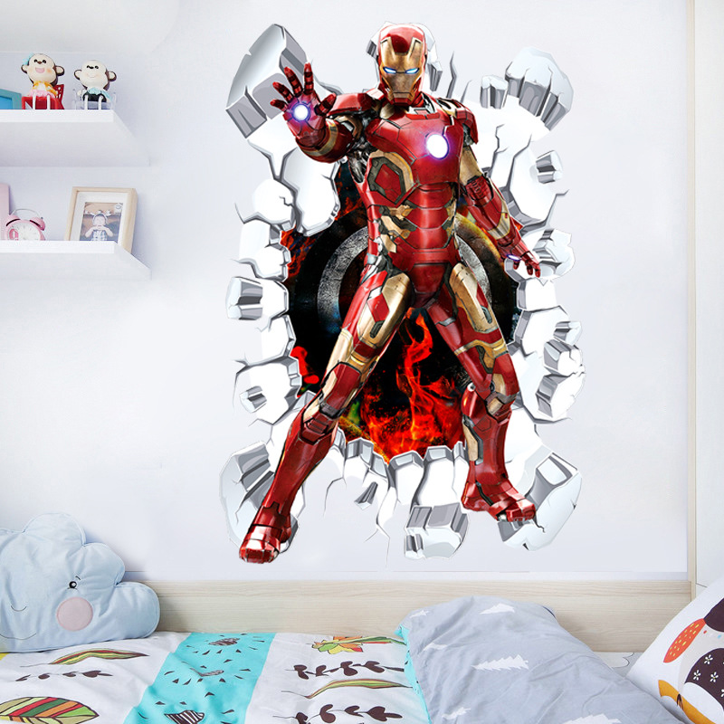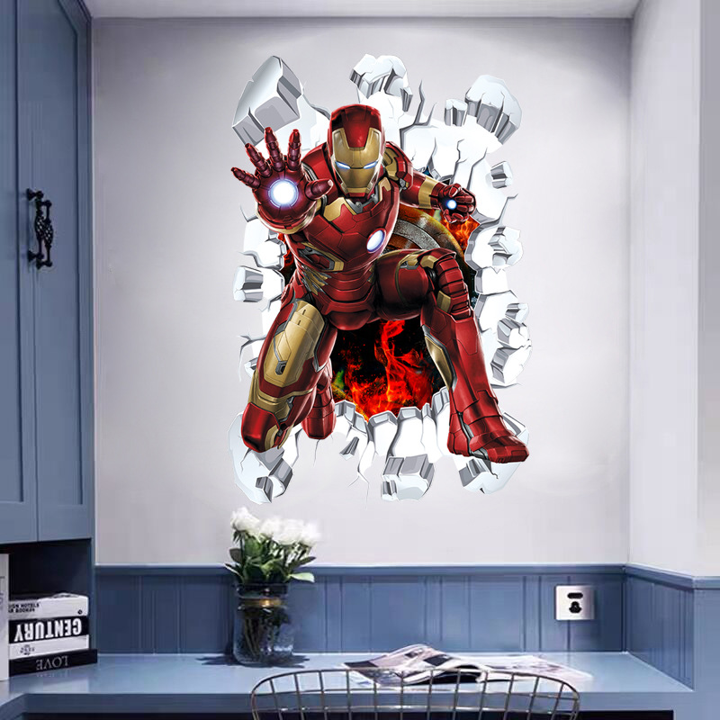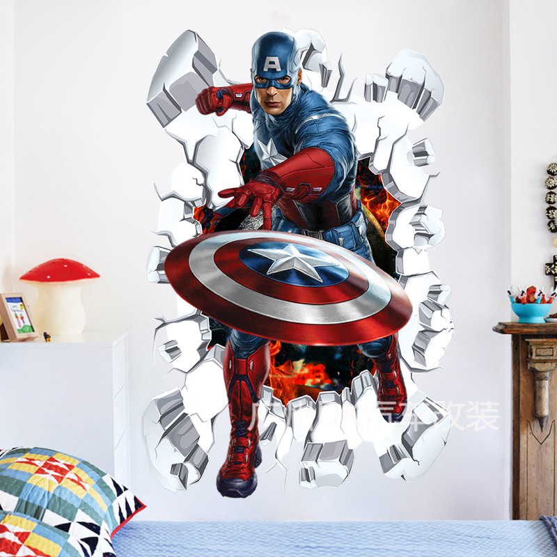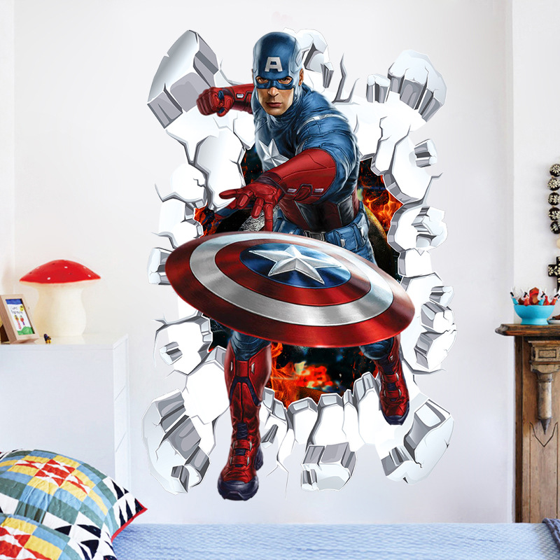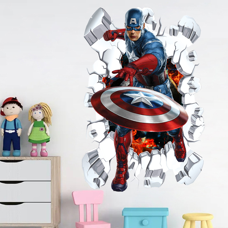 Marvel настенная наклейка Мстители 3d стерео обои для мальчиков детская спальня стикер стены украшения Капитан Америка самоклеящийся