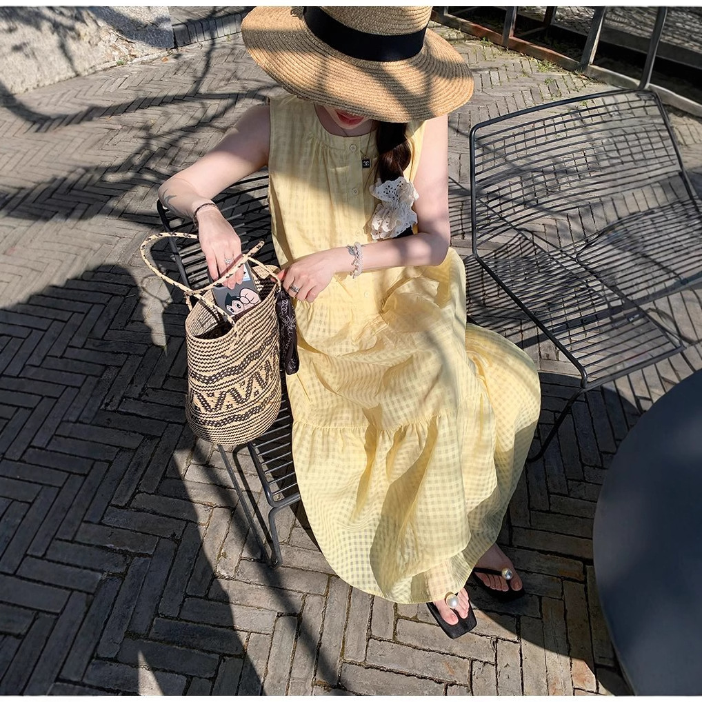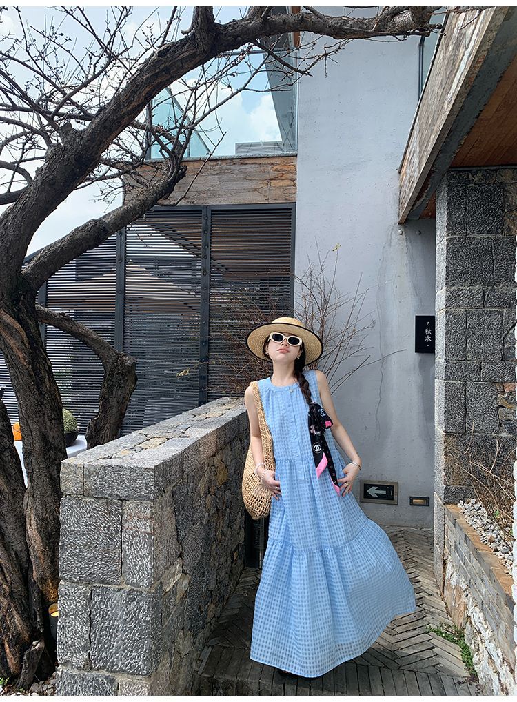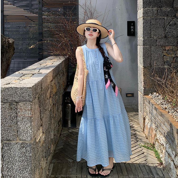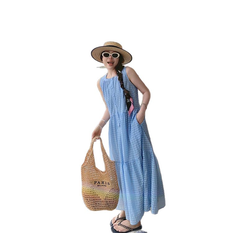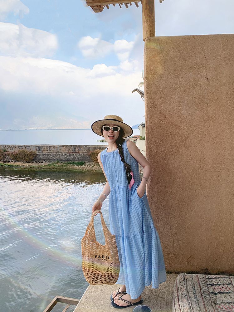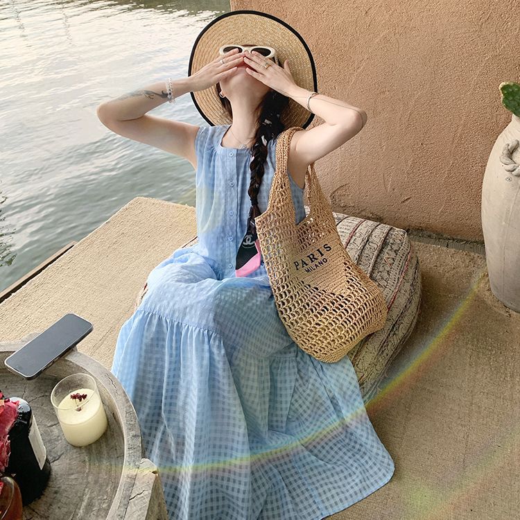 Высококачественное французское милое платье-жилет без рукавов для женщин, летняя новая свободная длинная юбка трапециевидной формы в морском курортном стиле
