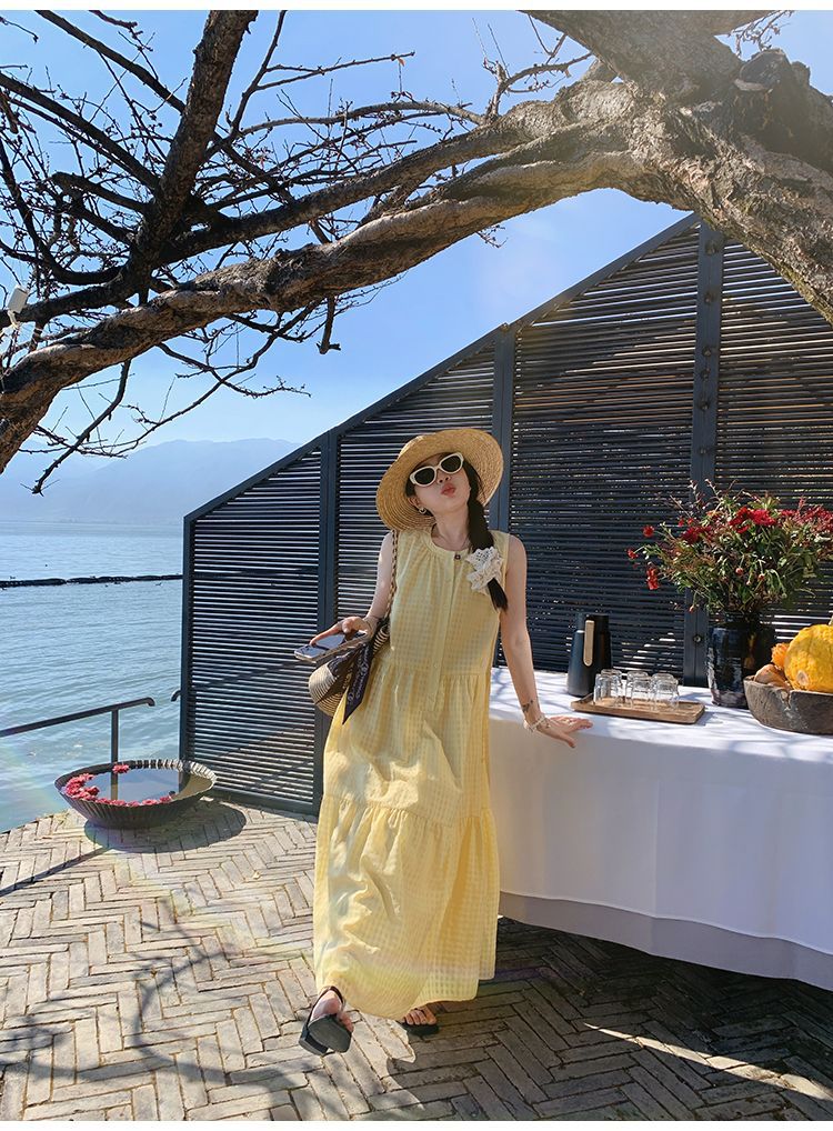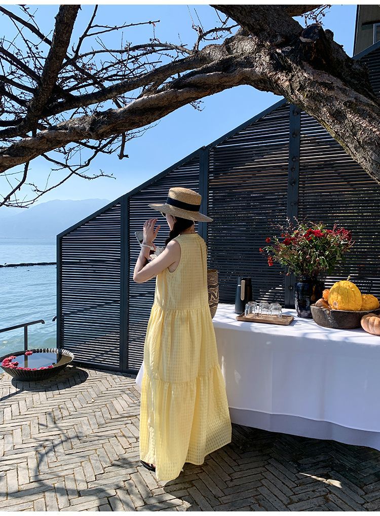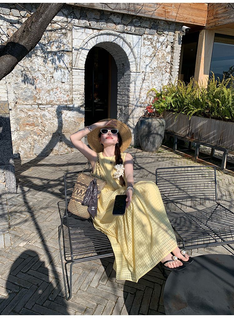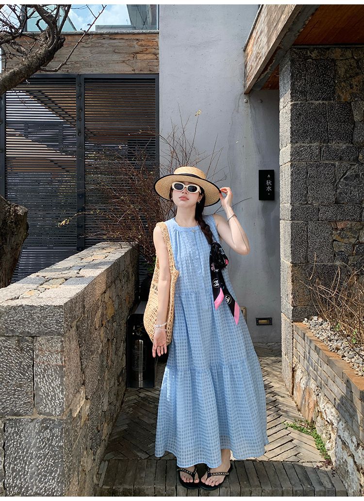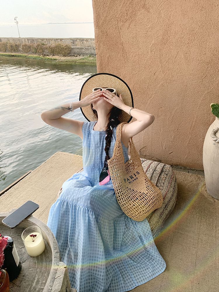 Высококачественное французское милое платье-жилет без рукавов для женщин, летняя новая свободная длинная юбка трапециевидной формы в морском курортном стиле