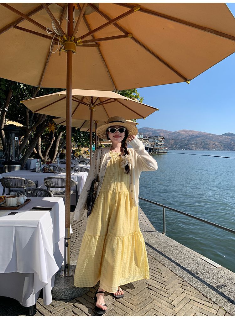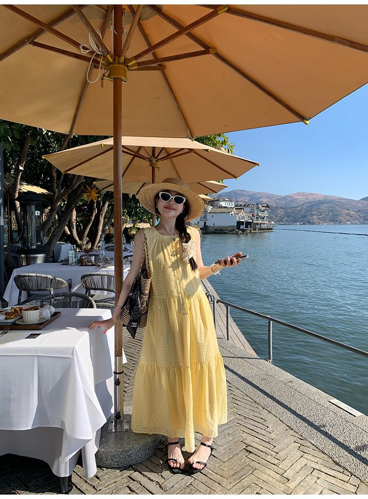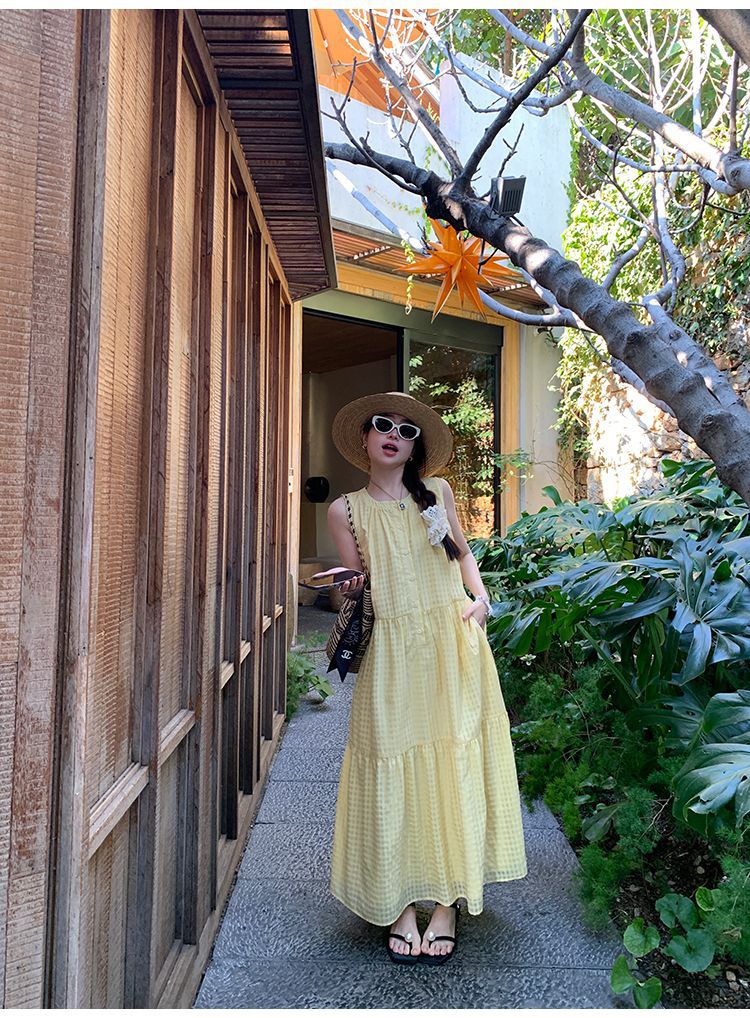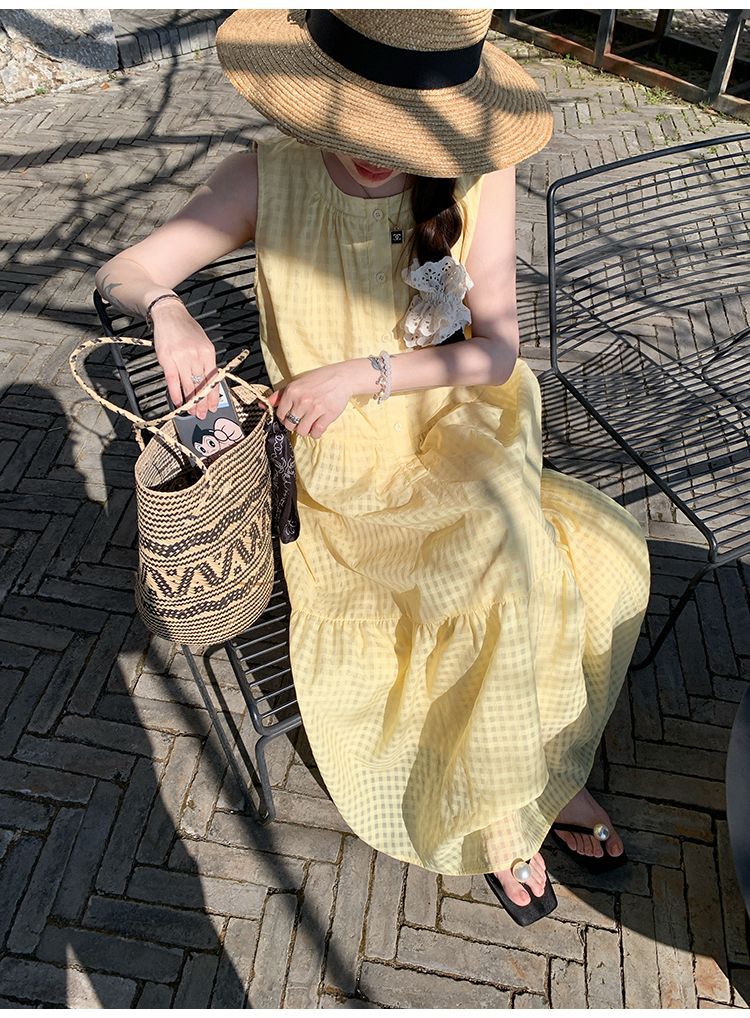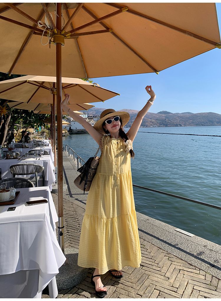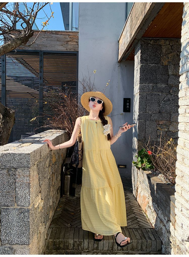 Высококачественное французское милое платье-жилет без рукавов для женщин, летняя новая свободная длинная юбка трапециевидной формы в морском курортном стиле