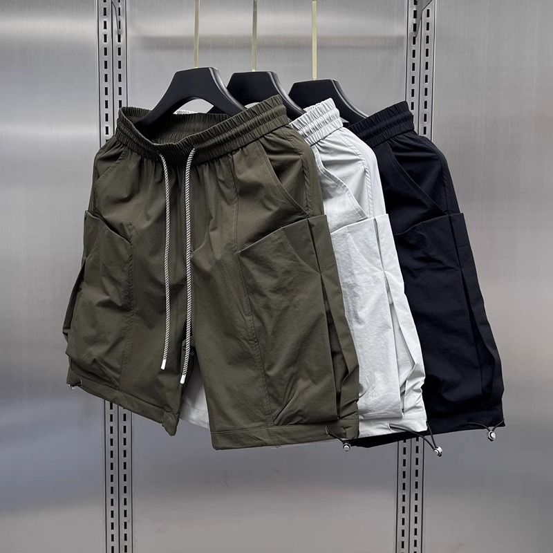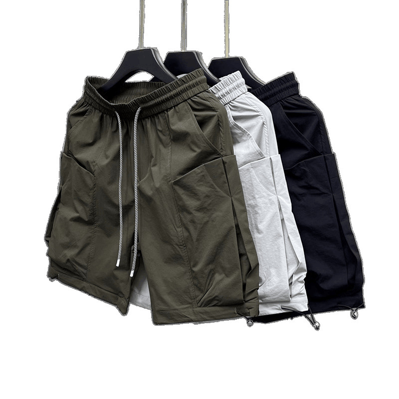 Новые летние мужские тонкие шорты-карго, повседневные универсальные дышащие американские прямые ретро-шорты до колена в простом стиле