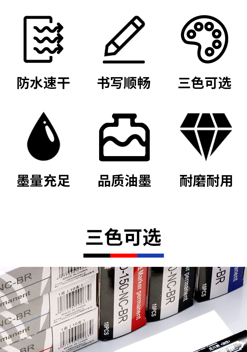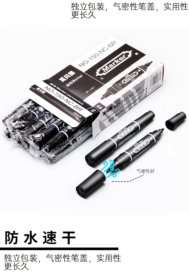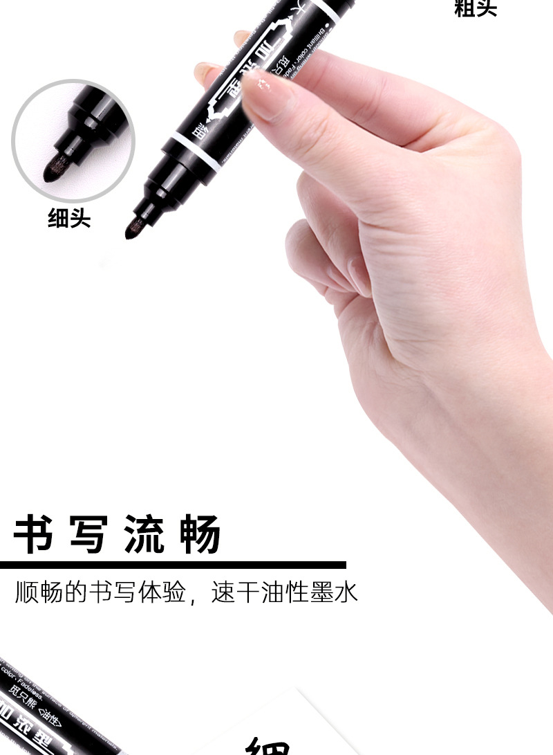 Прямые продажи с фабрики, водонепроницаемый маркер, который не может быть стерт и выцветать, ручка с крючком, двусторонняя ручка с толстой головкой, ручка с большой головкой, экспресс-черная ручка на масляной основе