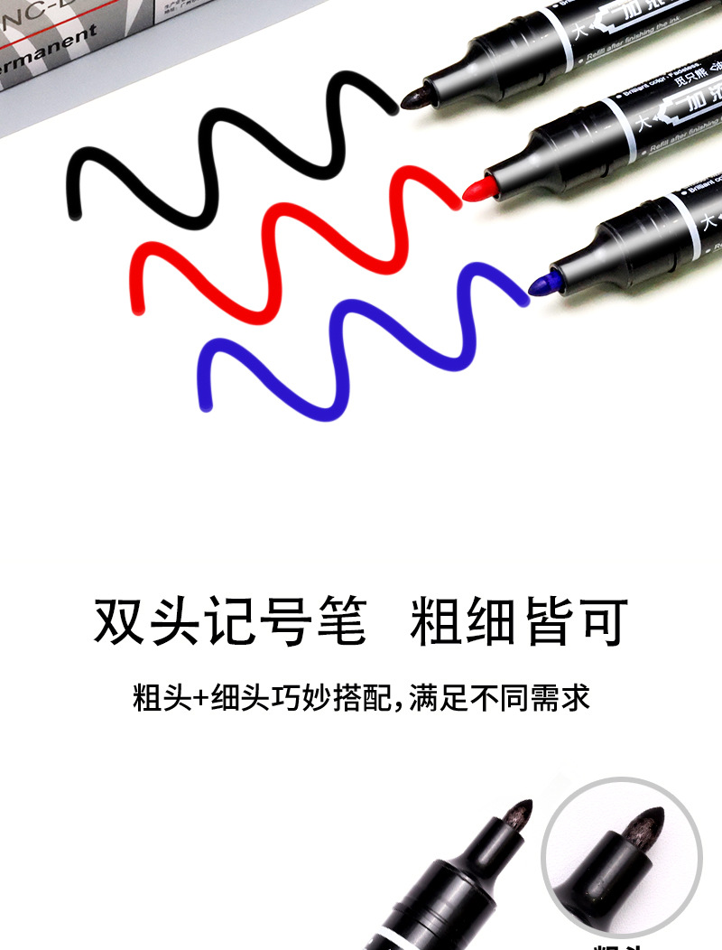 [Толстый и тонкий двойного назначения] Двусторонний маркер черного цвета; [Толстый и тонкий двойного назначения] Двусторонний маркер-синий; [Толстый и тонкий двойного назначения] Двусторонний маркер-красный