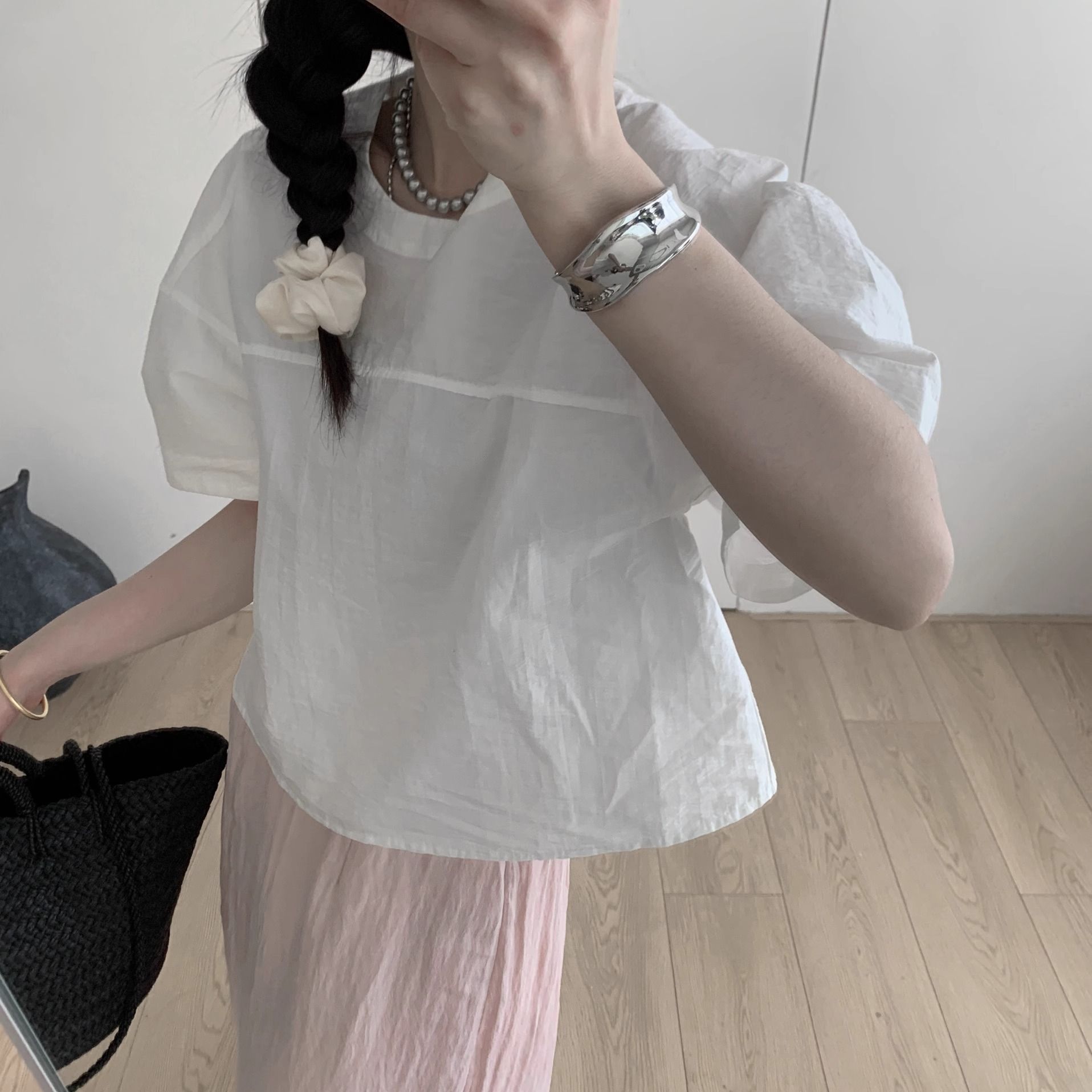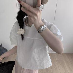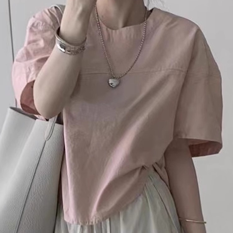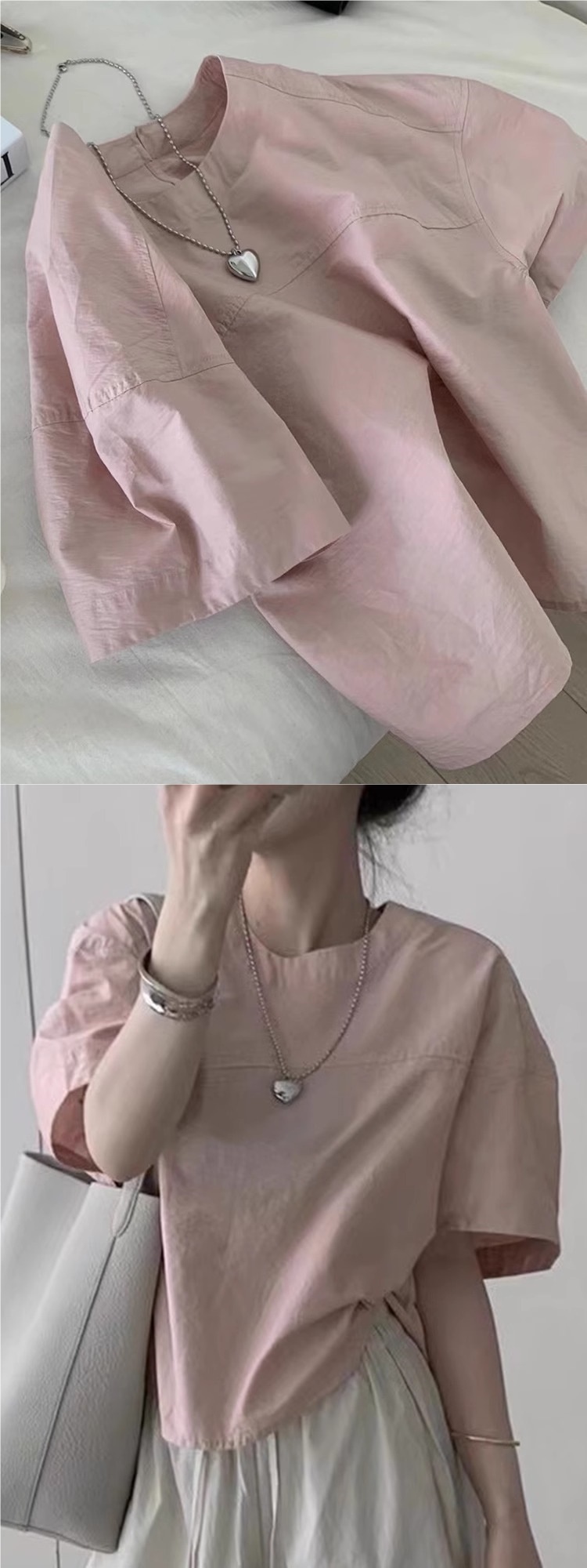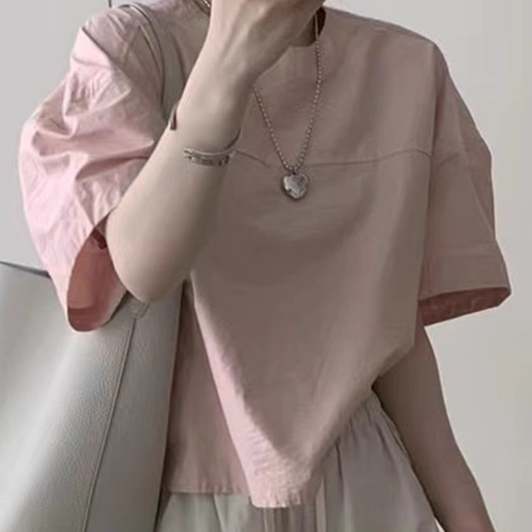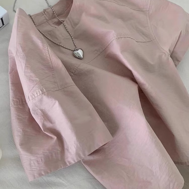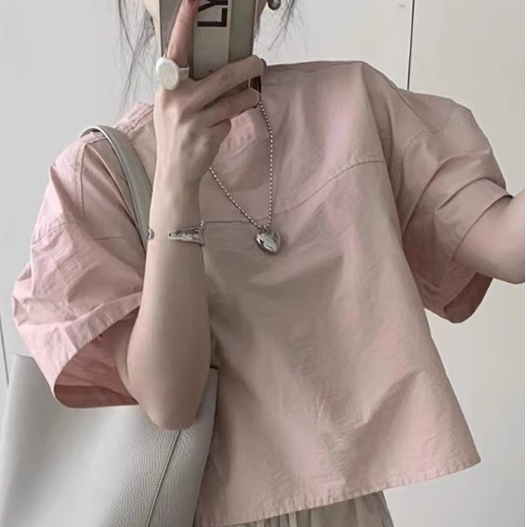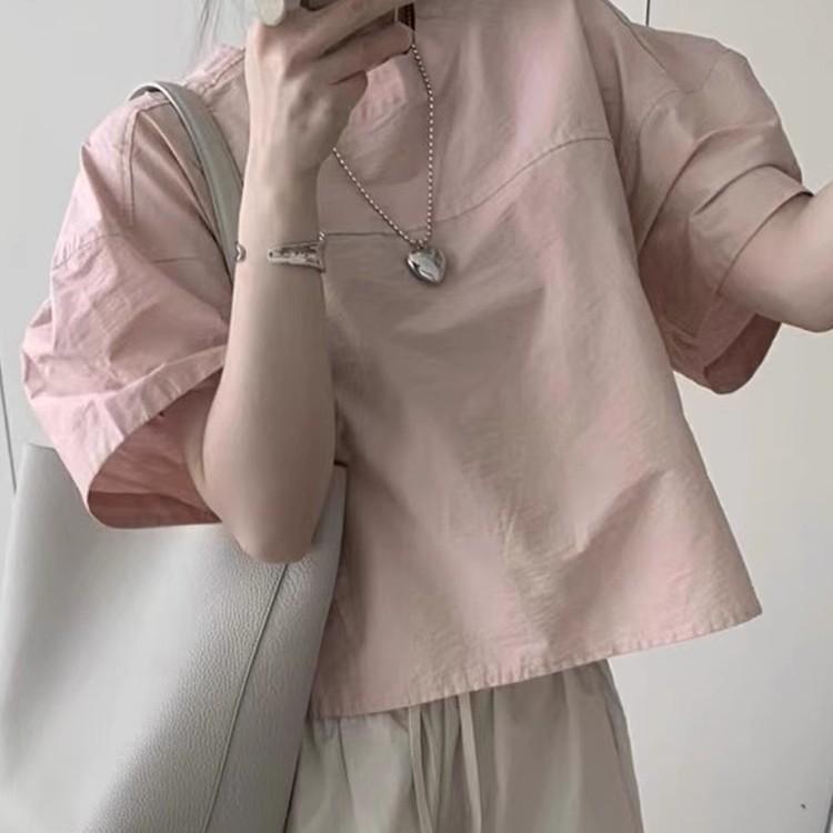 Нежная и шикарная розовая рубашка из чистого хлопка в корейском стиле для женщин, свободная короткая рубашка, летний топ с короткими рукавами