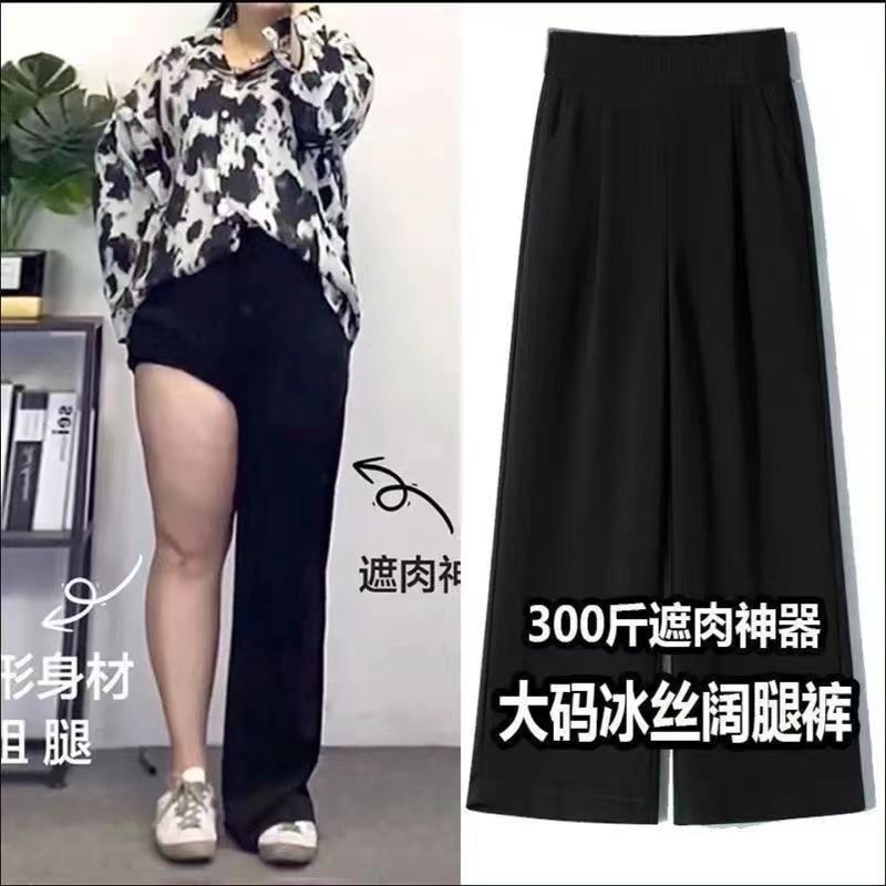 Женские обычные широкие брюки больших размеров на лето, тонкие и свободные брюки больших размеров с высокой талией для мам.