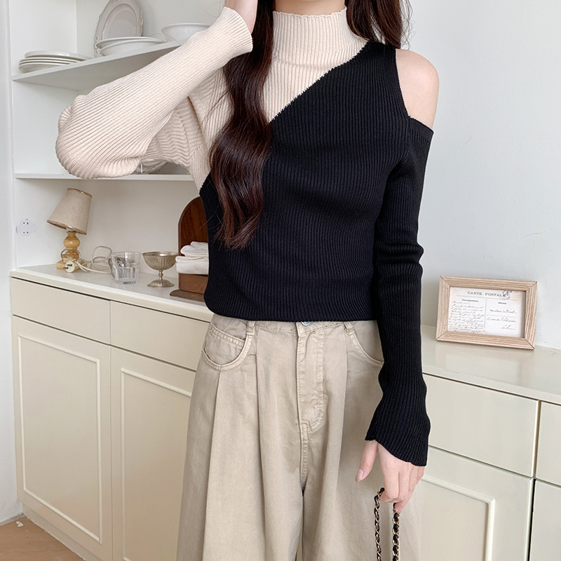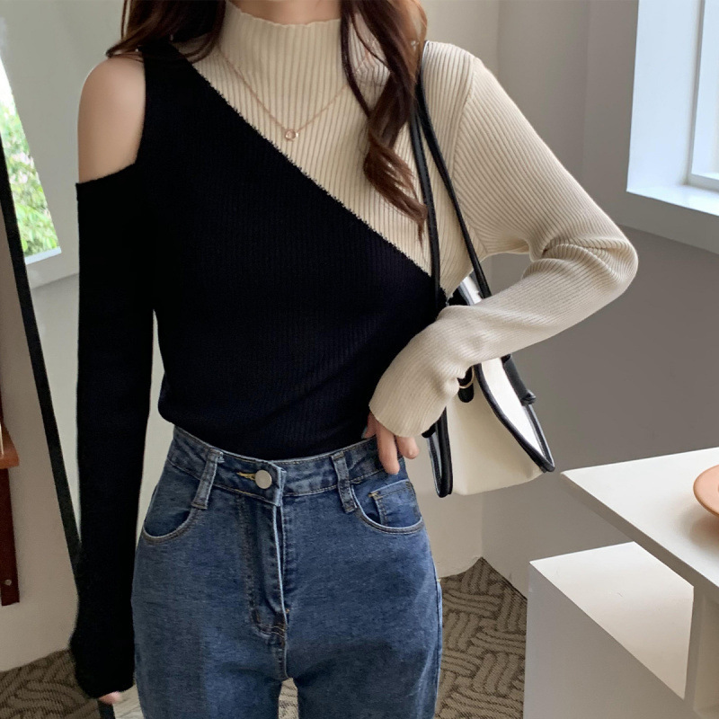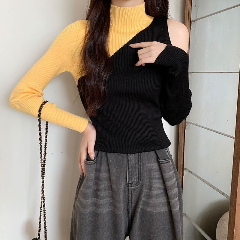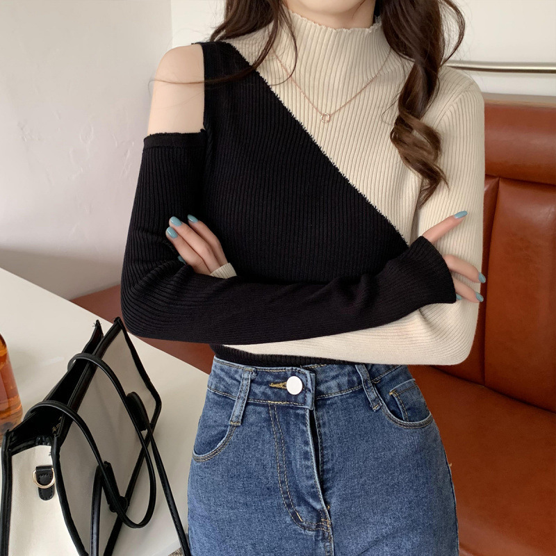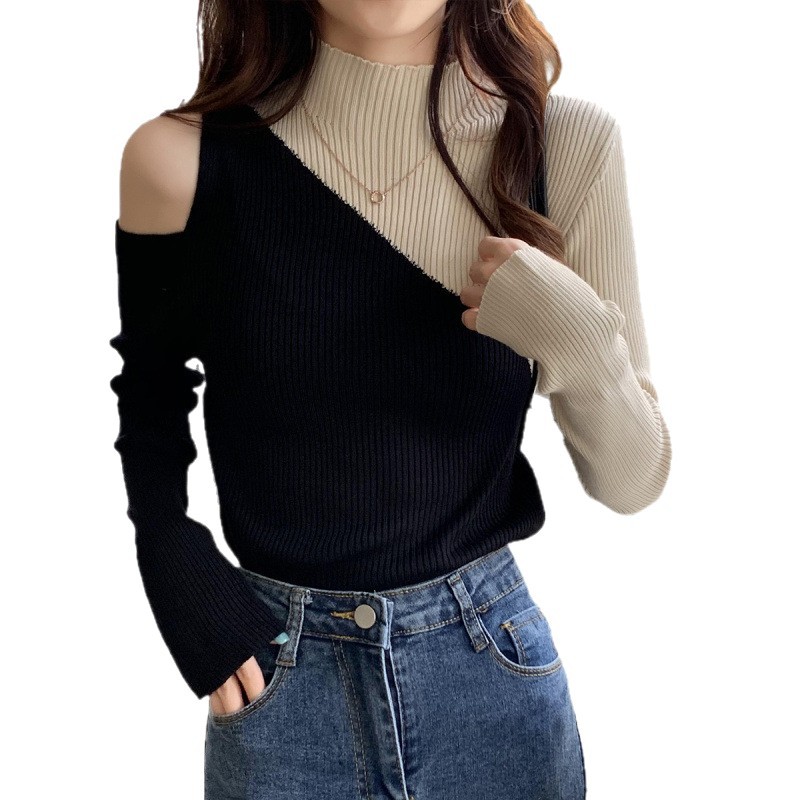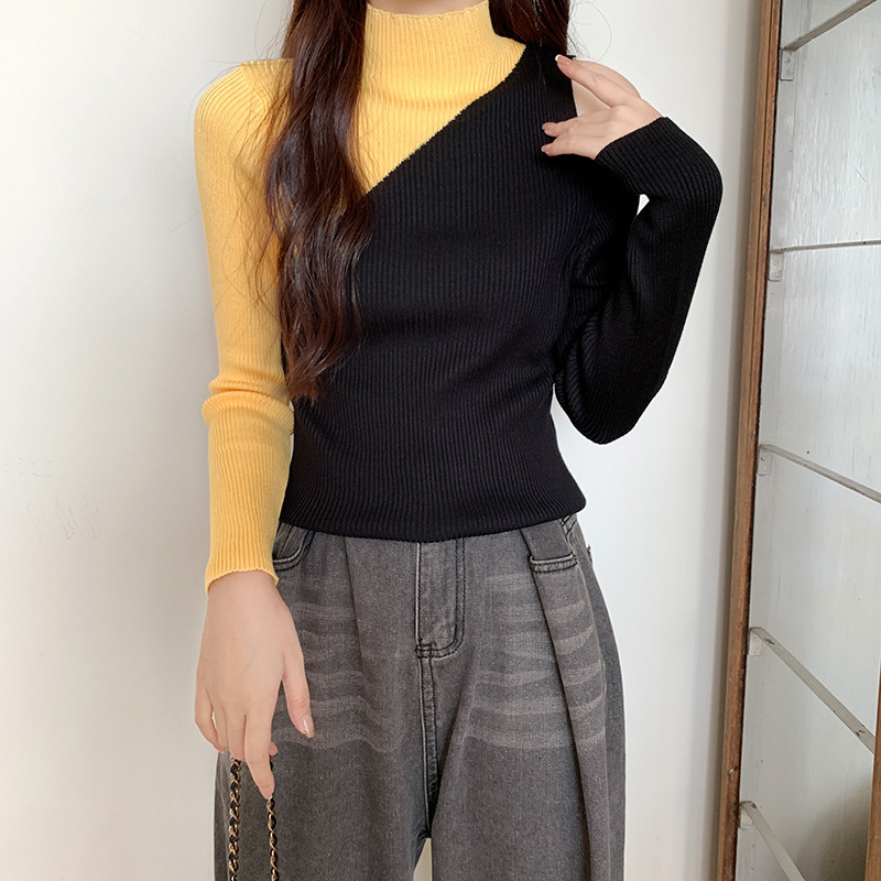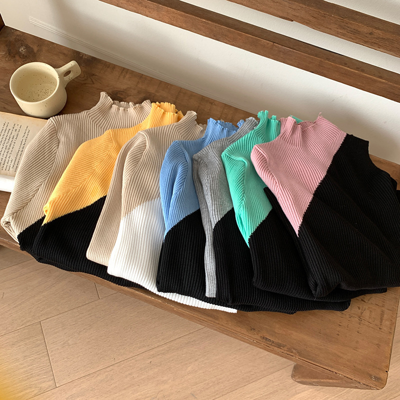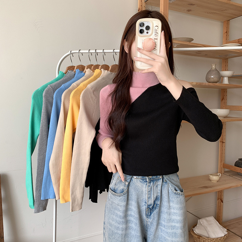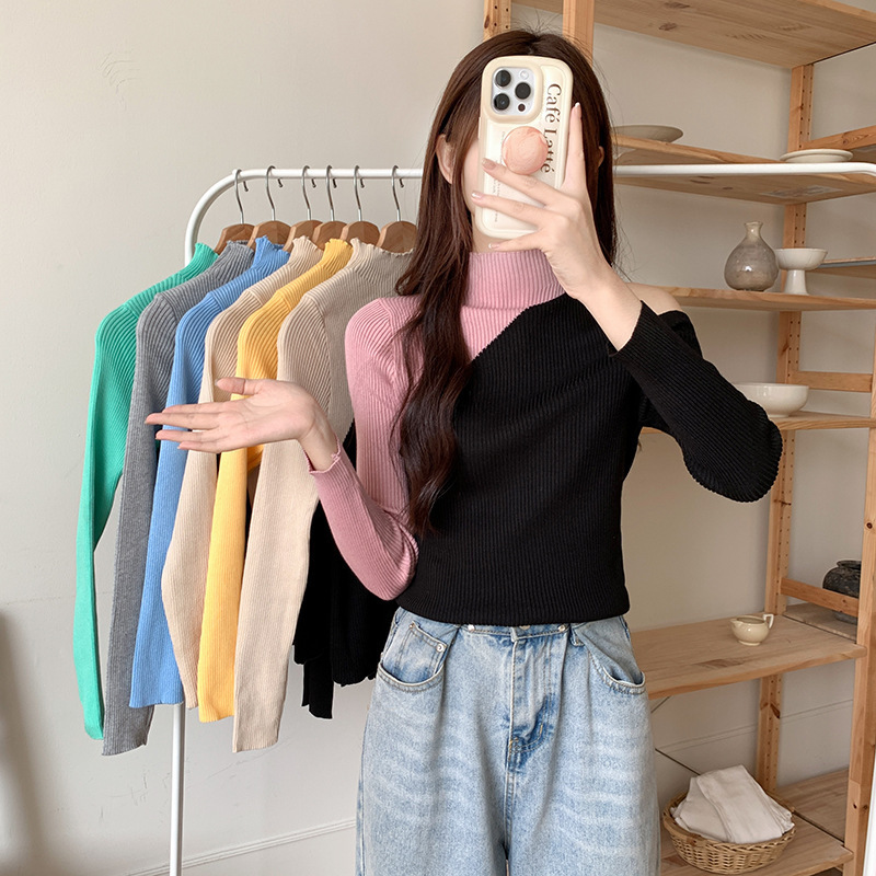 Корейский и японский экспортный облегающий стильный топ с полувысоким воротником для женщин, осень и зима 2025, новый корейский модный свободный вязаный свитер для женщин