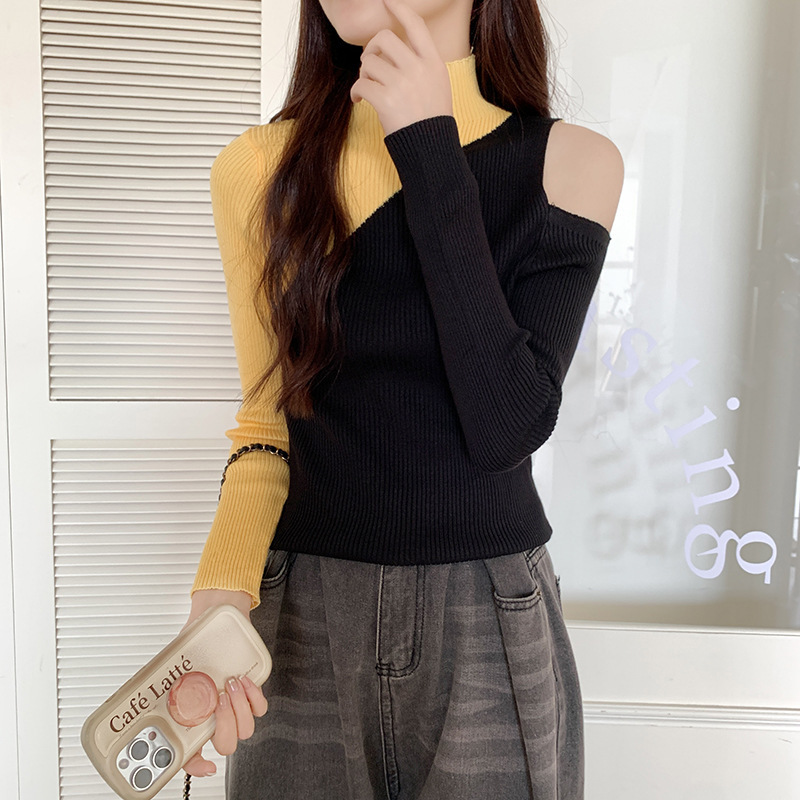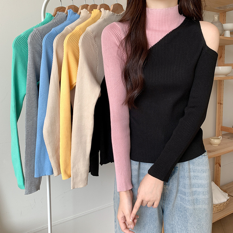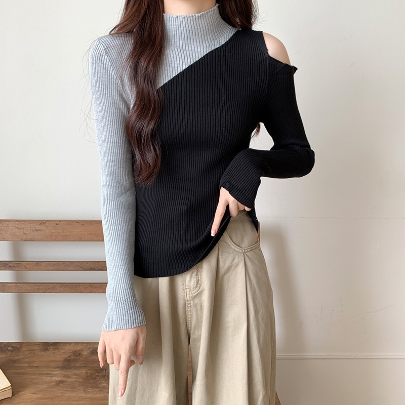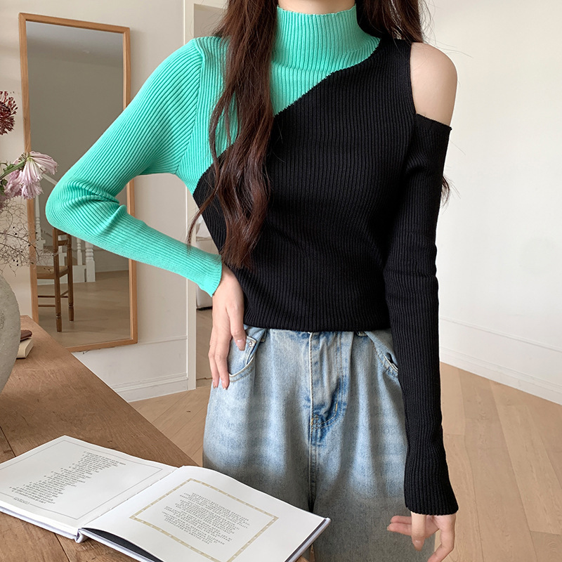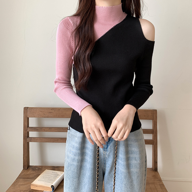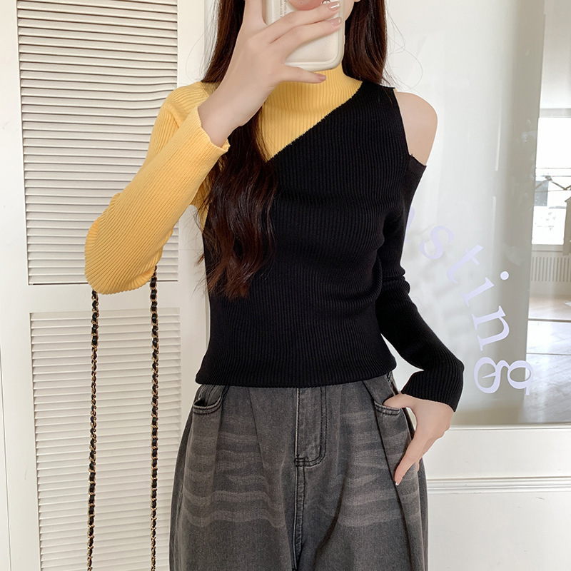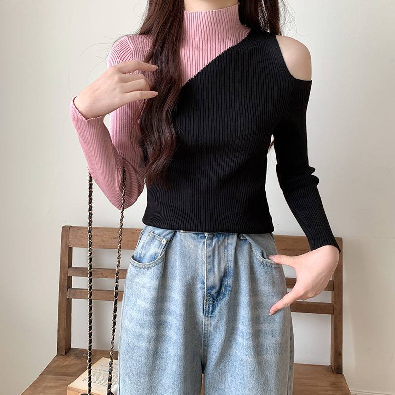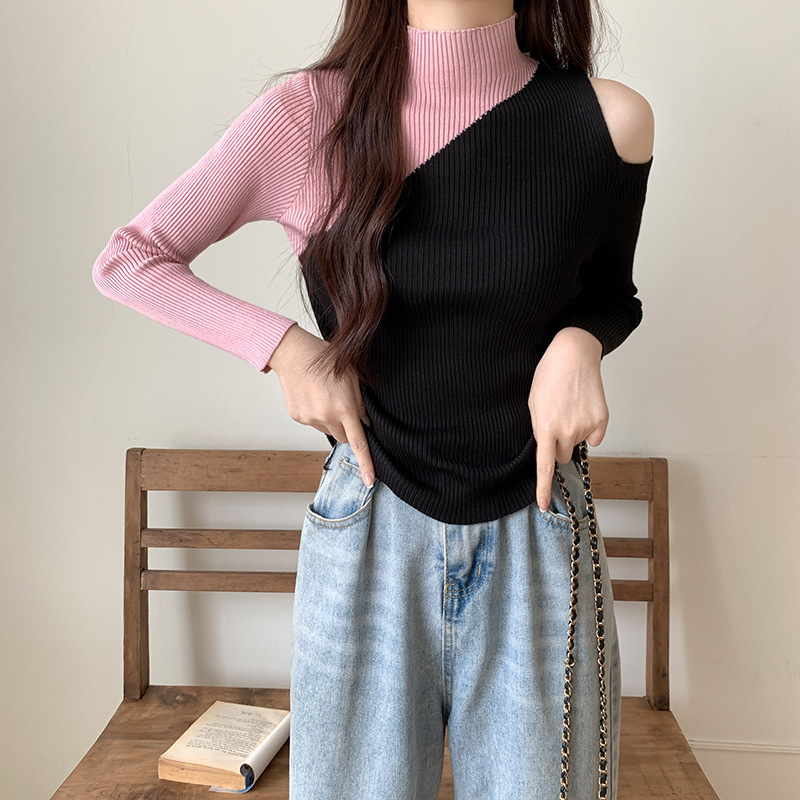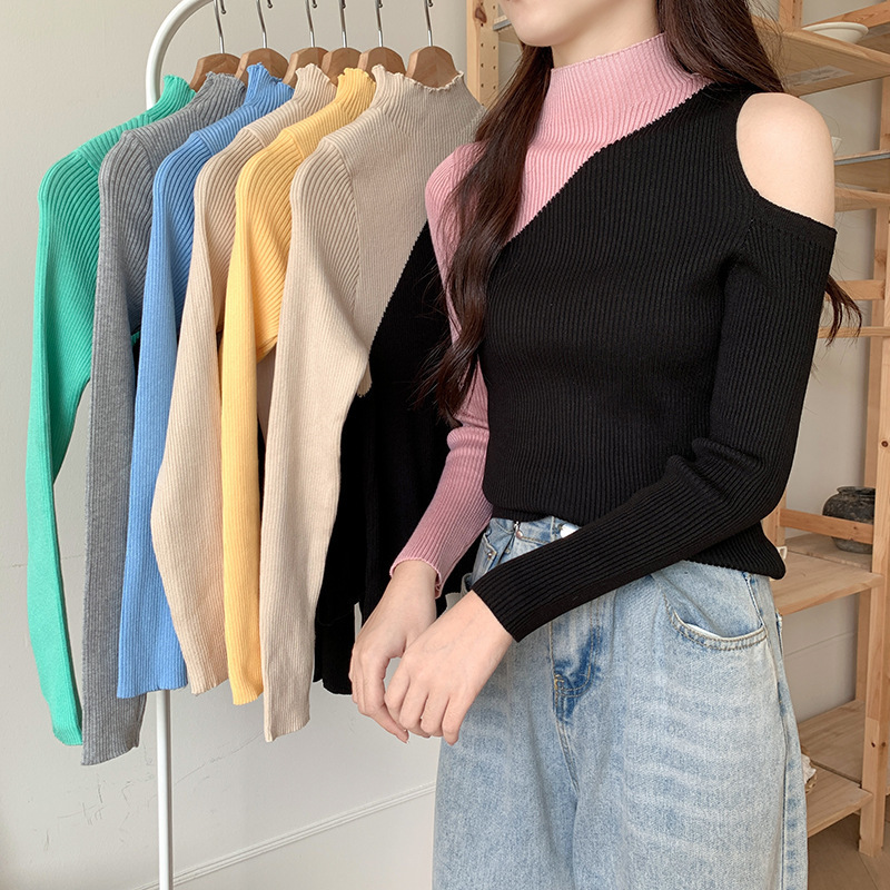 Корейский и японский экспортный облегающий стильный топ с полувысоким воротником для женщин, осень и зима 2025, новый корейский модный свободный вязаный свитер для женщин