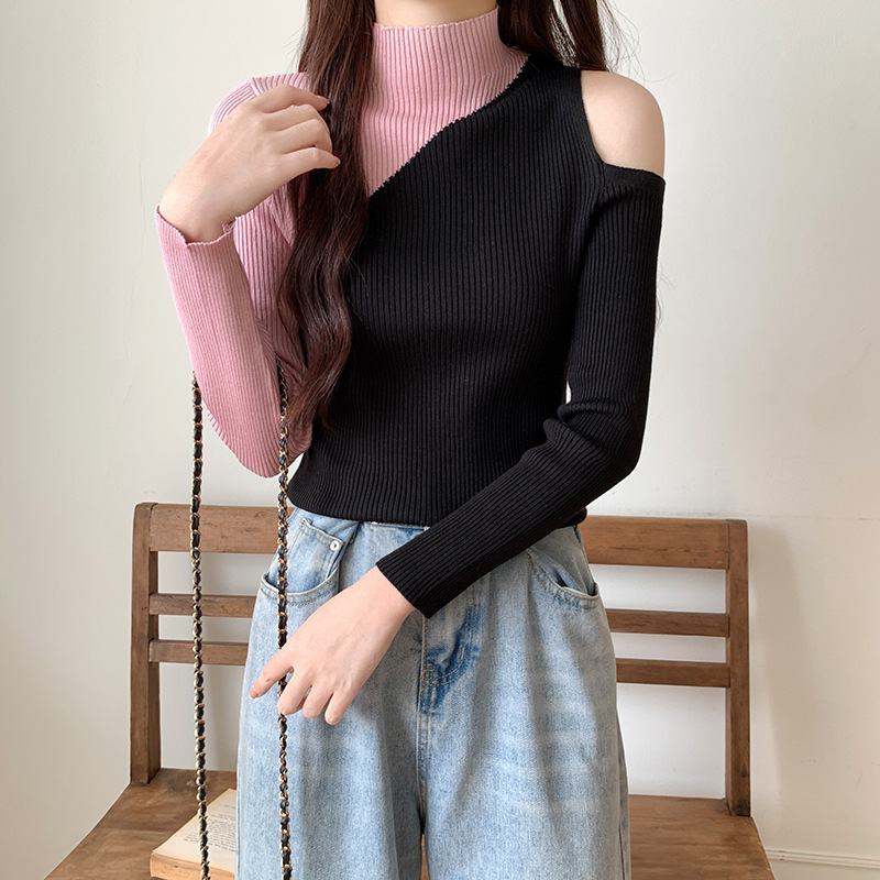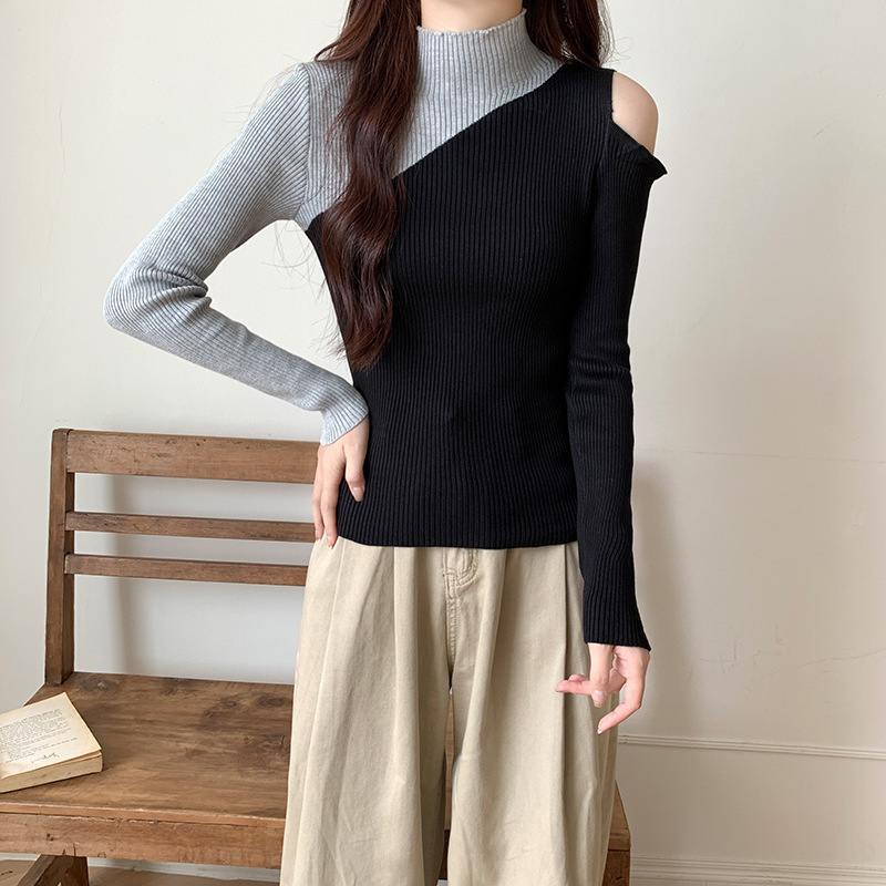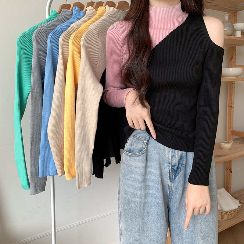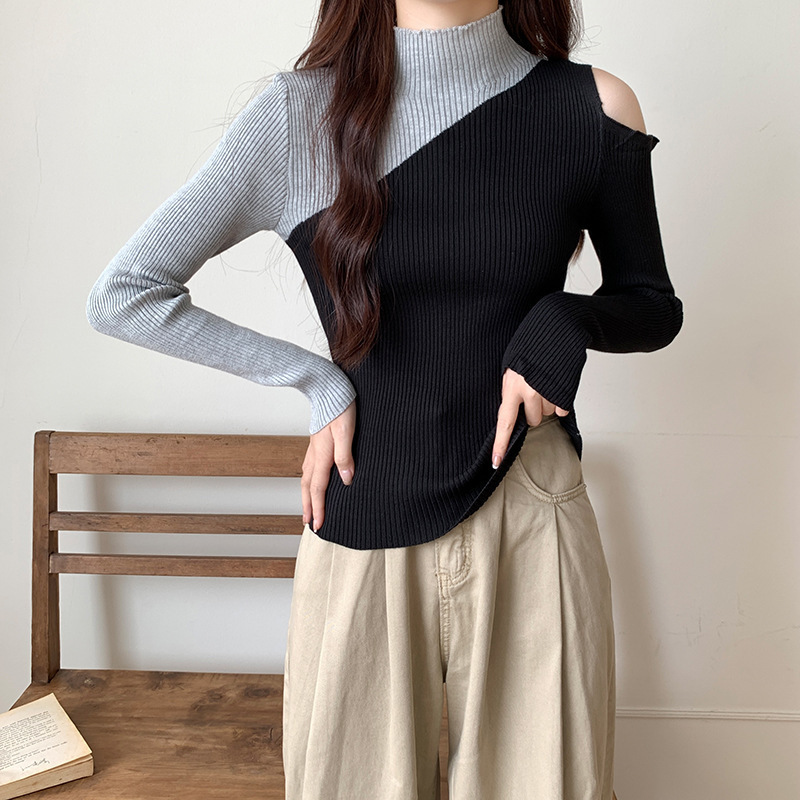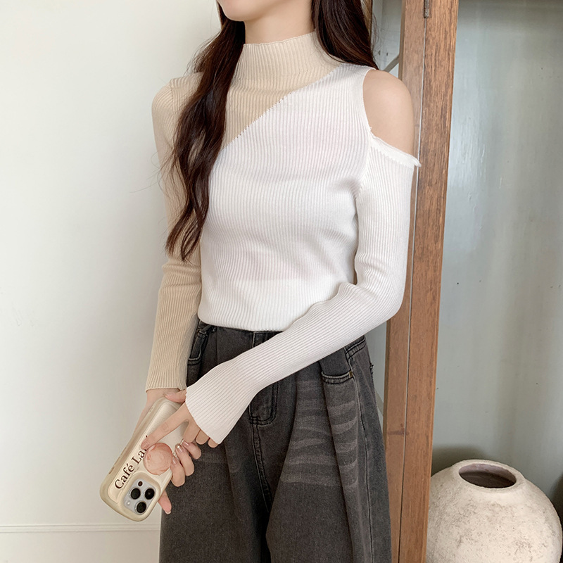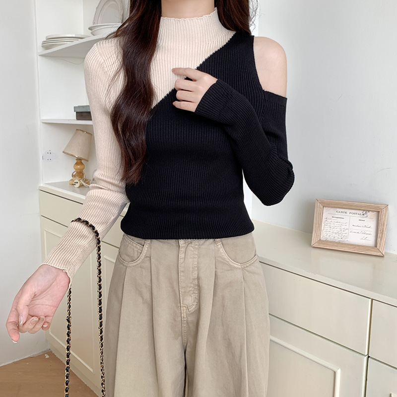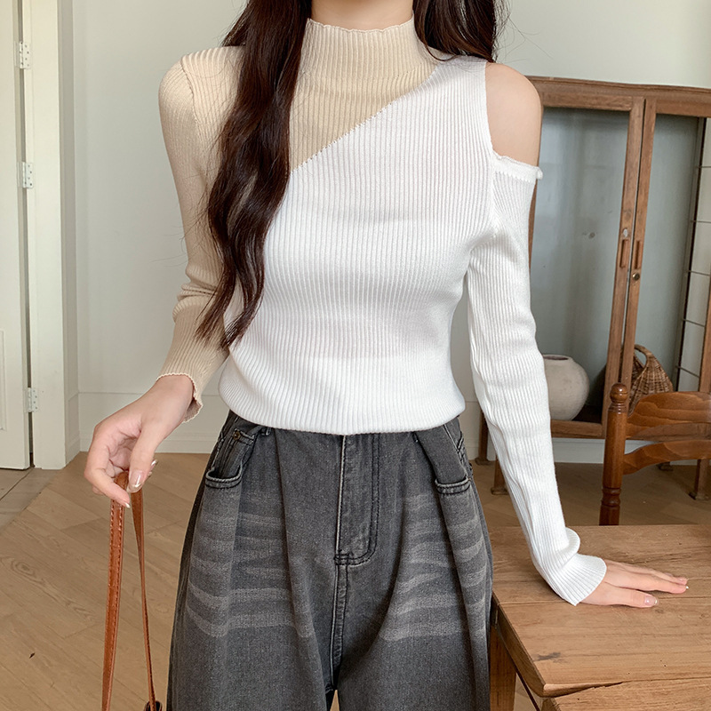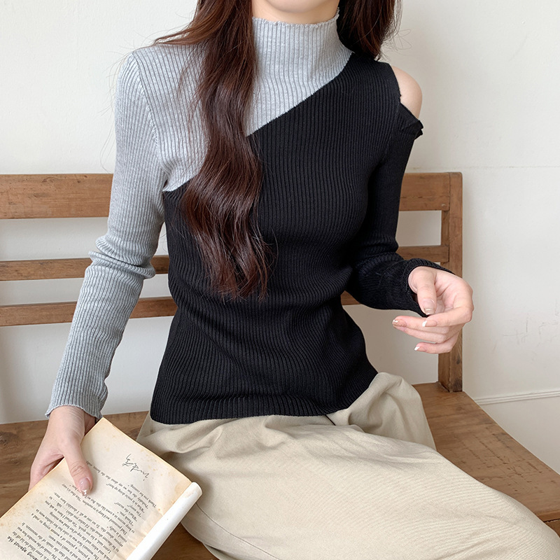 Корейский и японский экспортный облегающий стильный топ с полувысоким воротником для женщин, осень и зима 2025, новый корейский модный свободный вязаный свитер для женщин