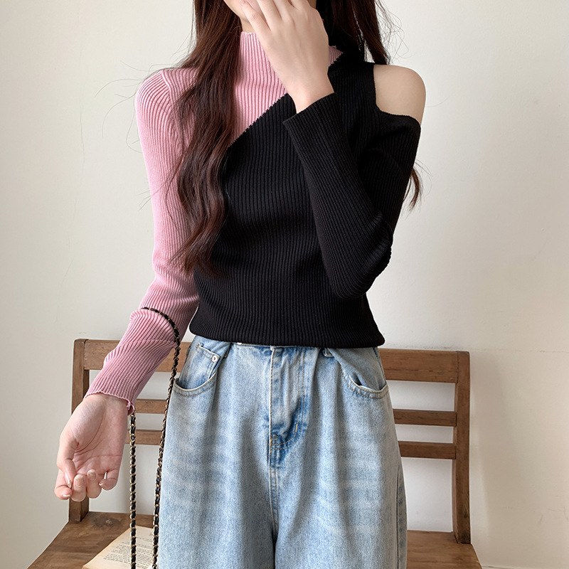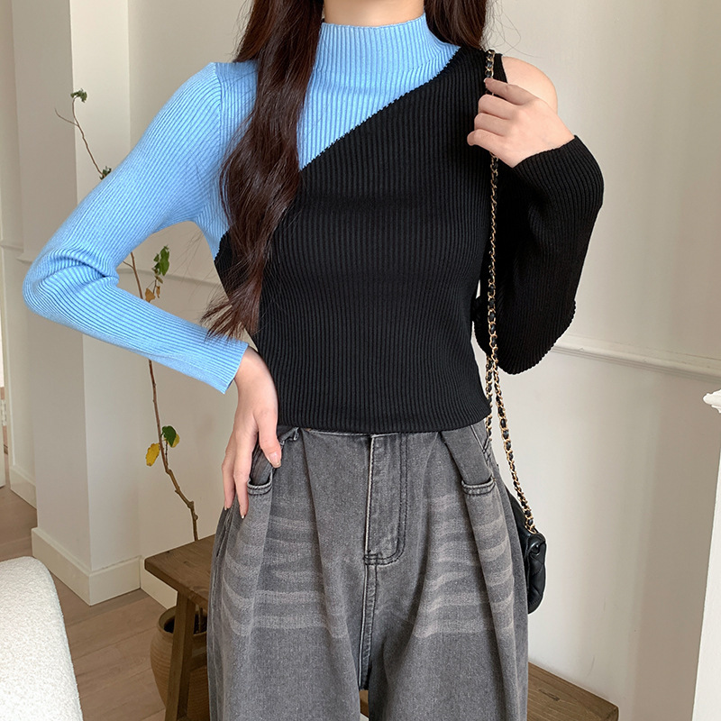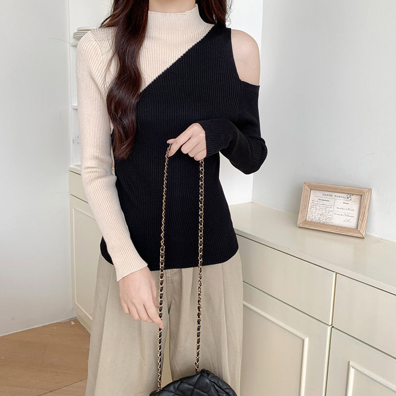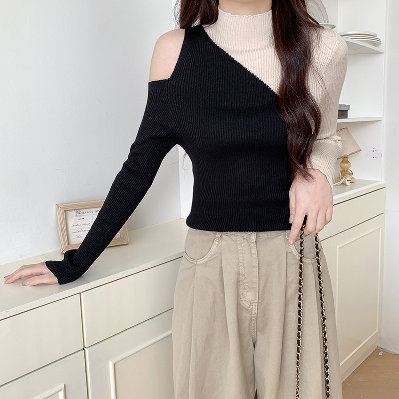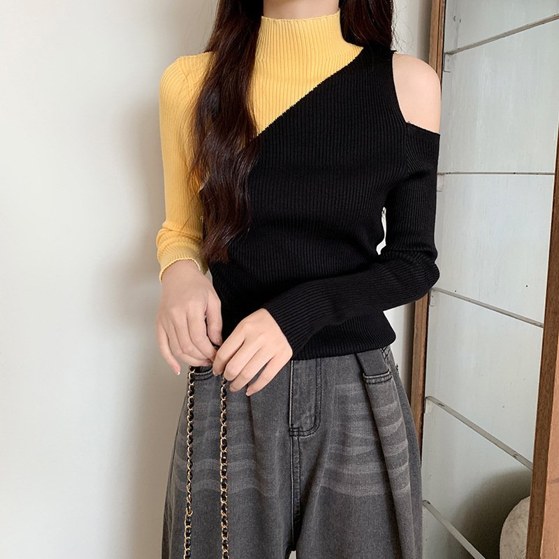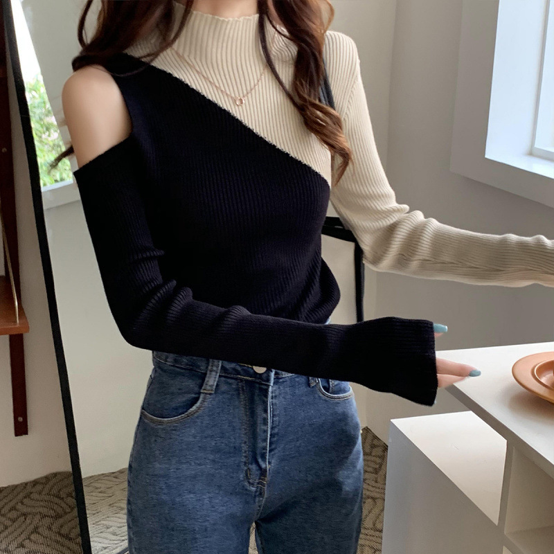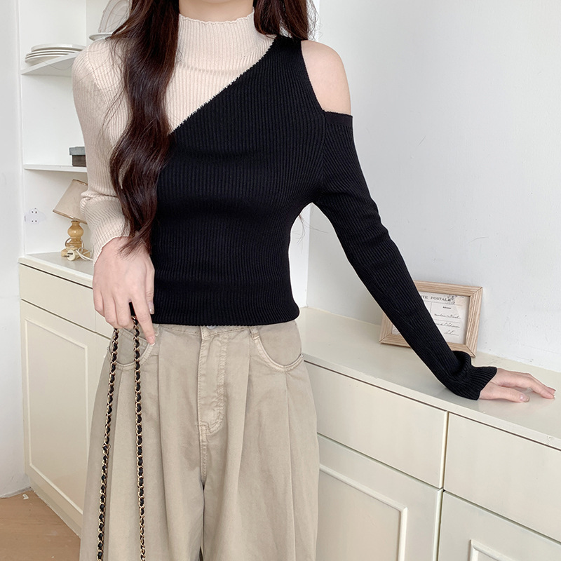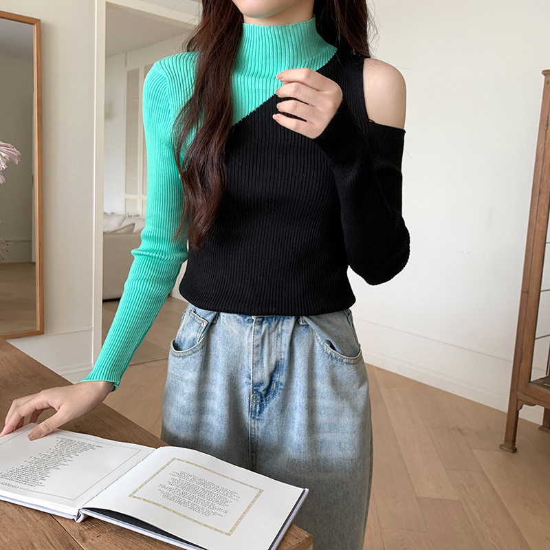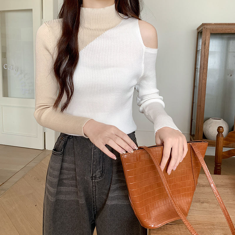Корейский и японский экспортный облегающий стильный топ с полувысоким воротником для женщин, осень и зима 2025, новый корейский модный свободный вязаный свитер для женщин