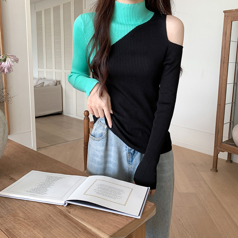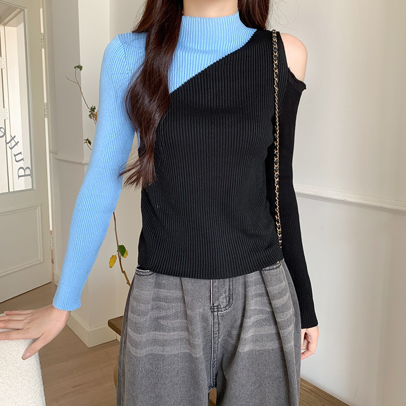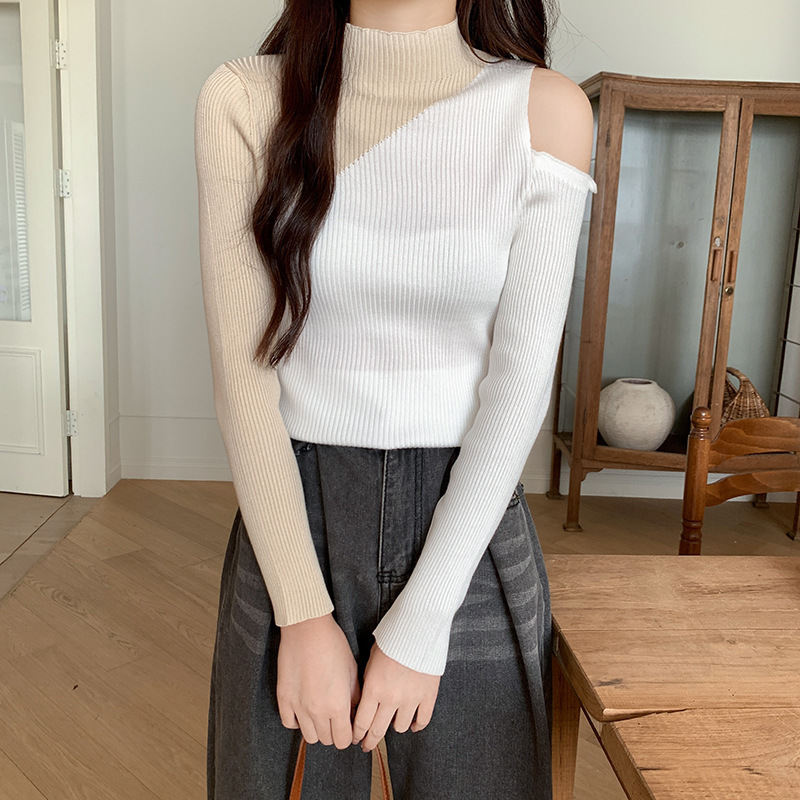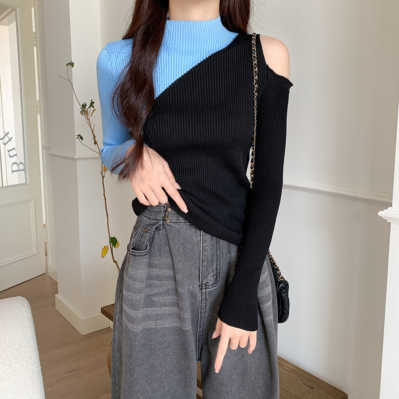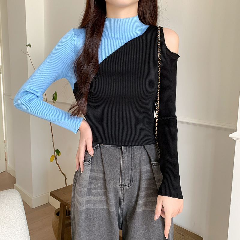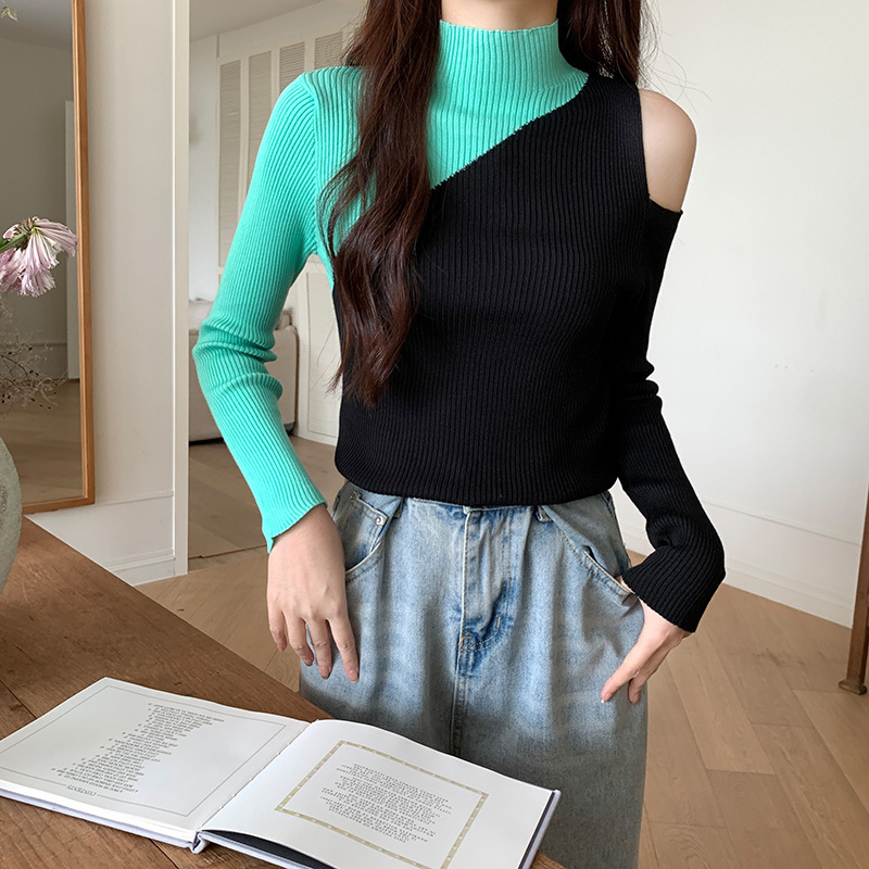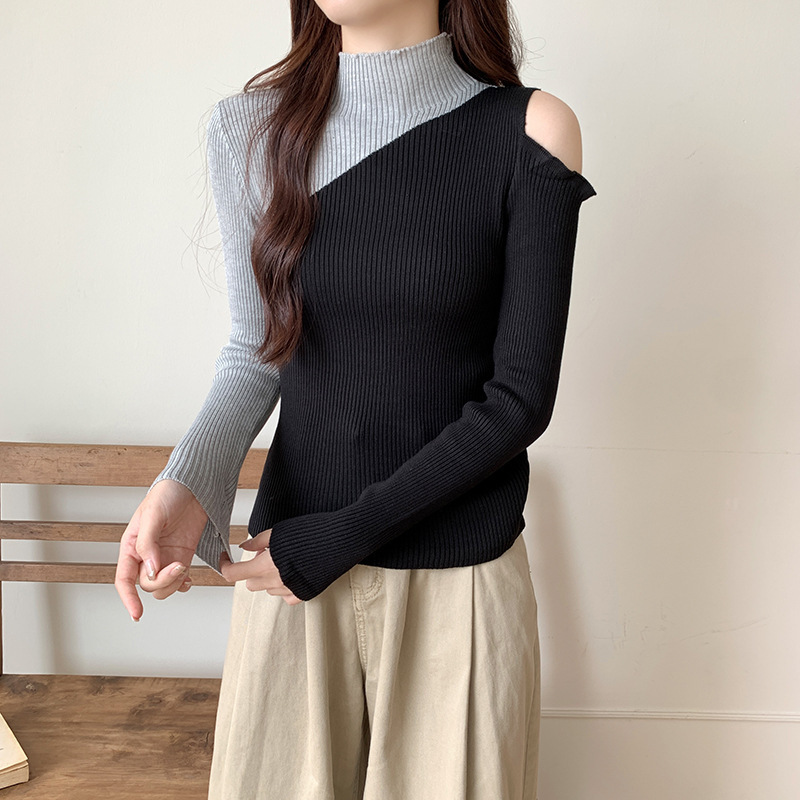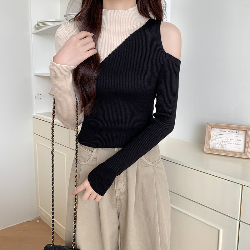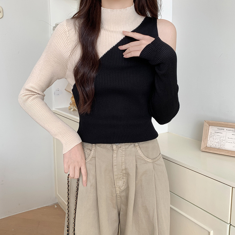 Корейский и японский экспортный облегающий стильный топ с полувысоким воротником для женщин, осень и зима 2025, новый корейский модный свободный вязаный свитер для женщин
