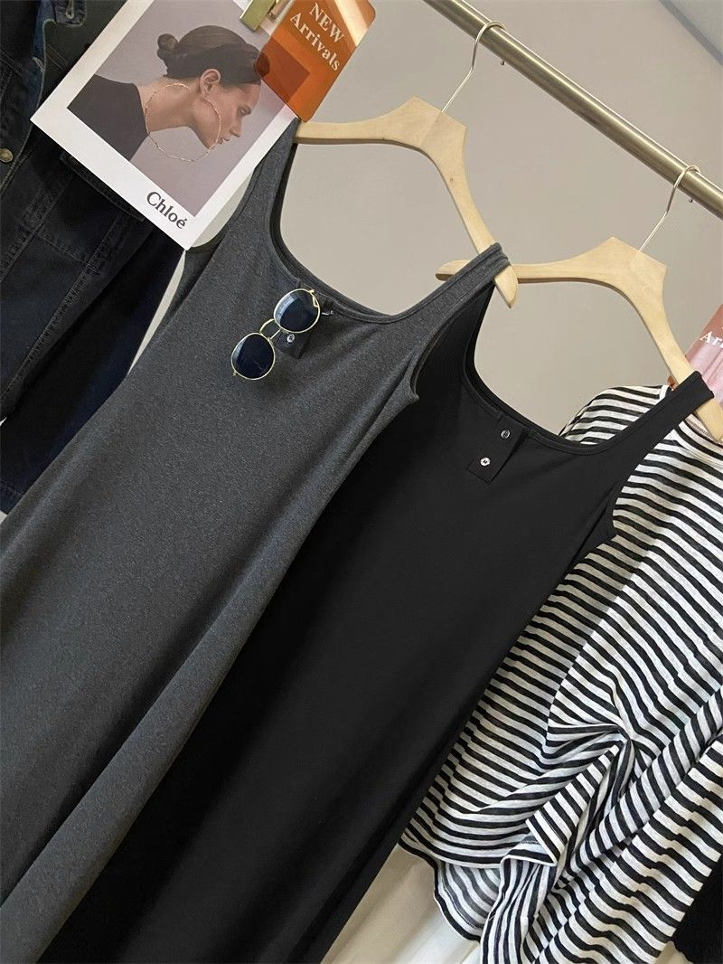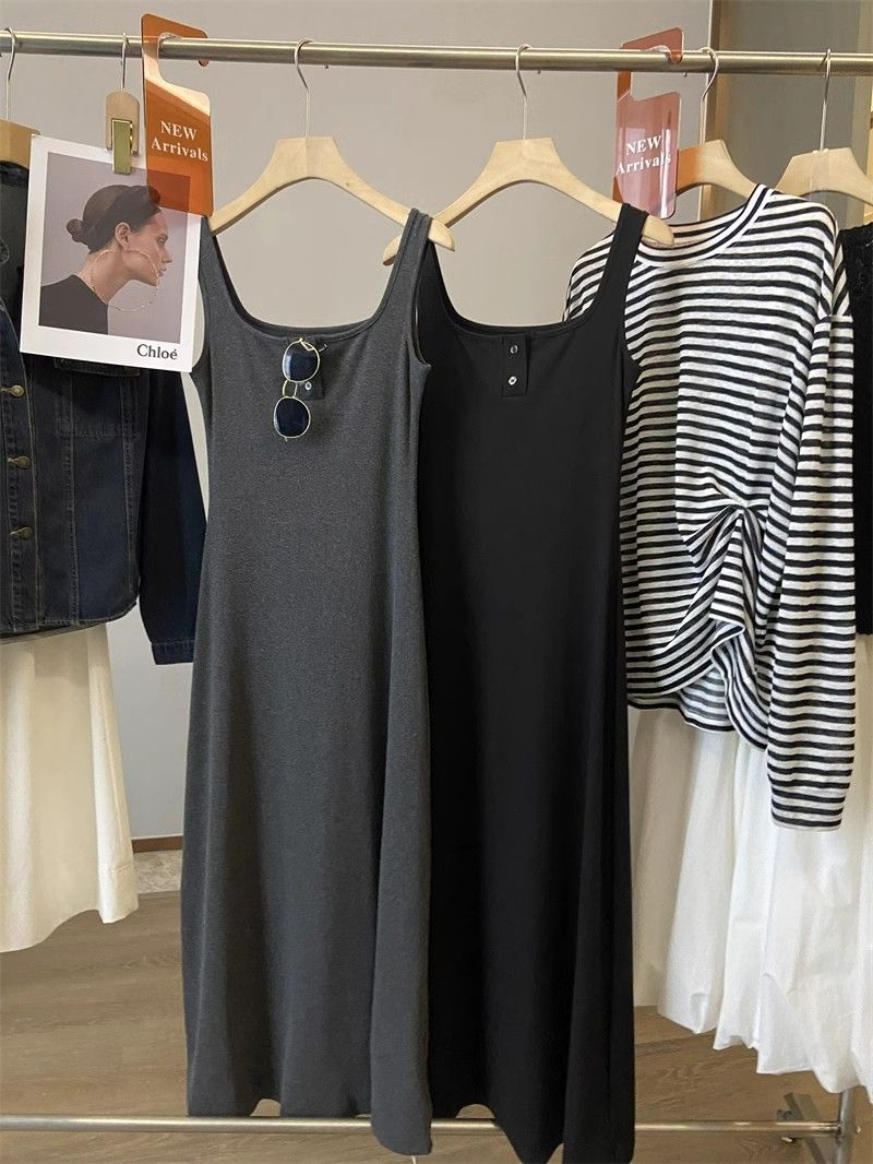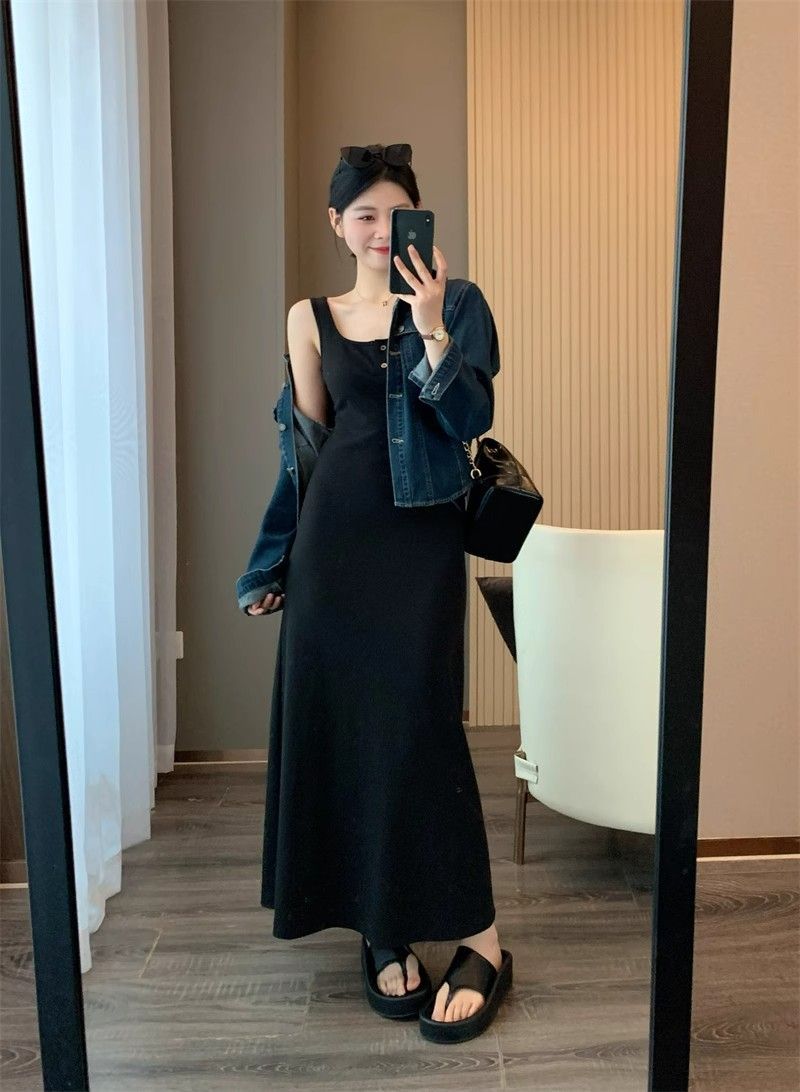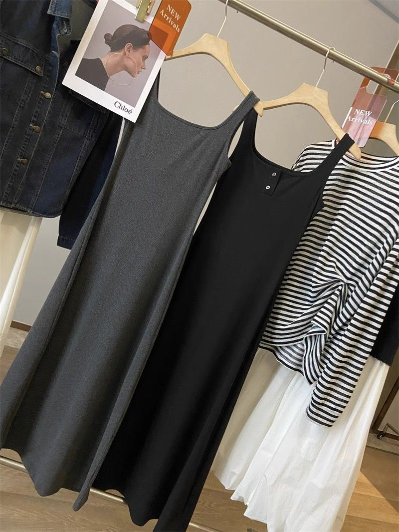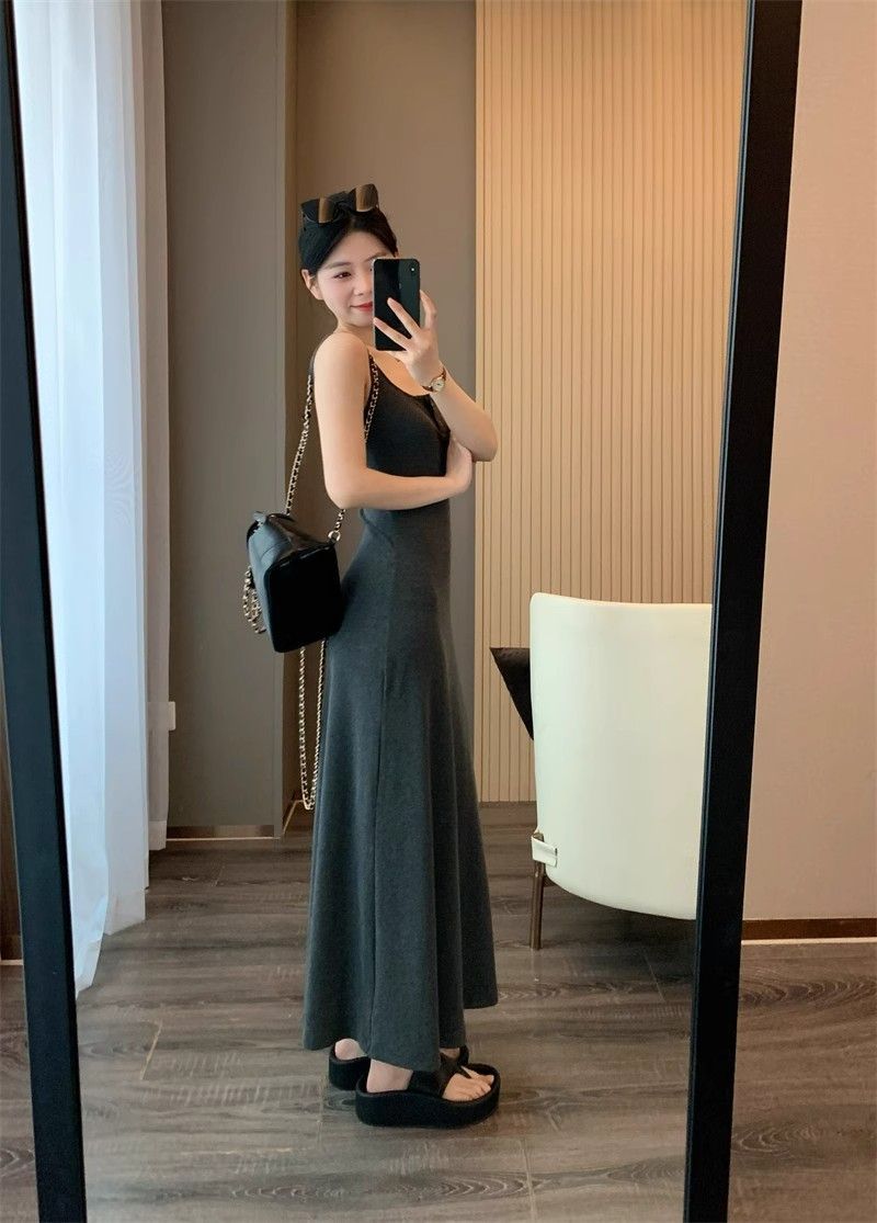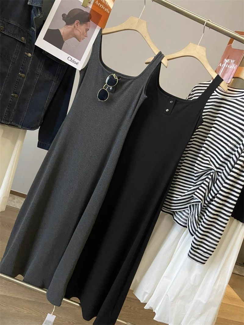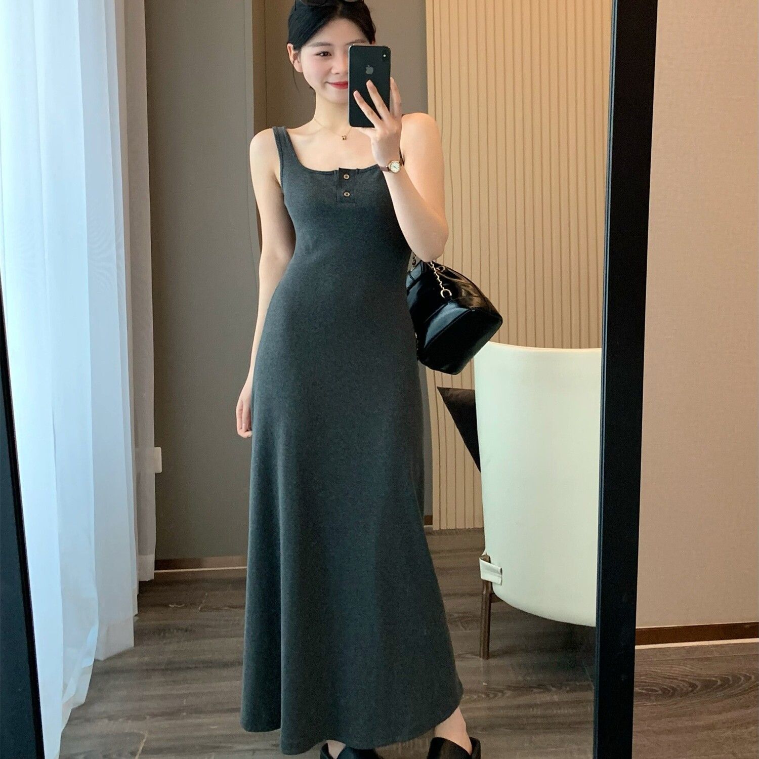 Женское платье-камзол с квадратным вырезом, длинная юбка, летний новый стиль 2025, стройнящее и элегантное
